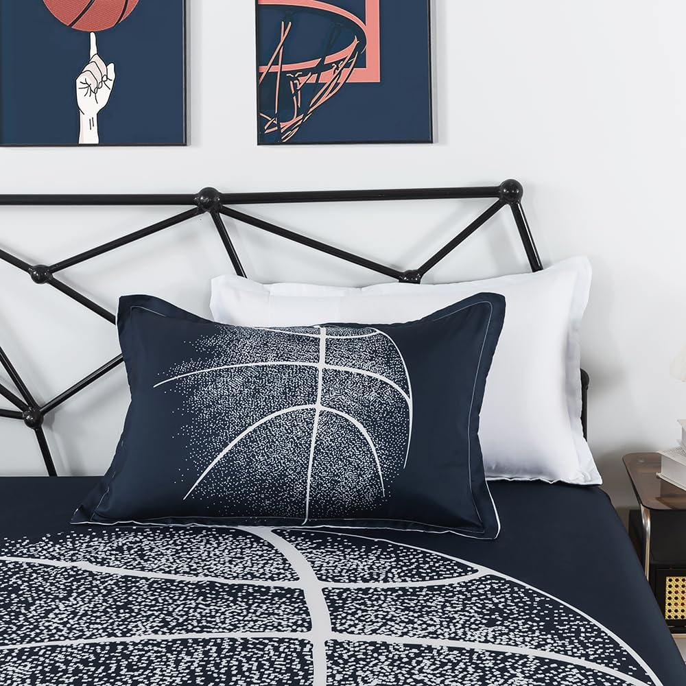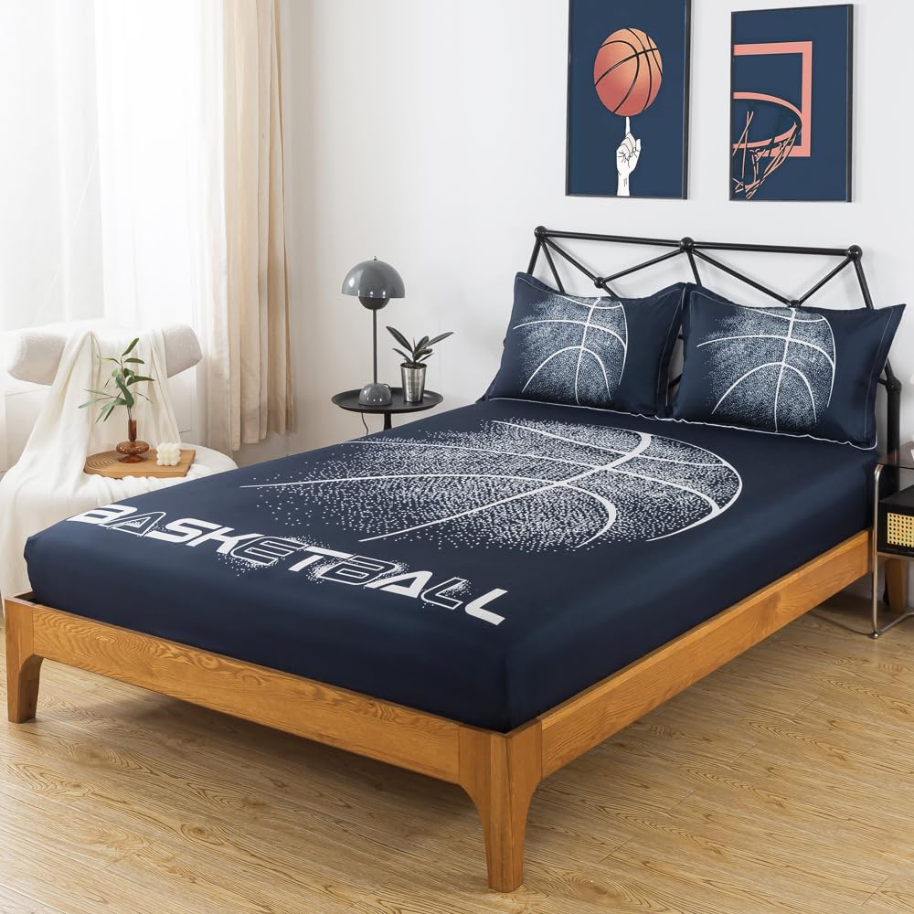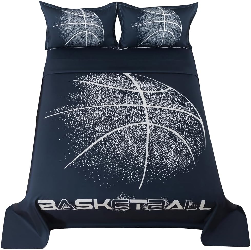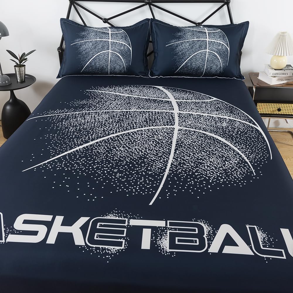 Add a splash of sports excitement to your child's bedroom with this vibrant basketball bedding set. Designed for boys and girls, it combines style, comfort, and functionality to create a fun sleep environment. Featuring a bold 3D basketball design, this set brings the game to life in every detail. The high-definition digital printing ensures crisp, realistic visuals that delight young athletes and fans alike. The queen size flat sheet measures 90\" x 102\" with a deep pocket and elastic all around, making it ideal for mattresses up to 14\" in depth. It pairs perfectly with the 1 fitted sheet (60\" x 80\" + 14\" deep) and two pillowcases (20\" x 30\") for a complete look. Crafted from 100% brushed microfiber, the bedding is ultra-soft and durable, ensuring a cozy, breathable nightâs sleep for your little one. Its easy-care nature makes it a practical choice for busy families who want both style and ease. This is more than just beddingâit's a way to celebrate sports, create a personalized space, and add energy to their room. Perfect for a boy's room, sports-themed decor, or as a holiday gift with a fun twist.ADASMILE A & S Basketball Sheets Queen Size 4 Piece Set
