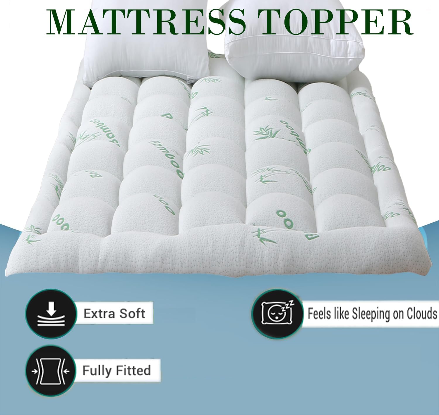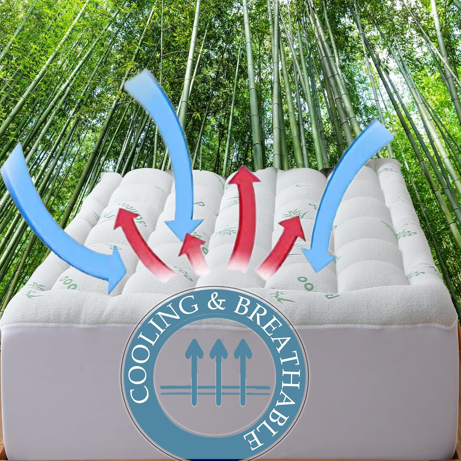 Looking for a cooling mattress pad that doubles as an extra plush mattress cover? This bamboo topper is a stylish and functional addition to any bedroom. Ideal for those who need back pain relief, enjoy a plush feel, or want a mattress topper that adapts to all seasons, it's built for comfort and long-lasting use.