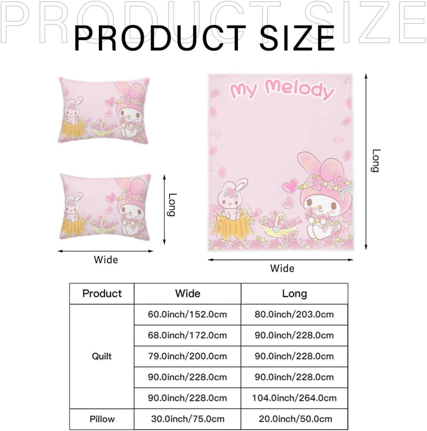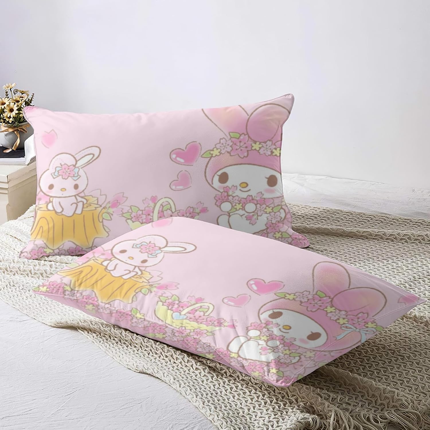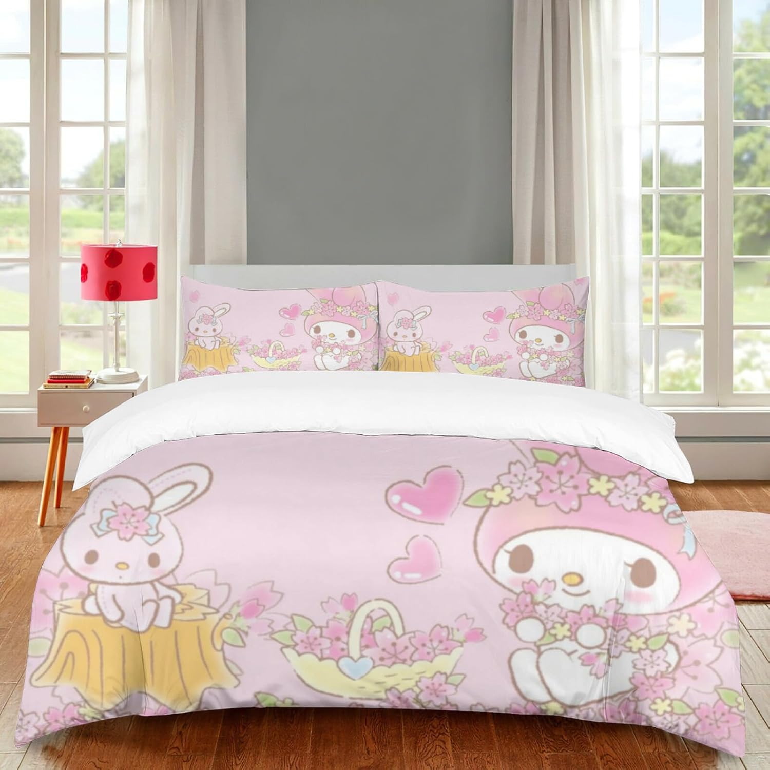 This adorable duvet cover set brings a charming and whimsical touch to your bedroom with its delightful Anime My Bunny Melody design. The 3D printed floral pattern in soft pink hues adds a playful and kawaii vibe that's sure to spark joy and create a cozy atmosphere.