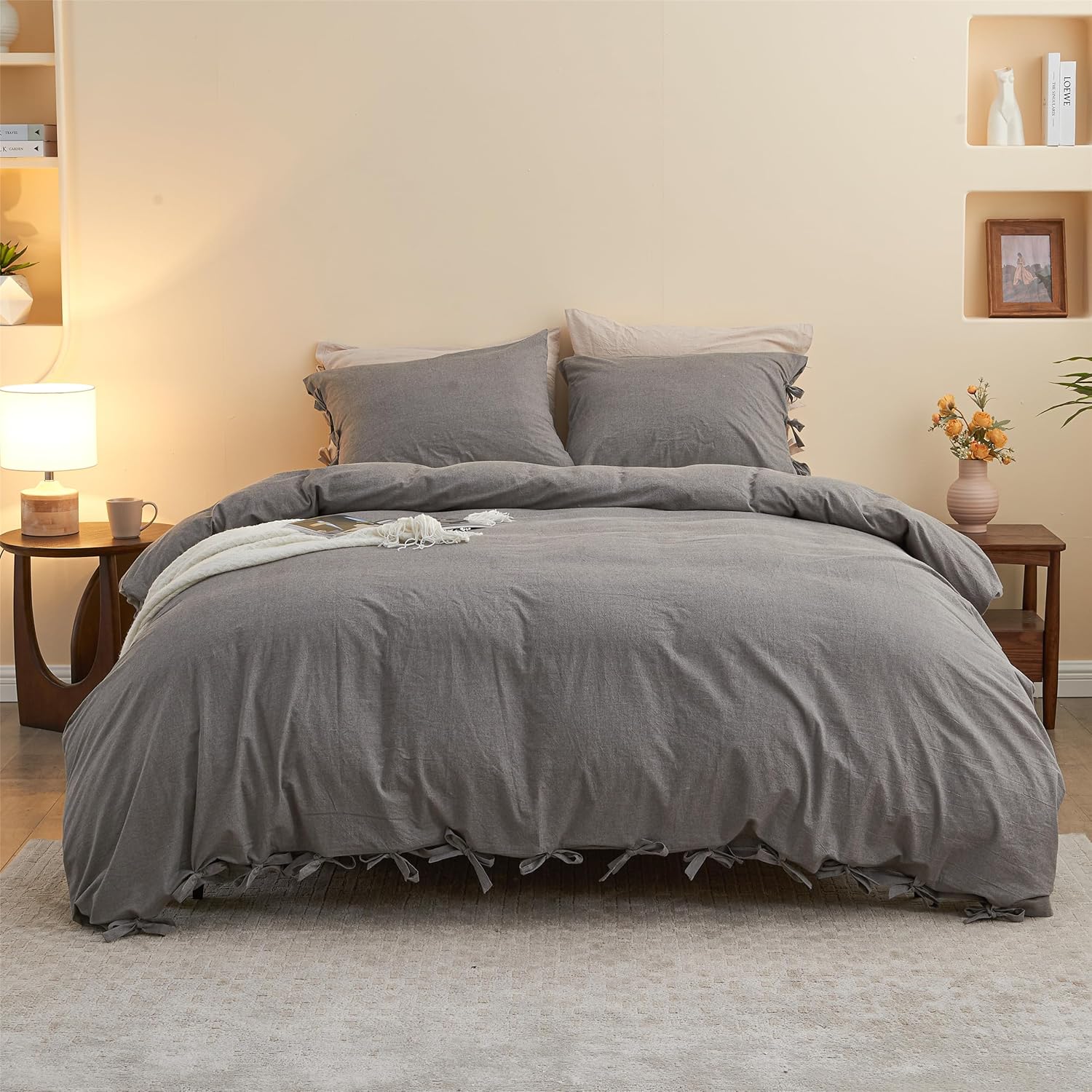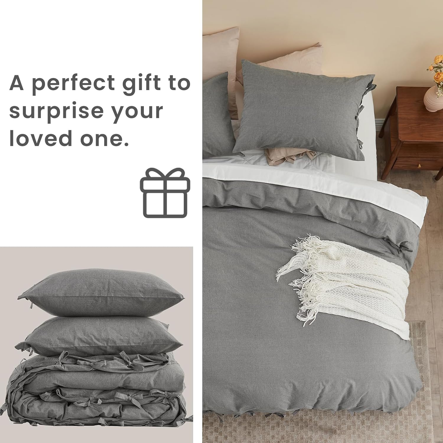 This set is designed for cozy nights and everyday comfort. Whether you're enhancing your bedroom, updating your apartment, or styling a dorm room, the dark grey color is a timeless choice that blends effortlessly into any setting. The bowknot ties not only secure your duvet insert but also give a refined look, eliminating the struggle of fastening buttons. Its softness only improves with each wash, ensuring long-lasting comfort and care.