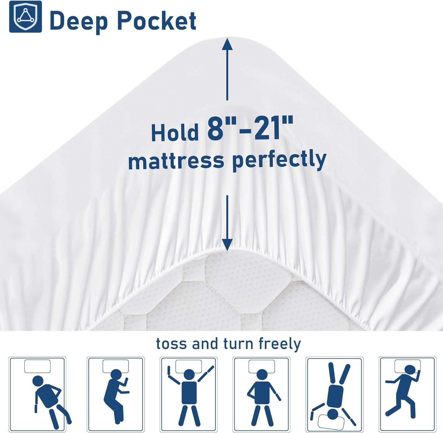 The deep pocket design ensures a secure fit on your mattress, accommodating depths up to 8-21 inches. This prevents shifting or bunching, keeping your sleep surface stable and consistent.