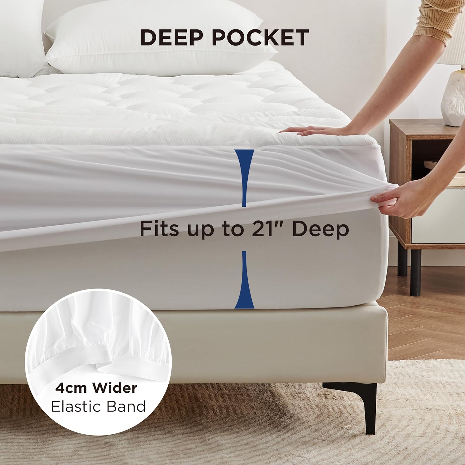 With a deep 21-inch pocket, this protector fits most full-size mattresses perfectly, reducing the risk of shifting or wrinkling. The elastic band around the edges keeps everything in place, delivering a noiseless and stable sleep experience. It's also easy to maintain with simple machine wash and dry instructions, making it a practical and reliable choice for any bedroom.