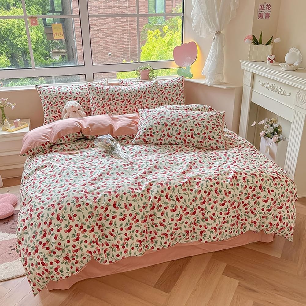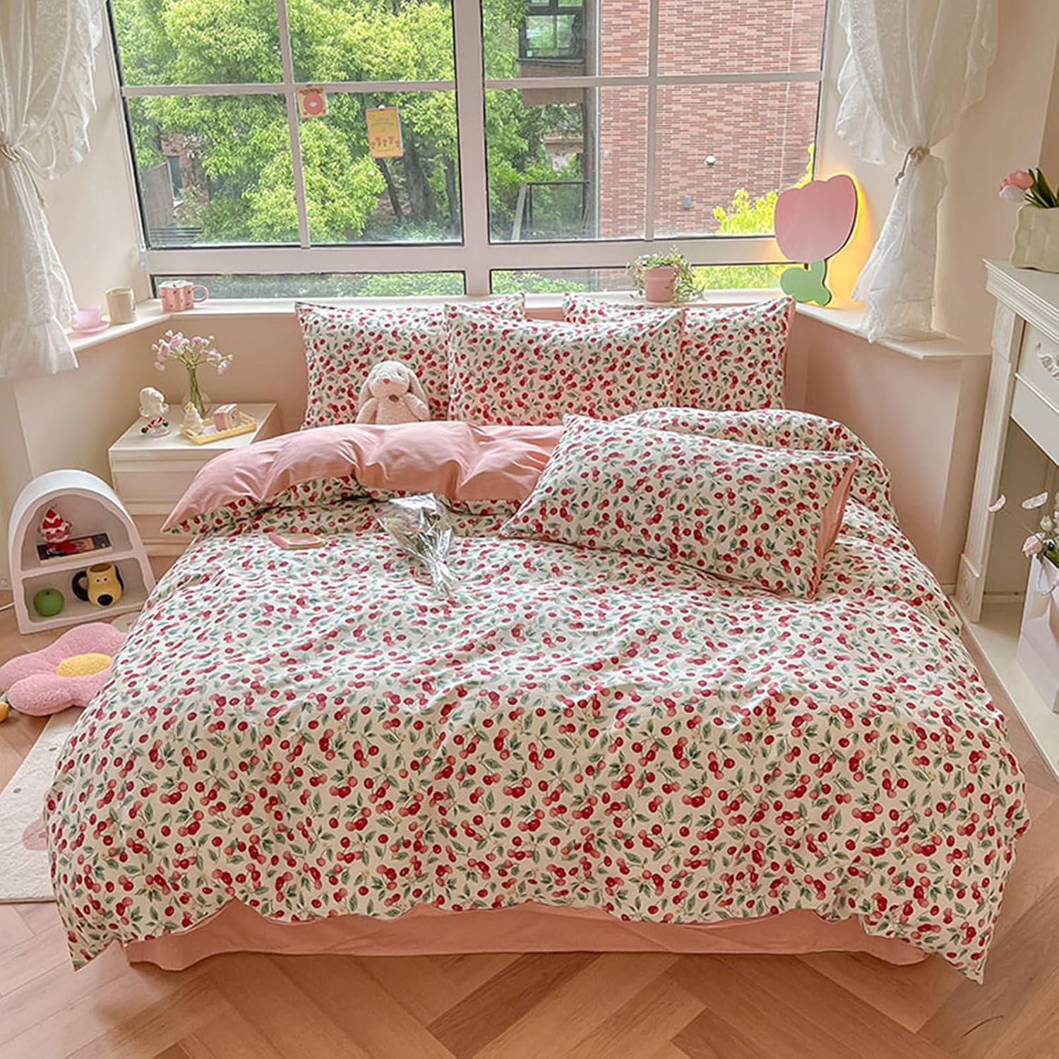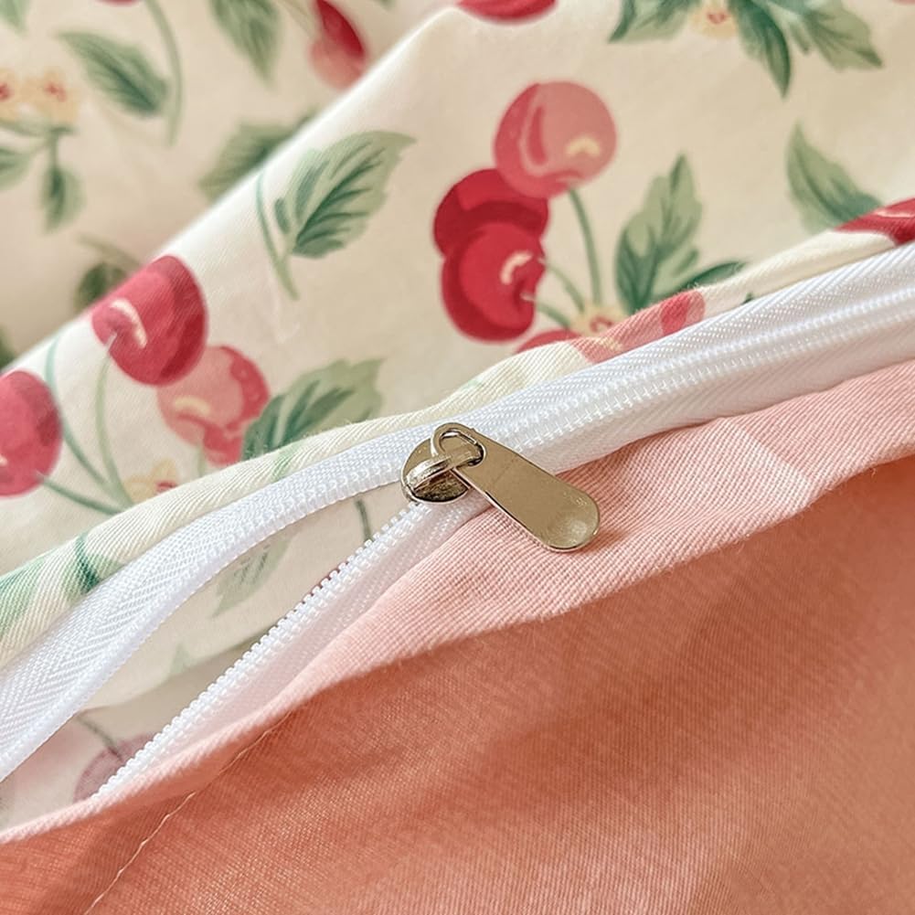 Whether it's for a birthday or holiday, this duvet cover set makes an excellent gift for kids. The bright red and pink cherry design brings a fun and vibrant look, creating an inviting and cozy sleeping space. It's designed with a hidden zipper and corner ties, ensuring your comforter stays in place all night while making it easy to remove and wash when needed.