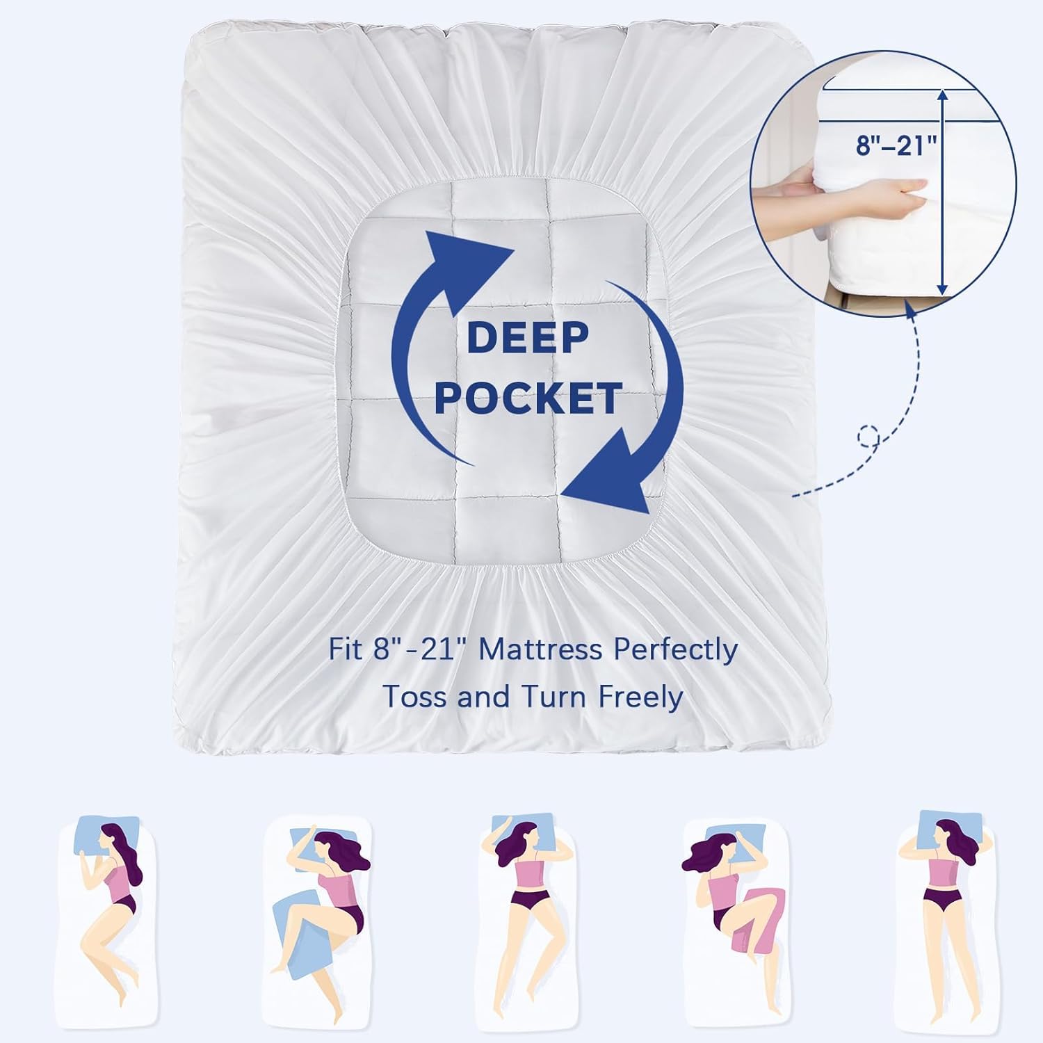 The CYMULA King Mattress Topper is crafted to transform your sleep experience. Its cooling pillow top design helps regulate your body temperature, keeping you comfortable and refreshed through the night. The 18-inch thickness delivers a soft yet supportive cushioning that conforms to your bodyâs natural curves, providing optimal pressure relief.