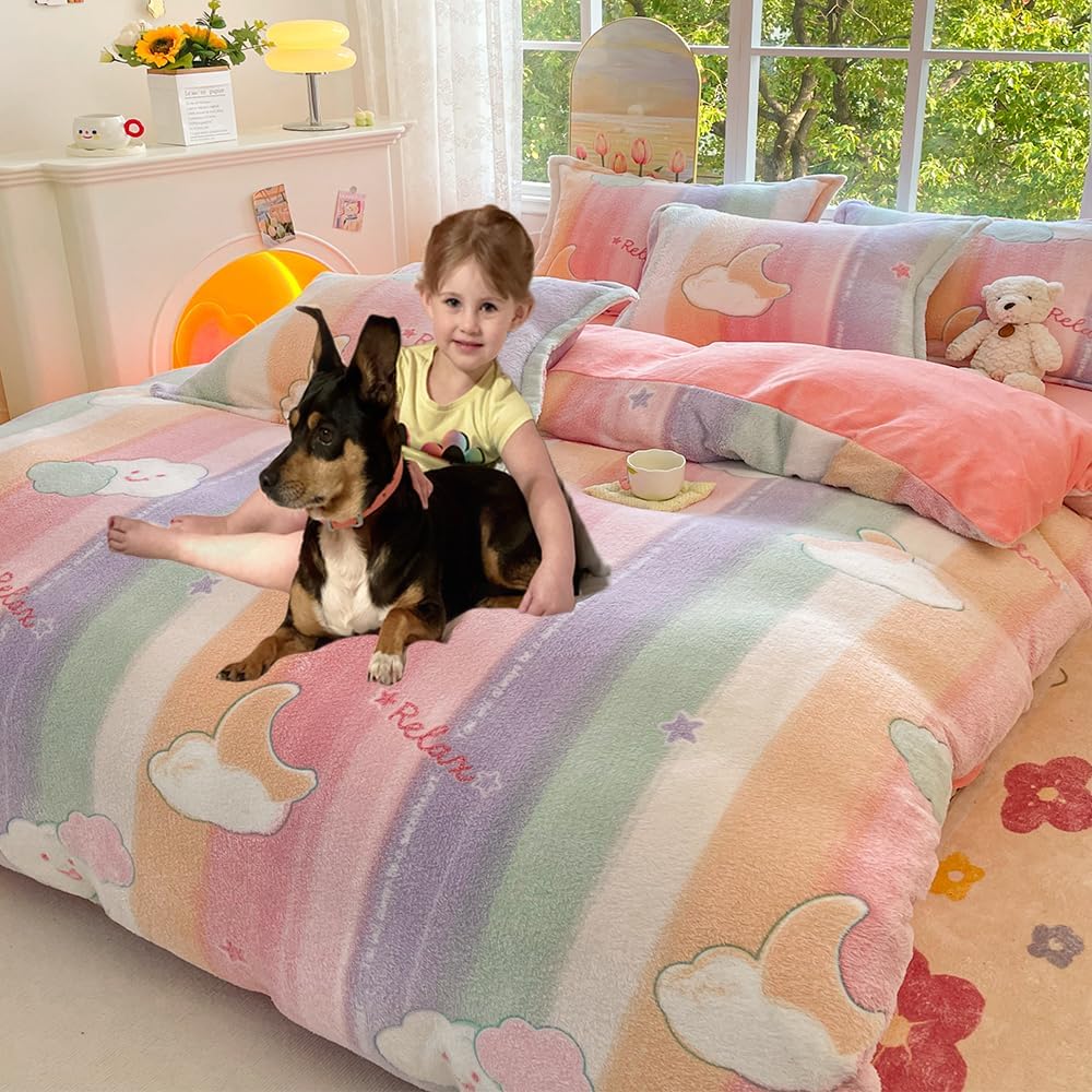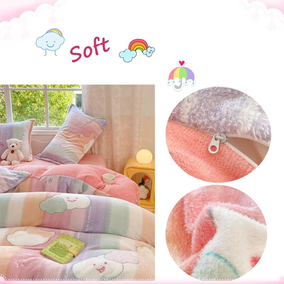 This CinYana Rainbow Duvet Cover Set is a wonderful addition to any bedroom, blending comfort with style. The 2-piece set includes a twin-sized duvet cover and matching pillow cases, creating a cohesive and inviting sleep environment. Designed with ultra-soft microfiber fabric and a 200 GSM faux fur lining, it offers a warm, breathable feel that's perfect for all seasons.
