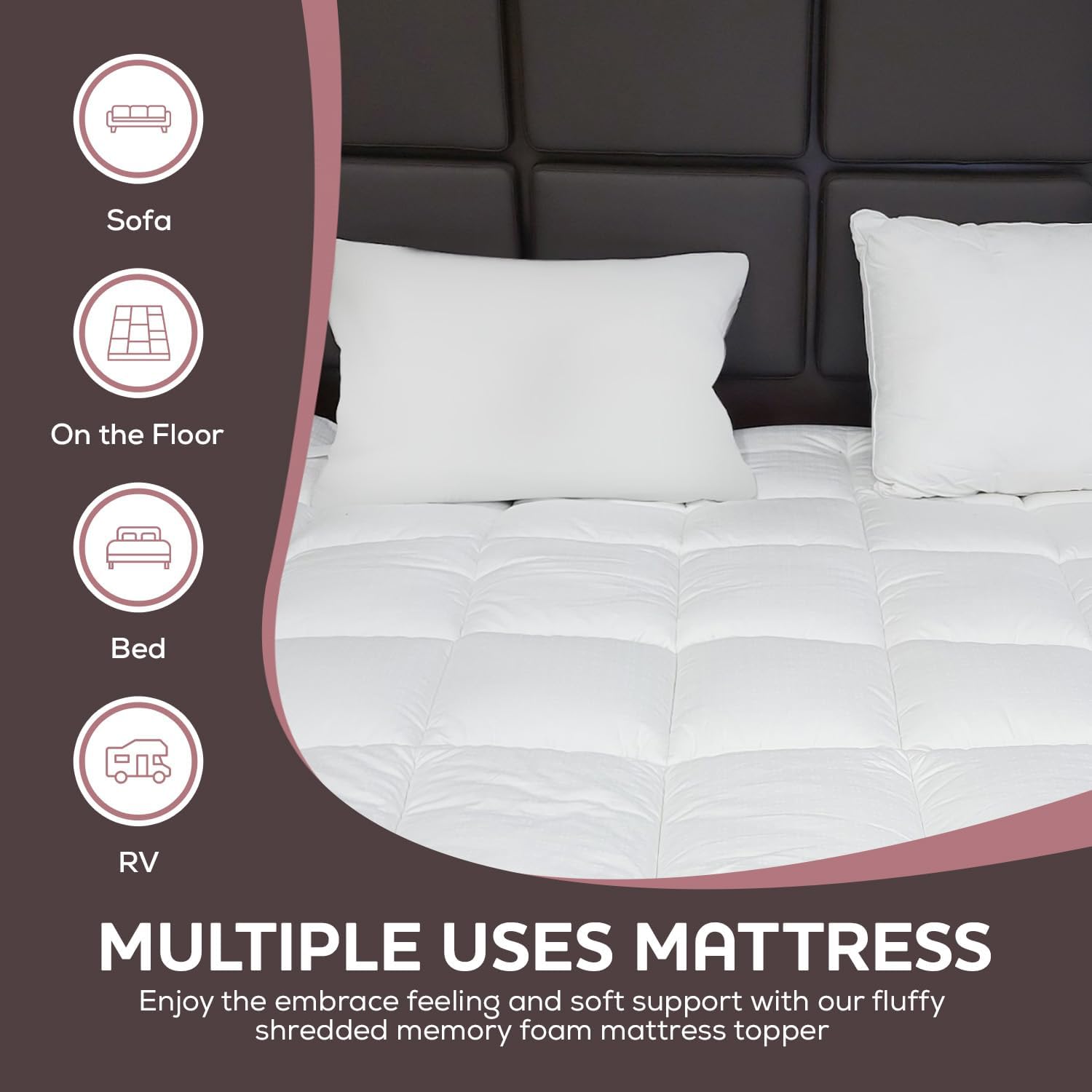 Whether you're using it on your futon, bed, or sofa, the CircleHome White Mattress Topper adapts to your needs and enhances your comfort effortlessly. Its stylish design and practical features make it a great addition to any living space or travel gear.
