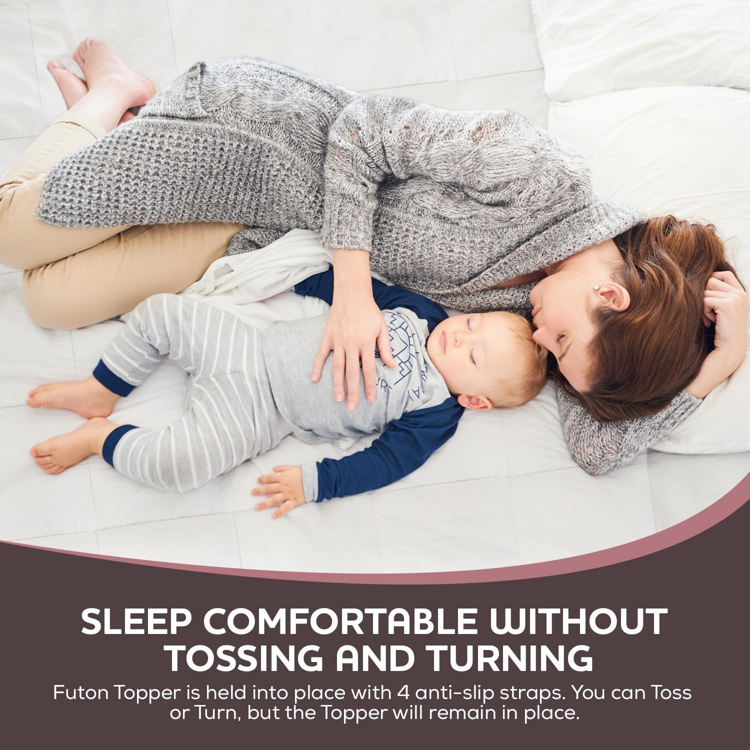 Elevate your comfort without spending a fortune. This high-quality topper is designed to enhance the feel of your futon, bed, or sofa with a combination of soft 100% cotton and plush down alternative filling.