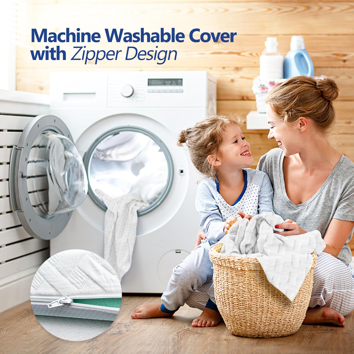 The breathable bamboo cover is not only OEKO-TEX certified for safety and hypoallergenic properties but also offers a soft and smooth feel. Its removable and washable design makes it easy to maintain hygiene, ensuring a clean and fresh sleep surface every time. The dual anti-slip design ensures the topper stays secure, offering long-lasting durability and preventing any shifting, which can disrupt your sleep.