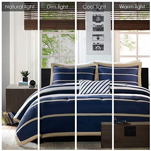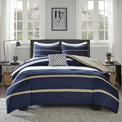 The vibrant blue and white design features sporty navy and khaki accents, making it a fresh addition to any modern bedroom. Its lightweight yet durable construction ensures it stays comfortable whether it's a hot summer night or a cool winter evening.