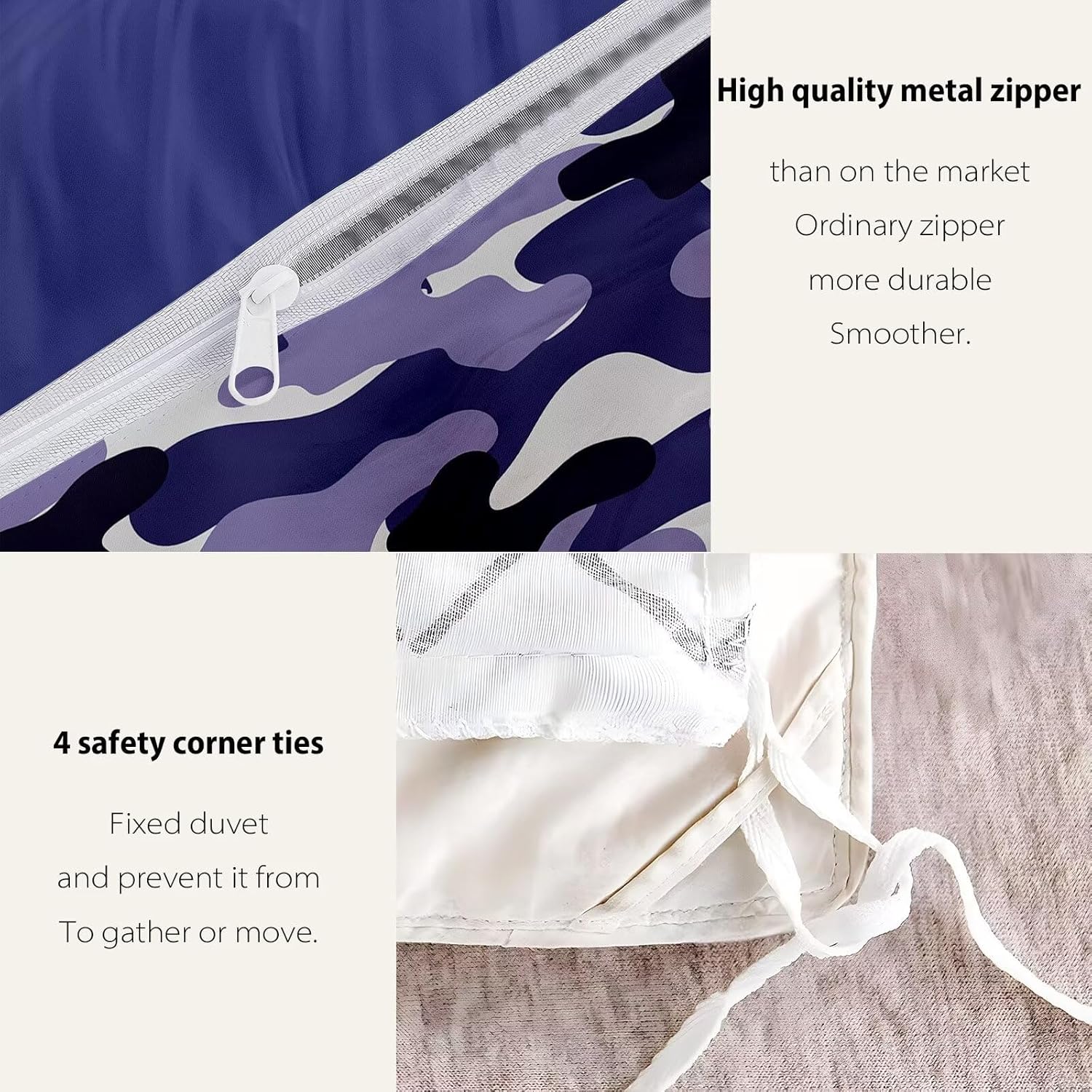 From children to adults, the EXXBYELI Full Camo Duvet Cover Set is a great addition to any bedroom. The firm yet flexible fabric ensures a perfect fit for your bed, while the easy-care design makes it a hassle-free option for busy lifestyles. Add this set to your collection and enjoy a fresh, modern, and comfortable sleeping environment thatâs both stylish and durable.