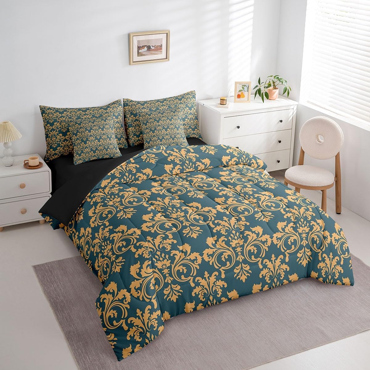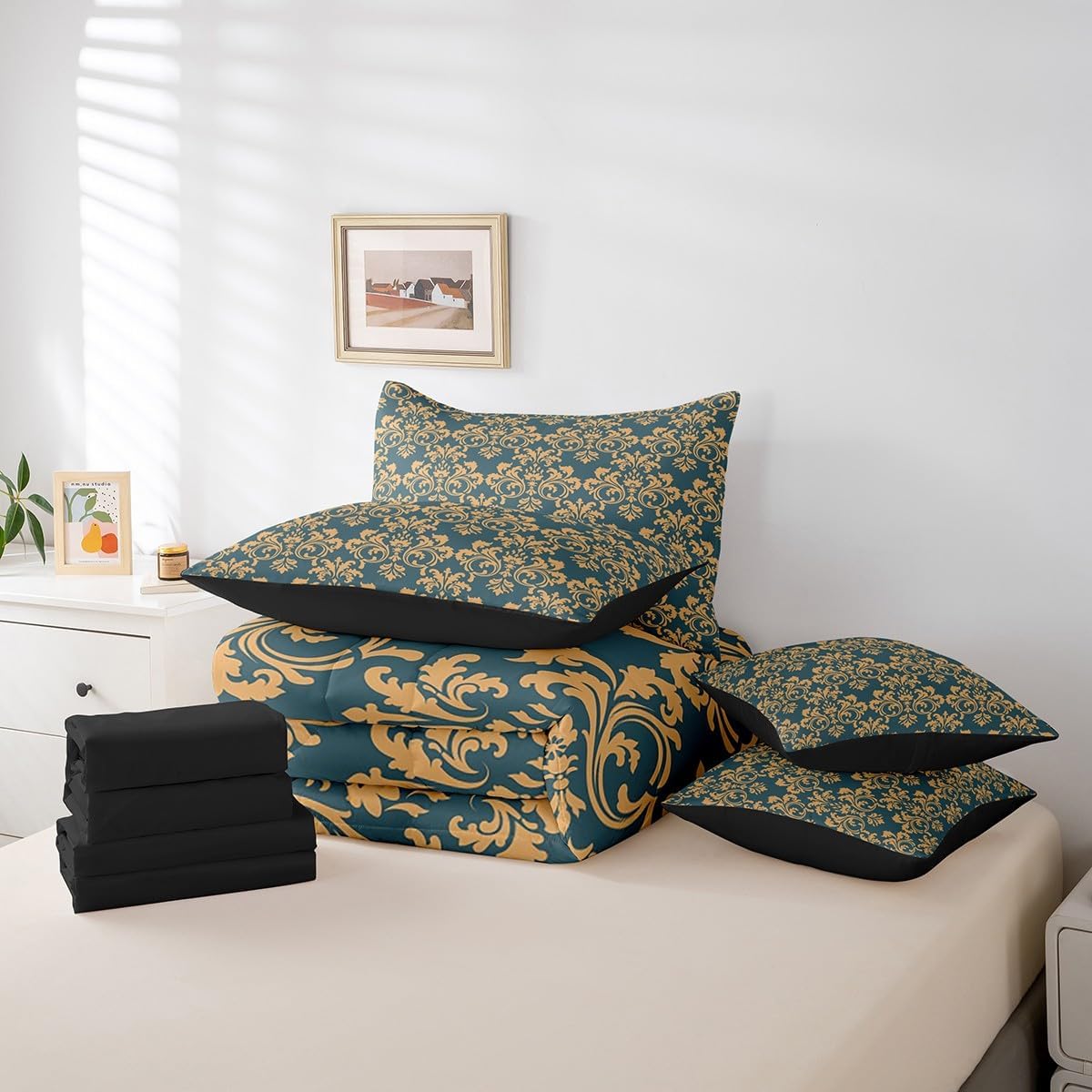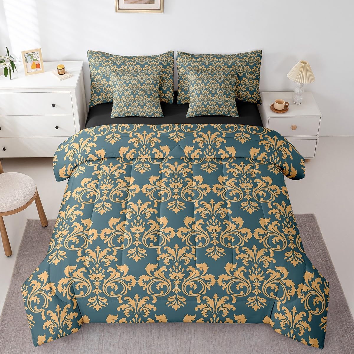 Transform your child's bedroom into a haven of elegance with this luxurious 7-piece damask bedding set. Designed in a vibrant golden teal color, it brings a touch of sophistication and style to any room. The plush microfiber fabric is not only ultra-soft but also highly durable, ensuring comfort through all seasons and easy maintenance with minimal effort.