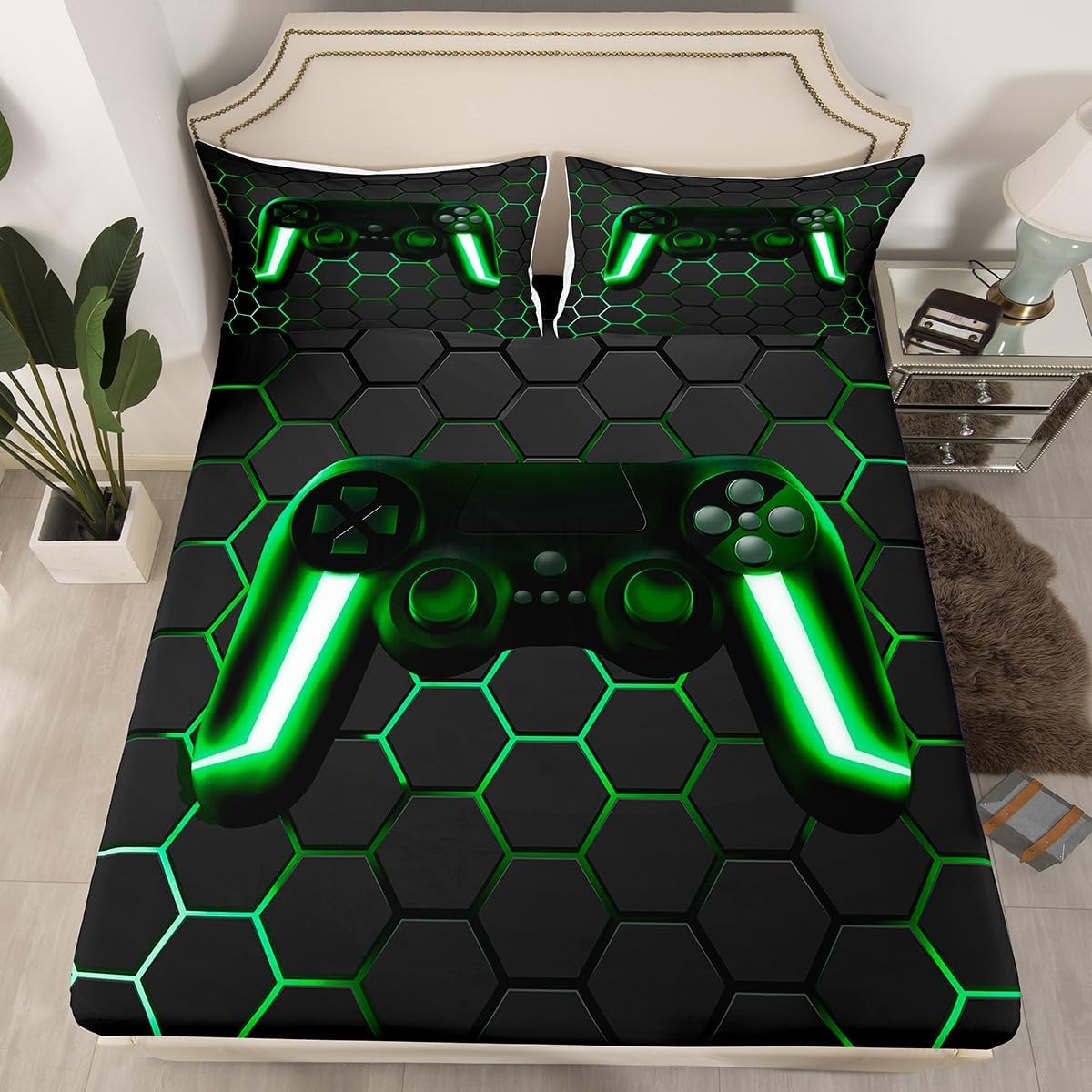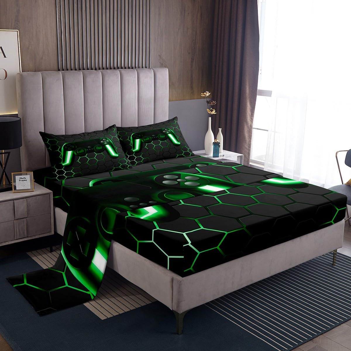 Perfect for bedrooms of teenagers, gamers, or even young boys, these game bed sheets are built to last with non-fading colors that stay vibrant over time. The flat sheet features a striking geometric pattern, making it an essential addition for those who love modern and trendy designs. Each set includes a matching pillowcase, offering a complete and cohesive look for your bedding needs.