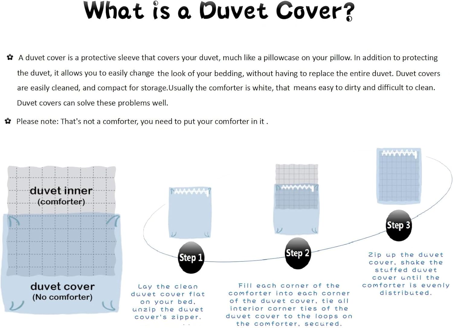 Made from ultra-soft polyester microfiber, this bedding solution is gentle on sensitive skin and adaptable to all four seasons. The hidden zipper and corner ties ensure a snug, seamless fit, while the durable fabric guarantees long-lasting comfort and style. It's not only easy to care for but also built to withstand regular use and washing.