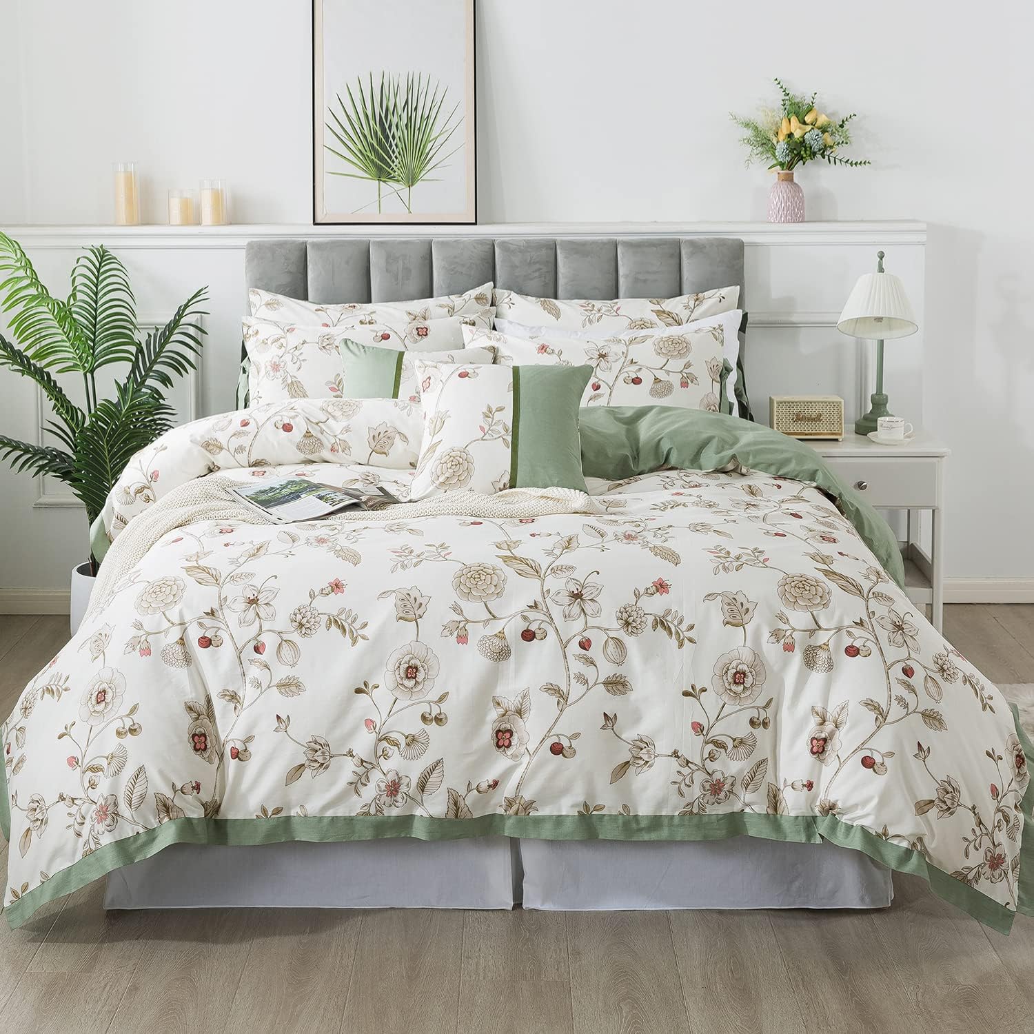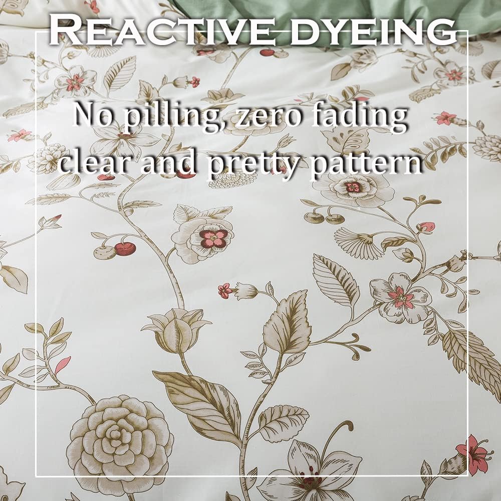 Elevate your bedroom with this elegant and refined duvet cover set. Crafted from 100% percale cotton, it offers a smooth, soft, and breathable feel that's ideal for a comfortable nightâs sleep. The vintage floral print, featuring a beautiful blend of pink and beige green tones, brings a touch of timeless charm and sophistication to your space. The reversible design allows you to effortlessly switch up the style, making it a versatile addition to any shabby chic or farmhouse decor.