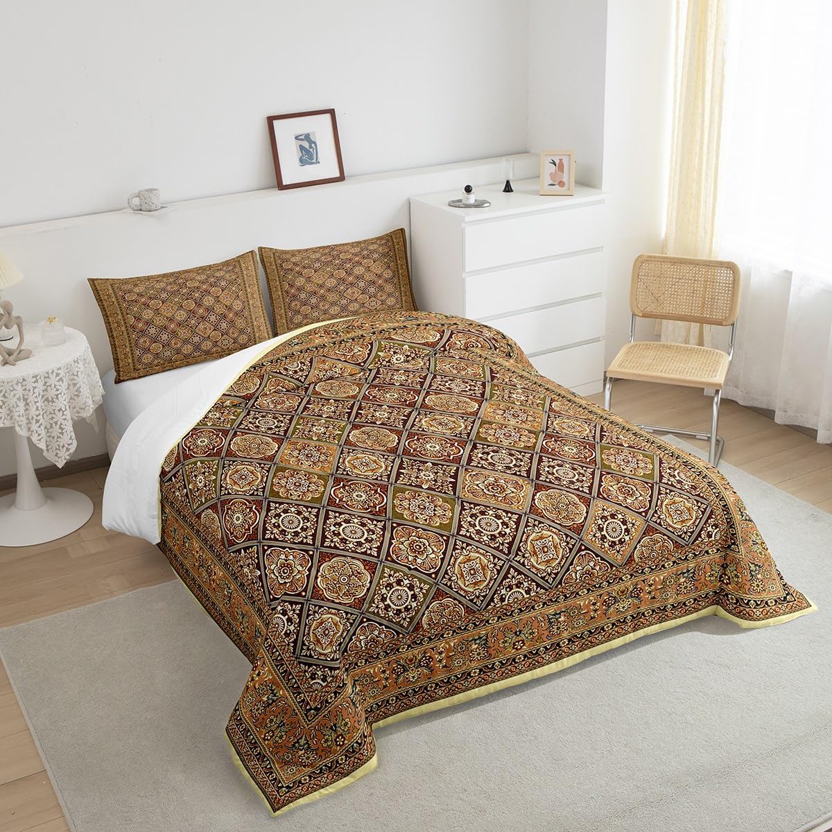 Adorned with a vibrant damask floral pattern, this comforter set adds a touch of sophistication and creativity to any living space. Whether it's a nursery, a bedroom, or a dorm, the Feelyou set brings a unique Baroque-inspired aesthetic that's both eye-catching and timeless.