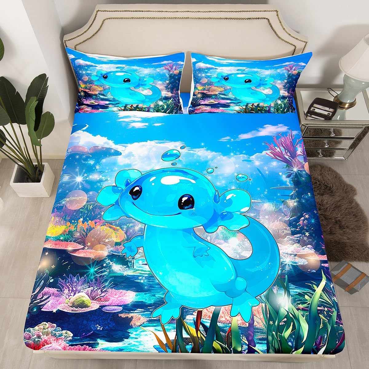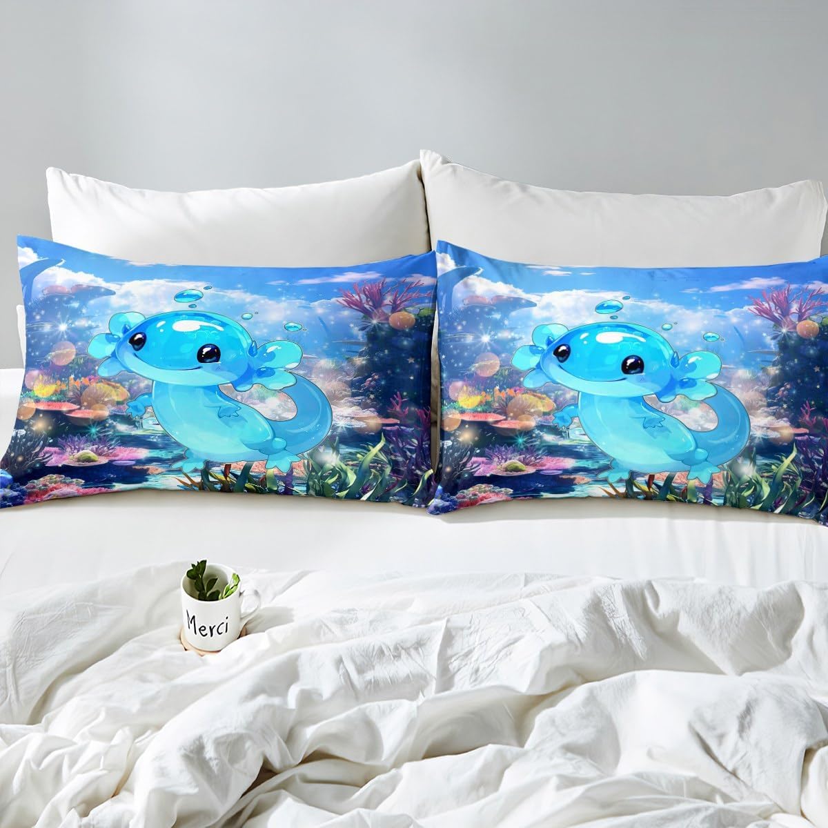 Transform your child's bedroom into a magical underwater world with this adorable Feelyou bedding set. Featuring a vibrant kawaii-style ocean sealife design, it brings a touch of fantasy and playfulness to any room. Perfect for kids who love the sea and whimsical creatures, this set is a fun and creative way to express their personality.