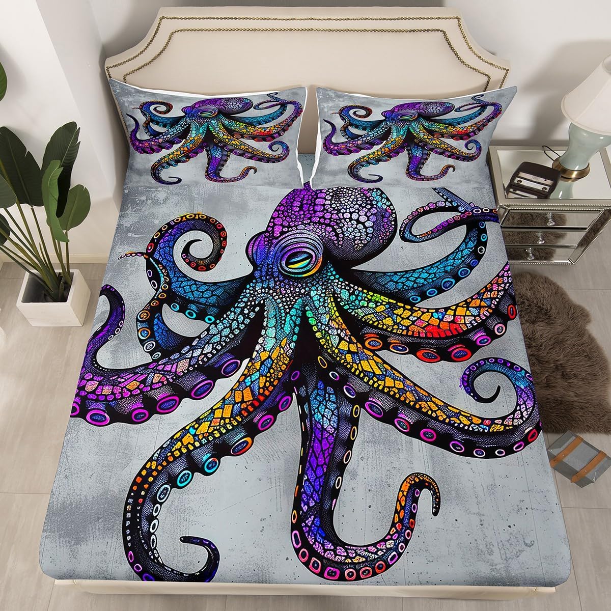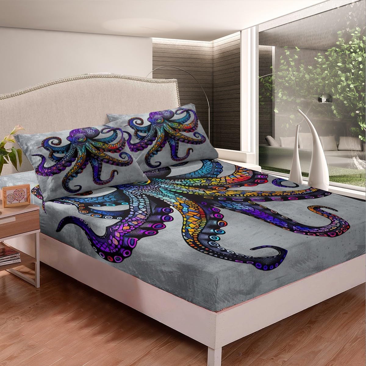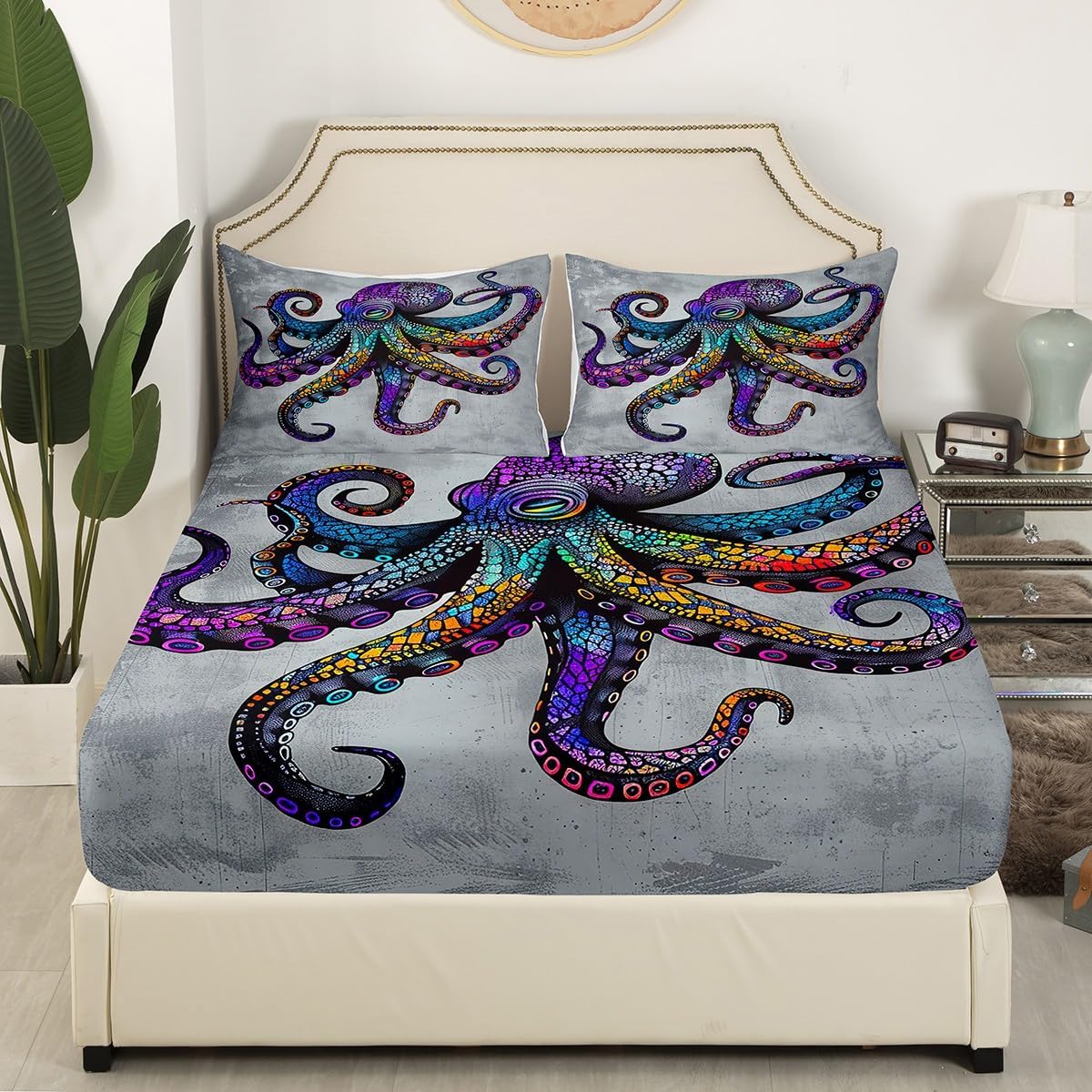 Designed to complement twin, full, and queen-sized beds, the Feelyou Octopus Bed Sheet Set is versatile and easy to maintain. Its machine-washable fabric dries quickly and retains its vibrant colors, making it an excellent option for those who want a fashionable and functional bedding solution. Add personality and creativity to your bedroom with this ocean-themed set that blends comfort and design seamlessly.