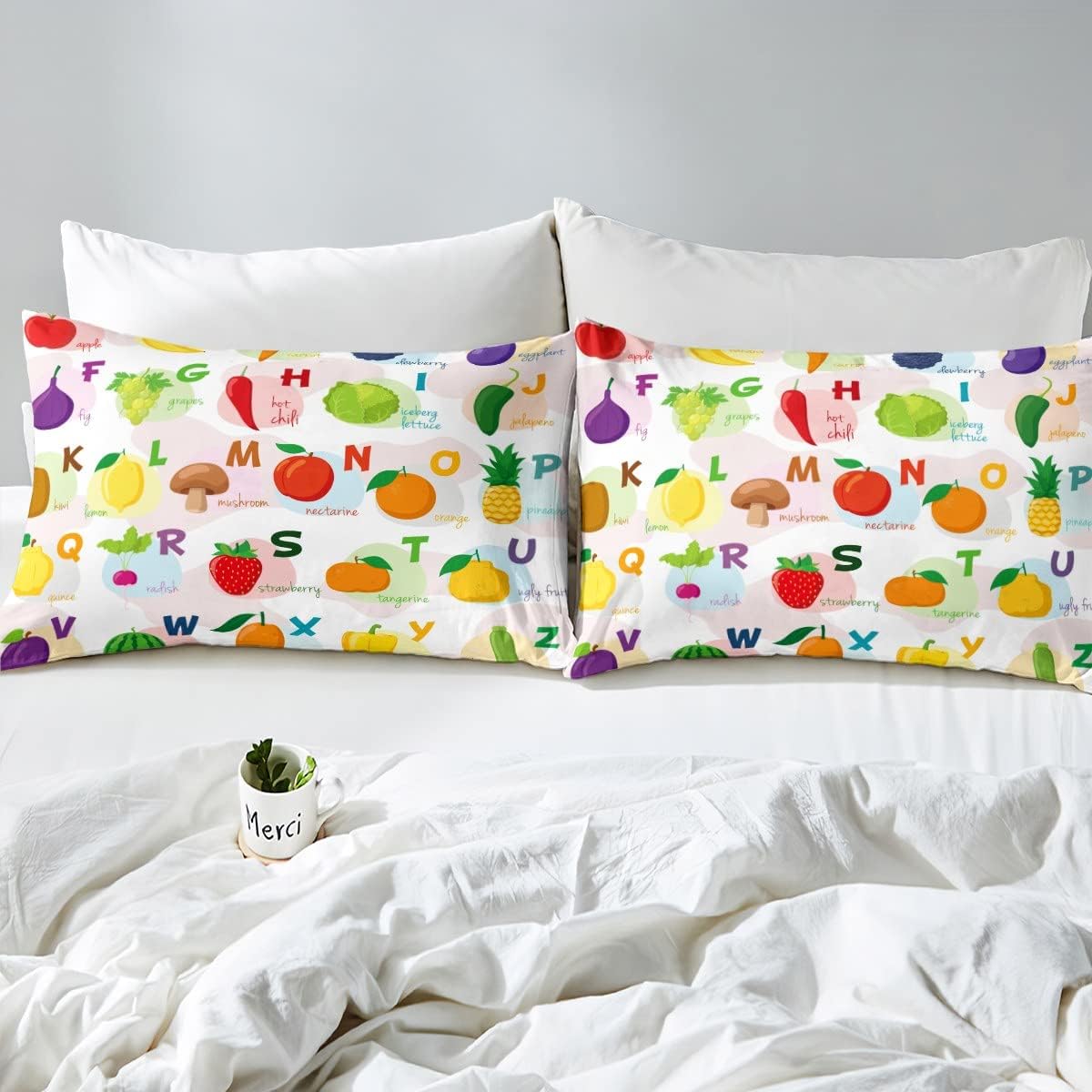 Add a bright and playful atmosphere to your child's room with this stylish and functional toddler ABC sheet set. Featuring a 3D printed alphabet design, it combines fun with learning, making it an ideal choice for young kids and even adults who appreciate the kawaii aesthetic. The deep pocket and elastic all around ensure a snug fit on the bed, keeping your little one comfortable throughout the night.