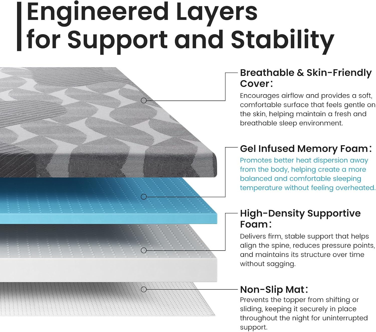 Whether you're preparing for a long night of rest or simply want to enhance your existing sleep setup, this topper stands out for its durability, safety, and performance. It's a smart investment for those who value both comfort and support in their sleep environment.