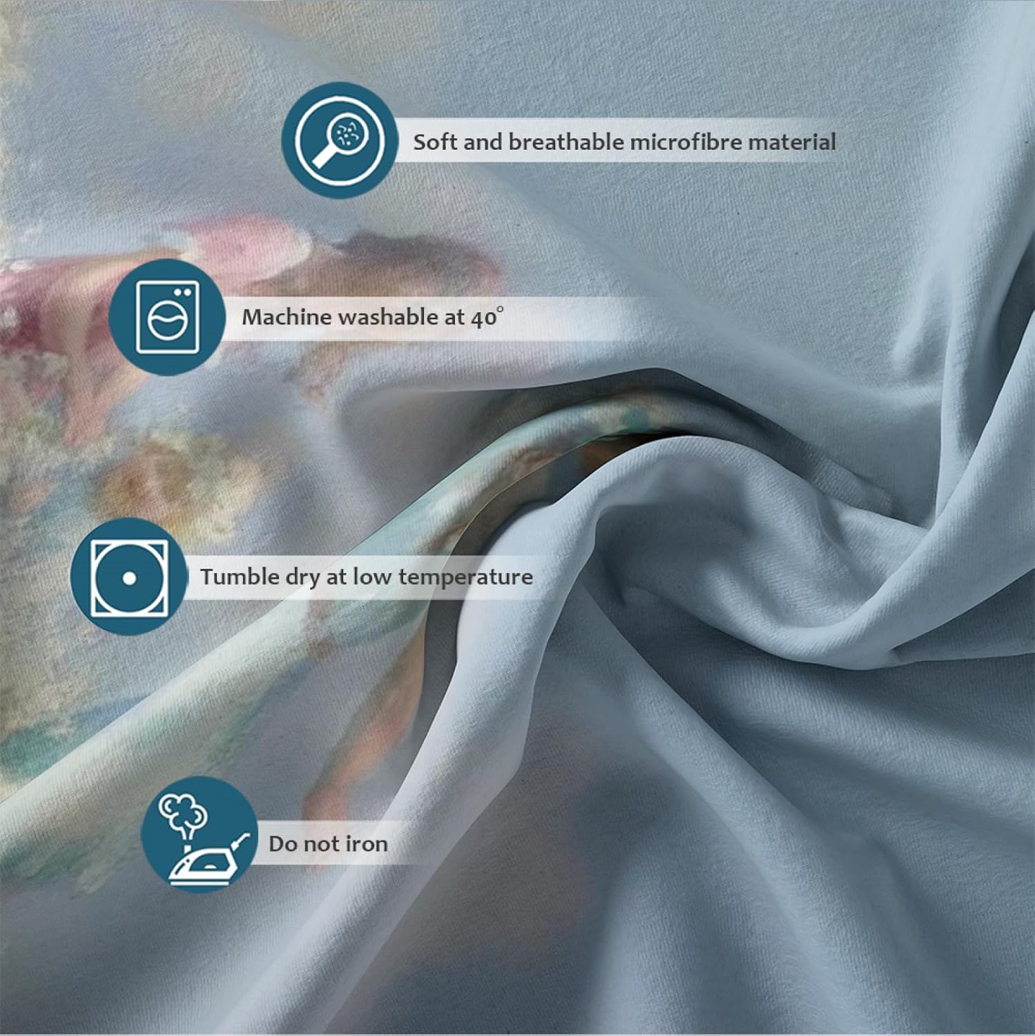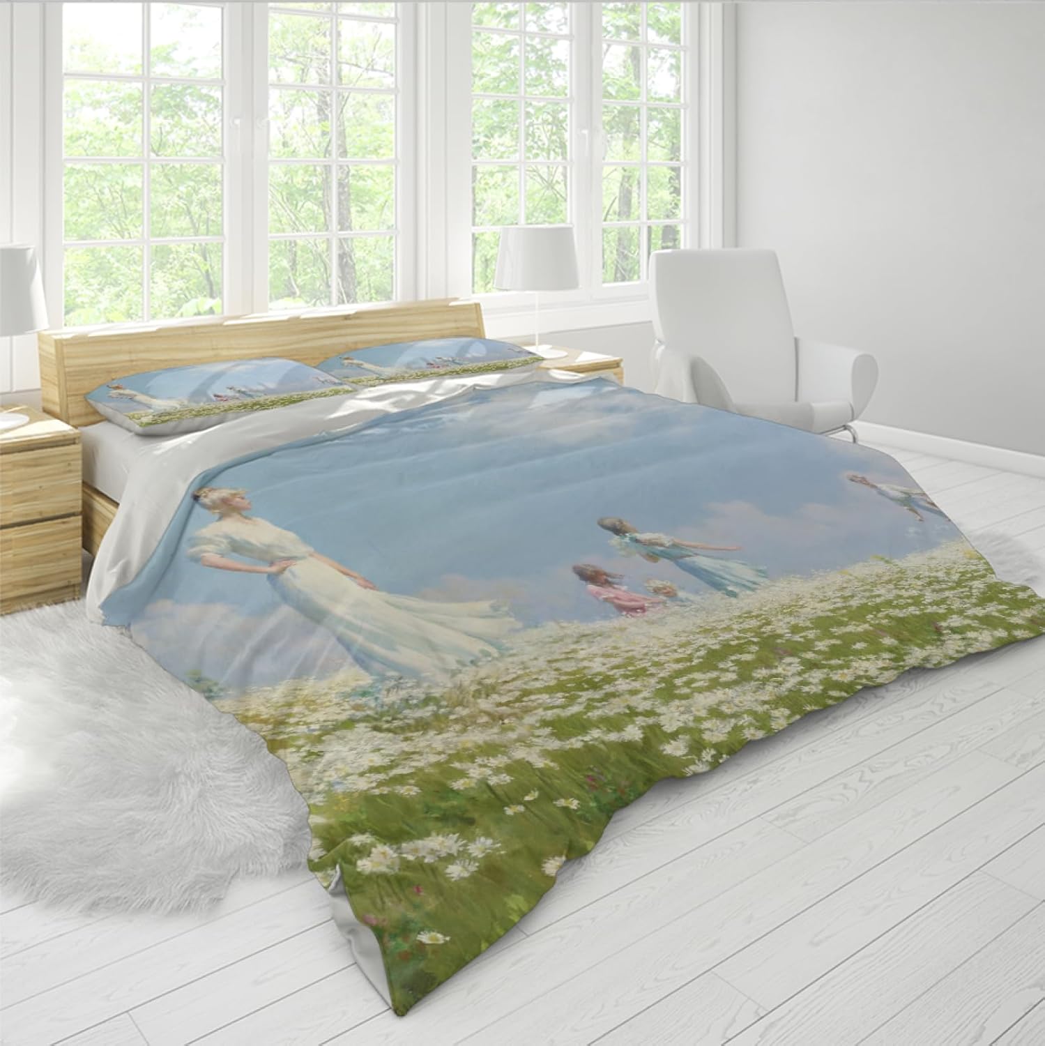 Versatile enough to complement any room in your home, from a childâs bedroom to a guest room, this chic design brings timeless charm with its blue sky and white daisy print. The durable, easy-care material is machine washable and fade-resistant, ensuring long-lasting use and effortless maintenance. Create a peaceful and inviting space today with the HOBBOY Blue Sky & White Daisy Duvet Cover Set.