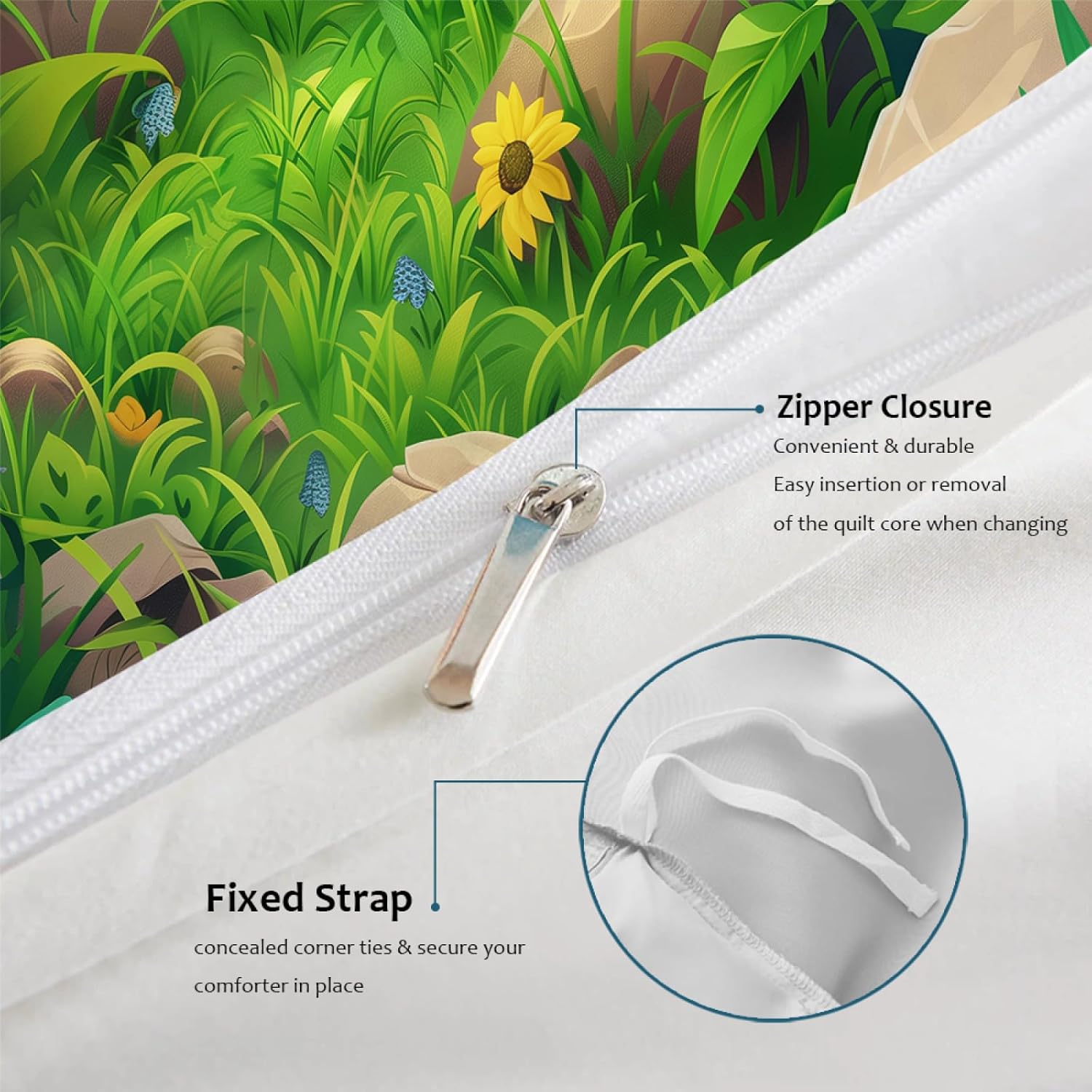The hidden zipper ensures a seamless, clean look while allowing easy access for quick cleaning. Combined with 4 corner ties, it keeps the filling in place and prevents shifting, offering a durable and reliable bedding experience for your little ones.