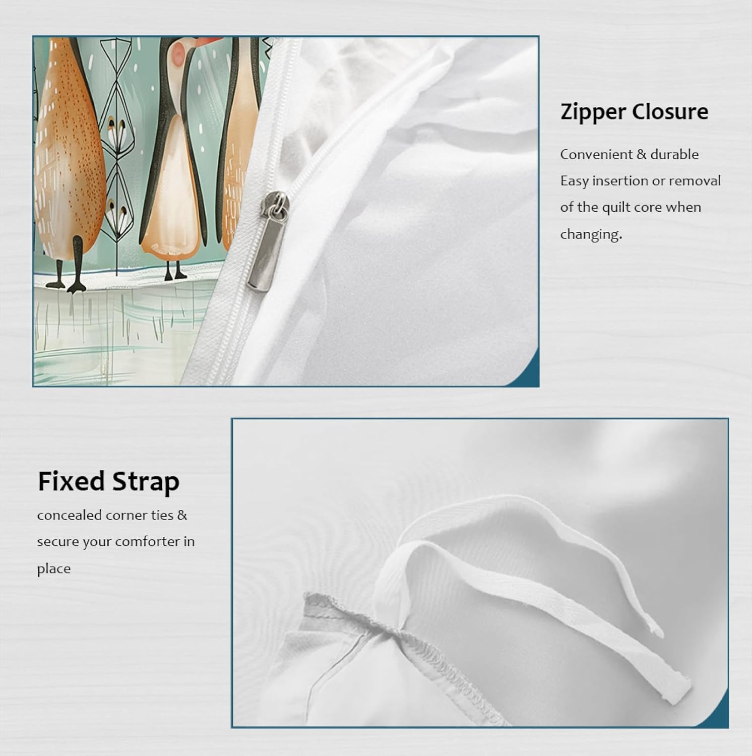 Elevate your bedroom with this charming HOBBOY Cartoon Penguins Duvet Cover Set. Combining whimsy and modern style, itâs designed to add a playful touch to any room, from kids' spaces to adult bedrooms. The soft, breathable microfiber fabric ensures all-night comfort, no matter the season. Itâs the perfect choice for anyone who loves fun and vibrant designs.