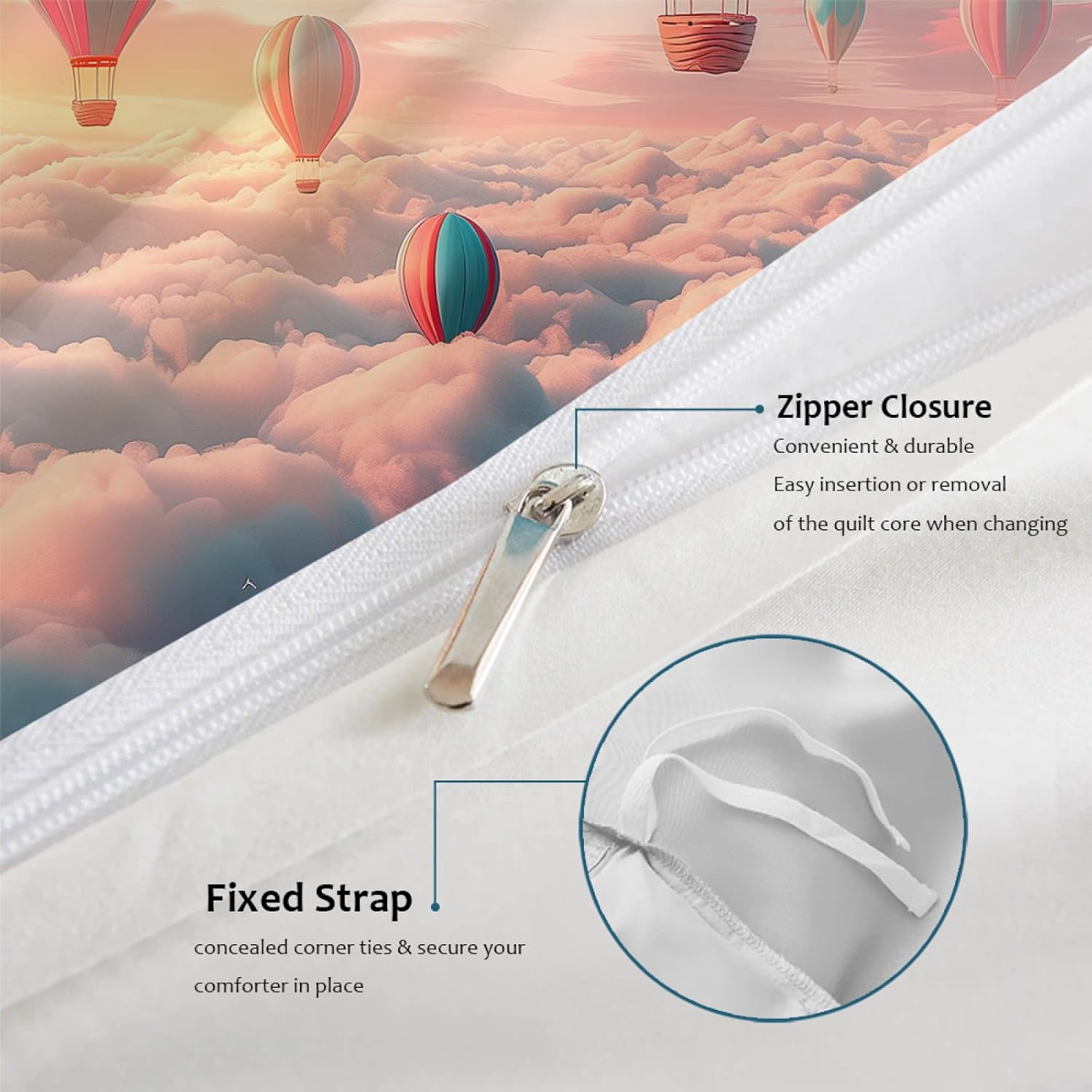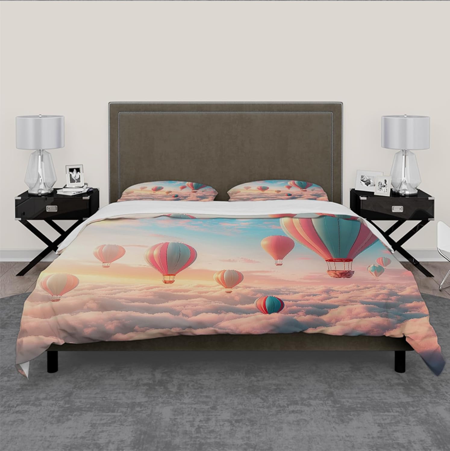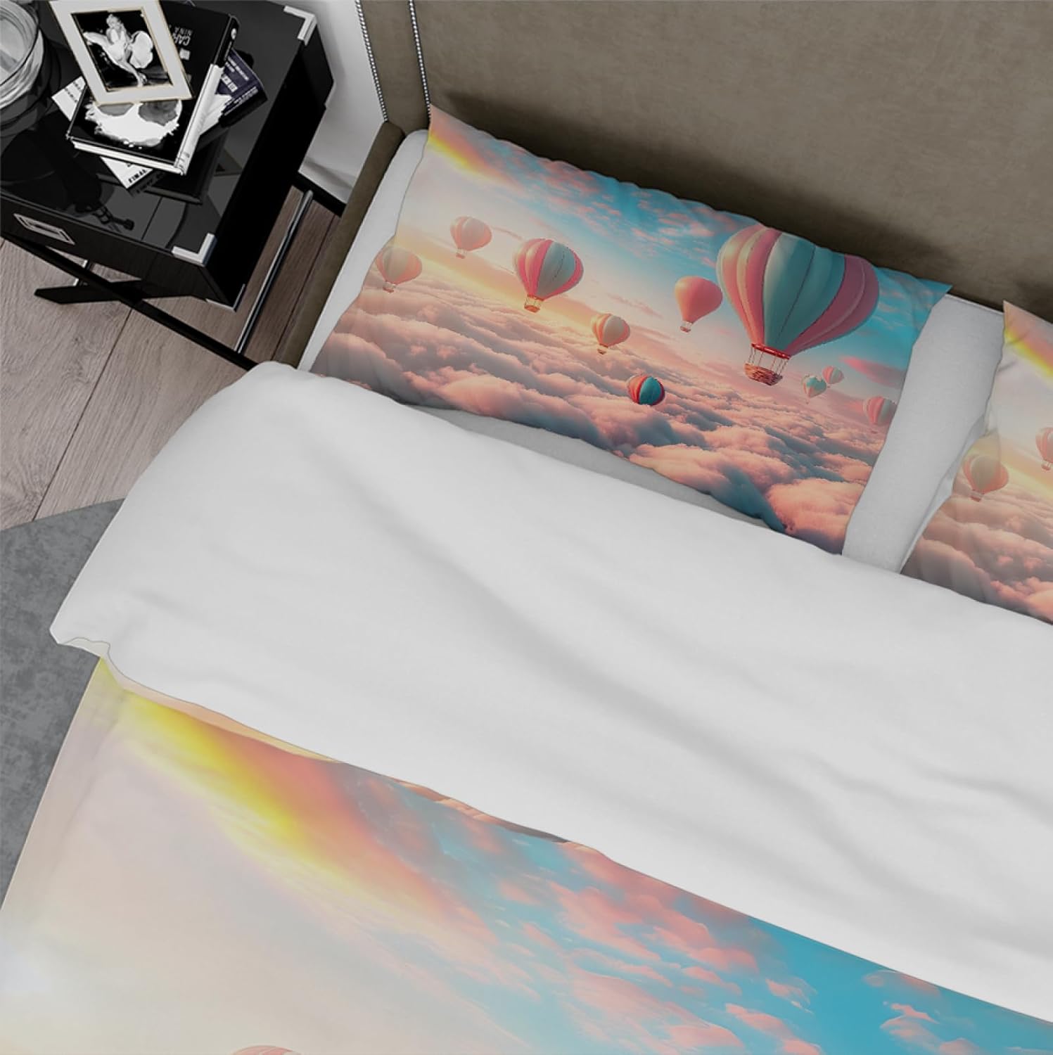 Transform your child's room with this adorable and functional HOBBOY 3-piece bedding set. Featuring a playful design with fluffy clouds and hot air balloon patterns, this set is perfect for adding a whimsical and stylish touch to any bedroom or themed party. The soft microfiber material ensures a comfortable and cozy sleep experience, making it ideal for kids of all ages.