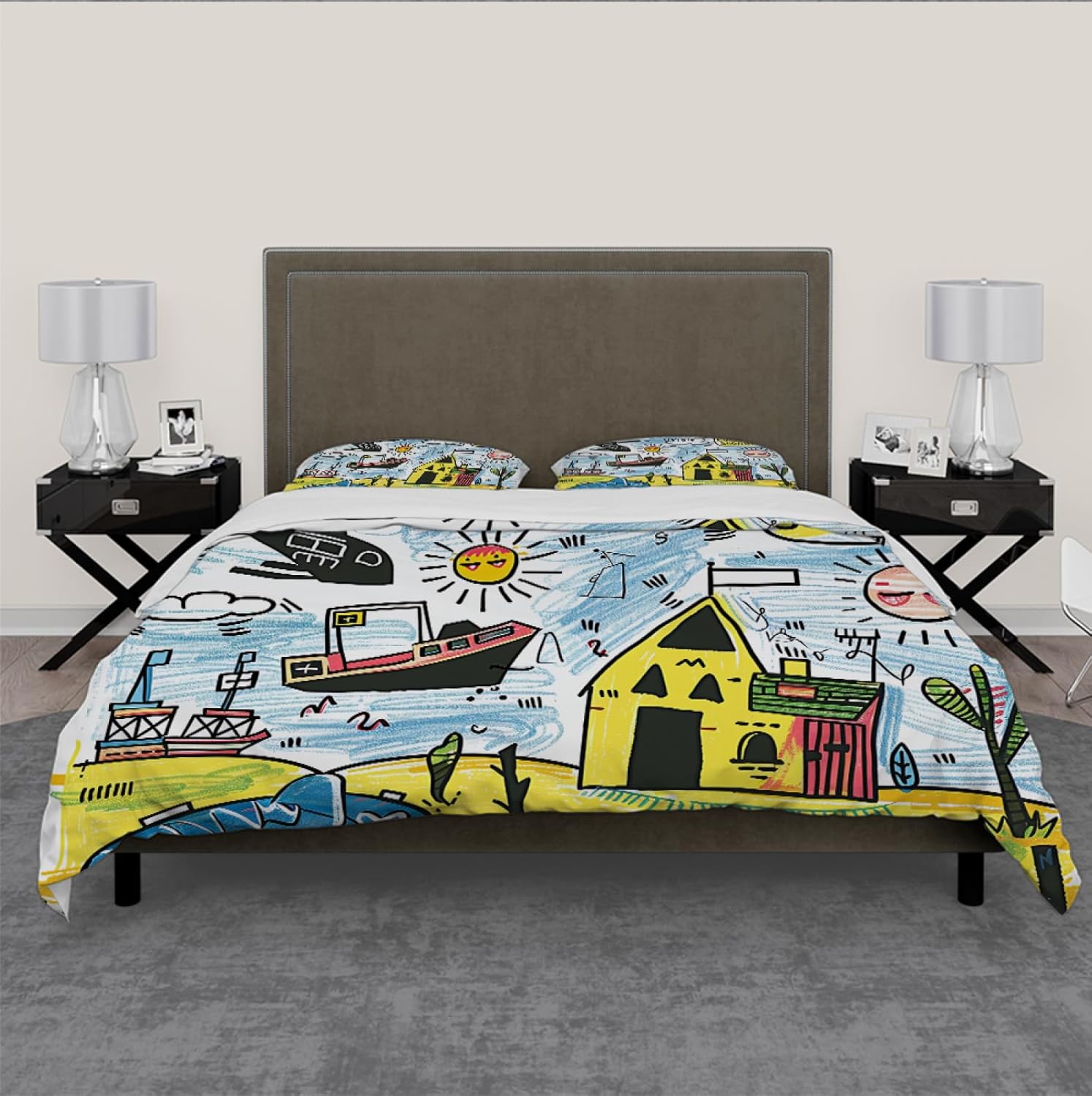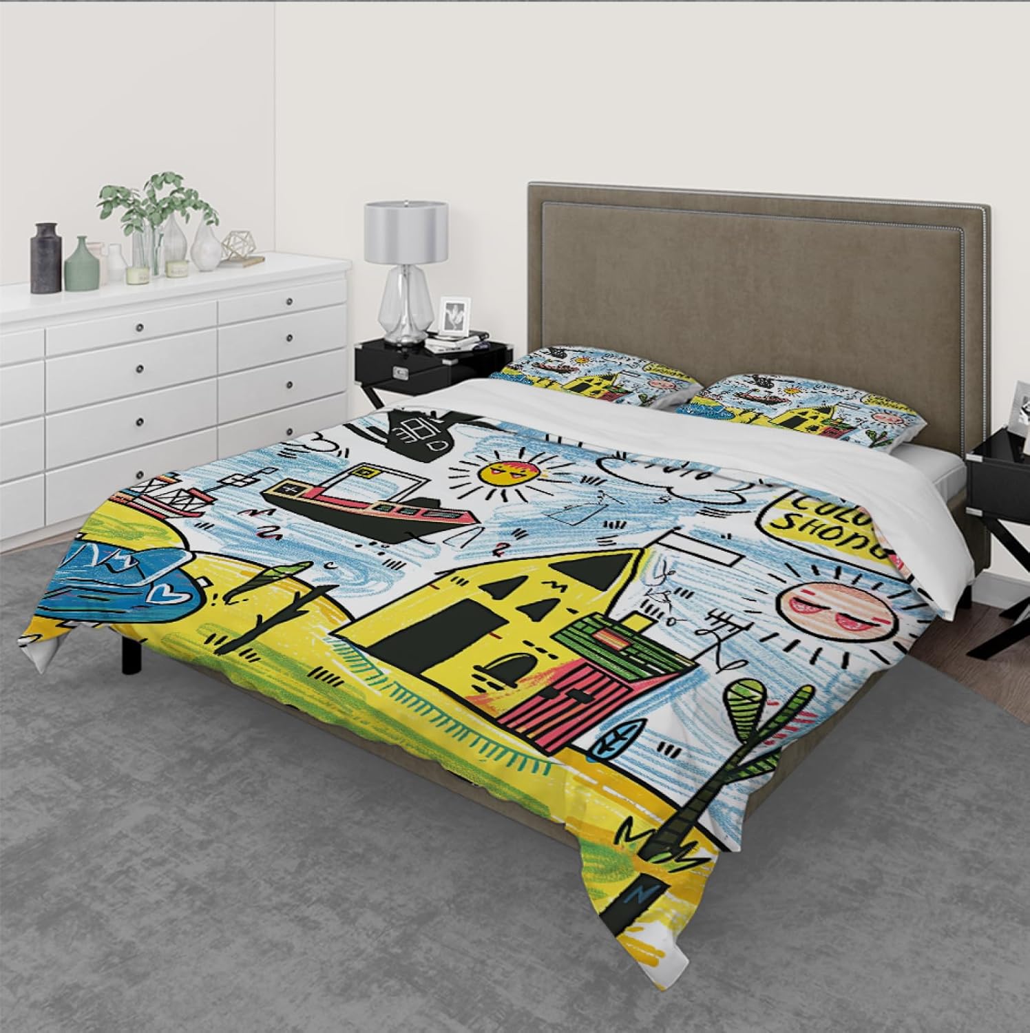 Designed to be used in your home, guest room, or vacation getaways, this Kids Duvet Cover Set is suitable for all seasons. The breathable and lightweight material ensures a cozy nightâs sleep, while its eye-catching design brings joy to every morning.