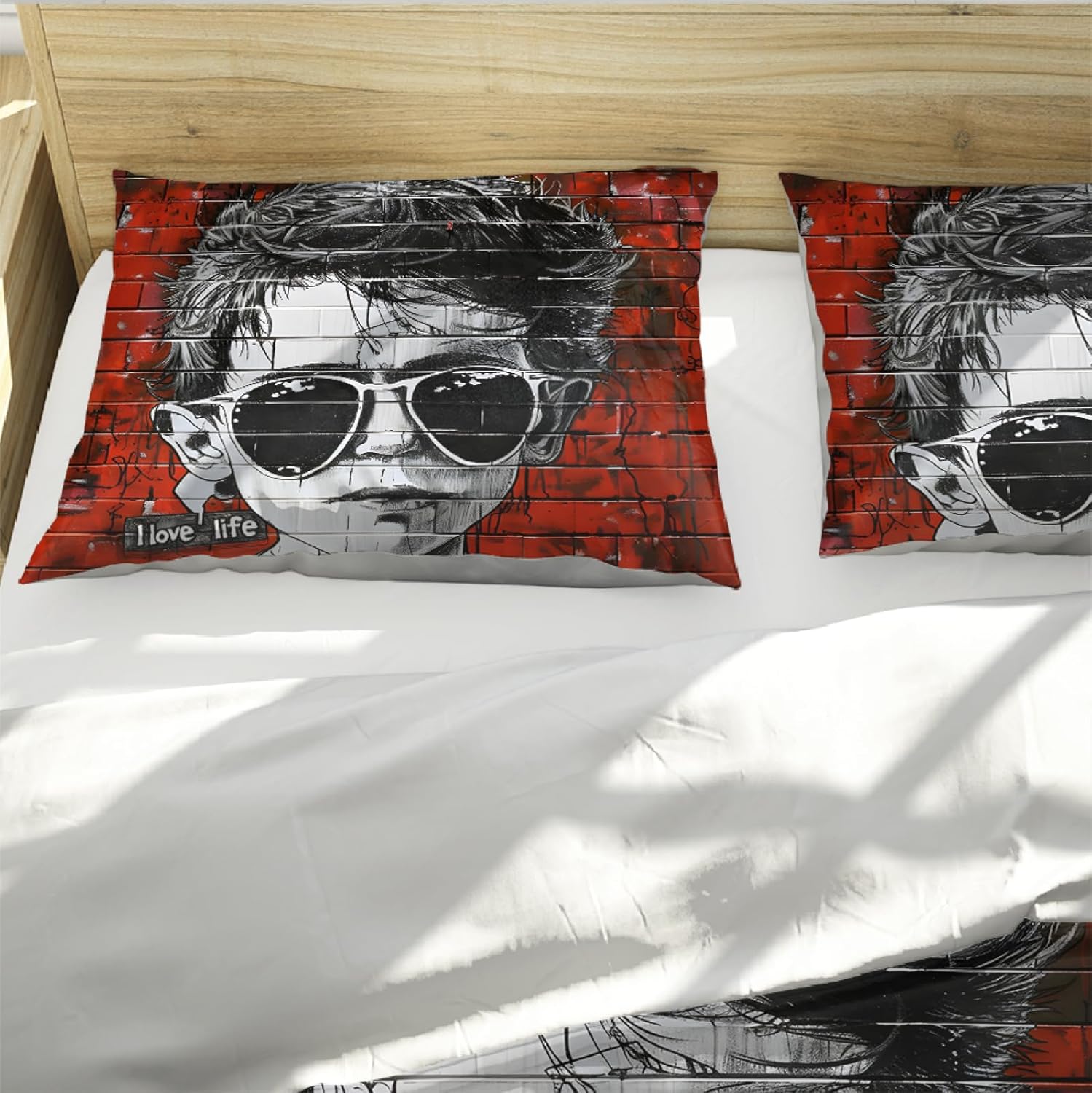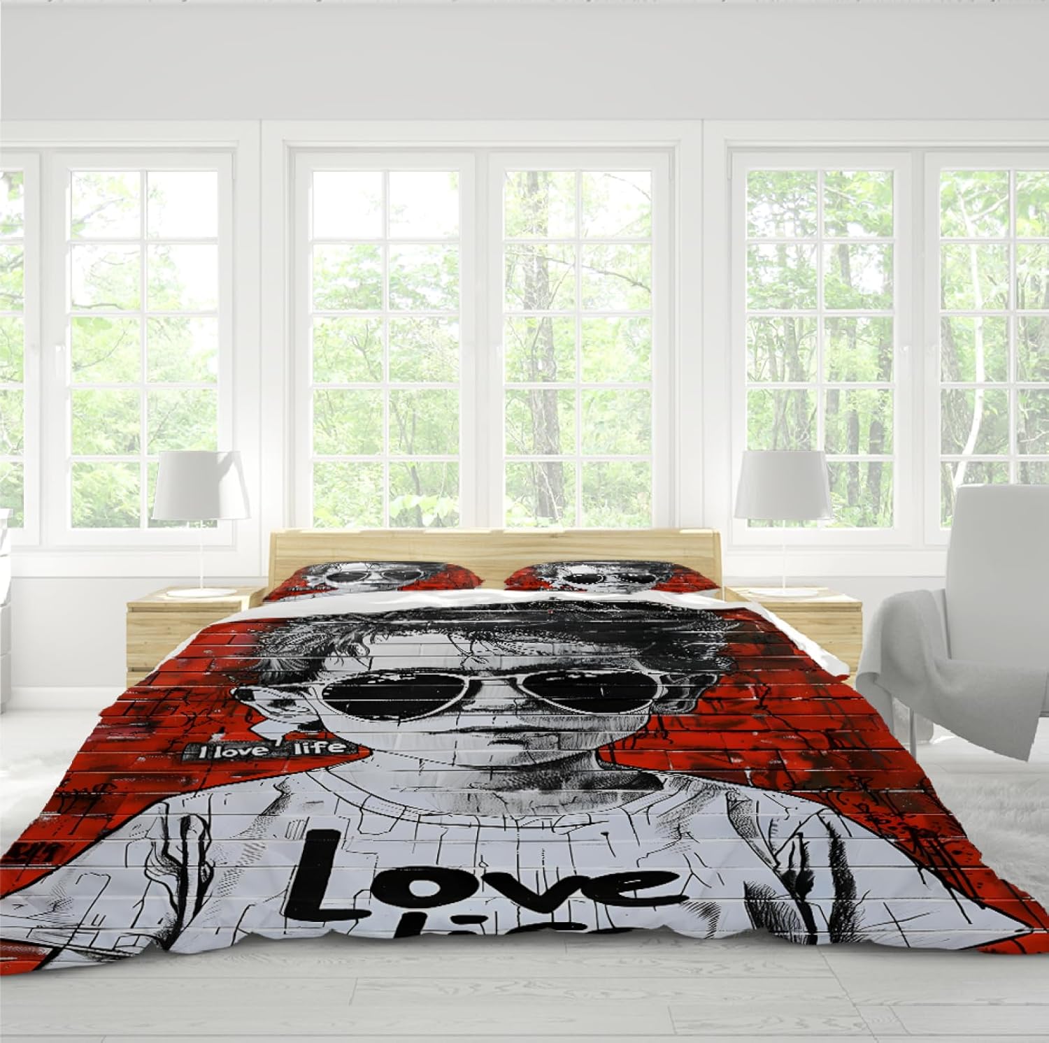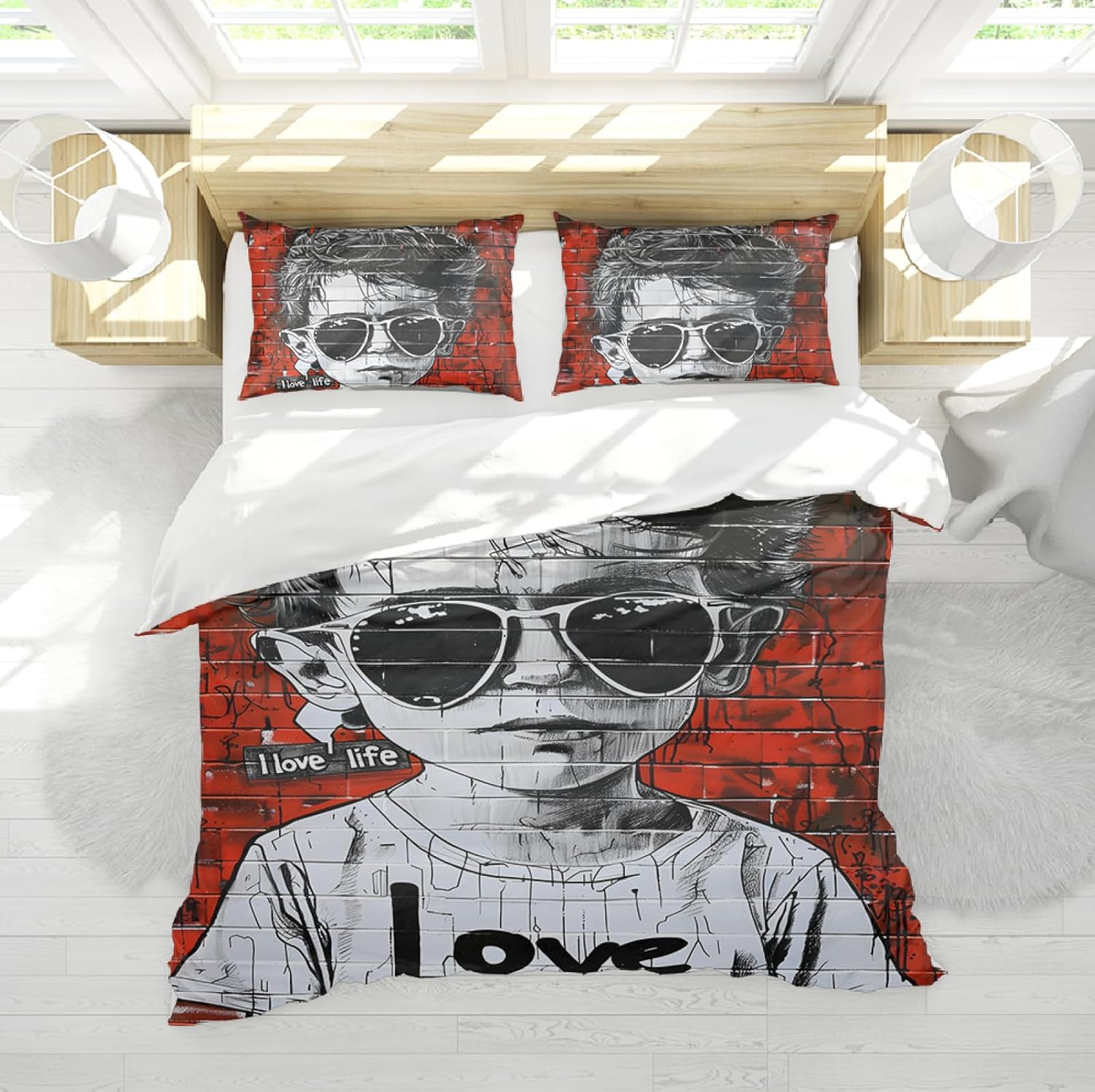 Elevate your child's bedroom with this stylish and comfortable bedding set. Featuring a bold red and boy-themed graffiti design, it brings a vibrant touch that kids will adore, making it a standout piece for any room décor.