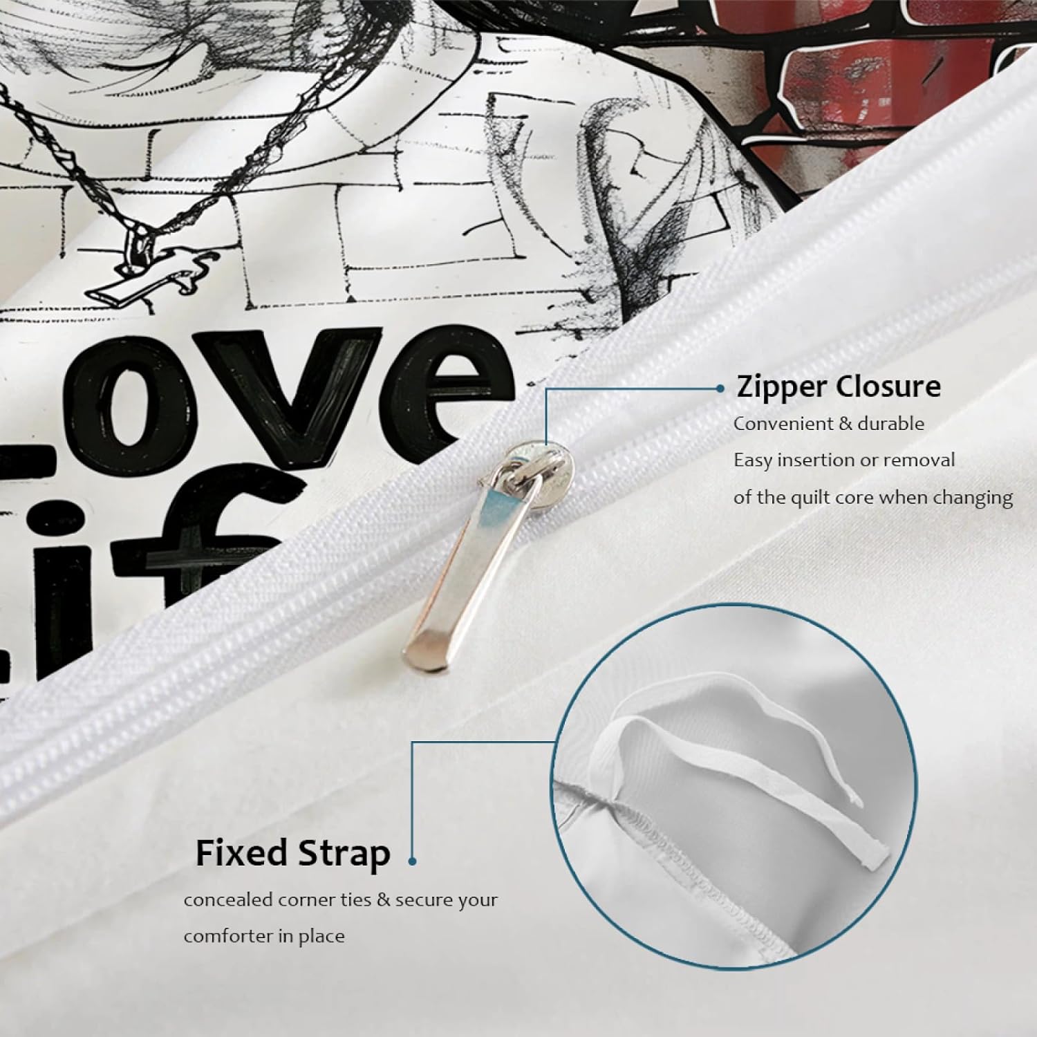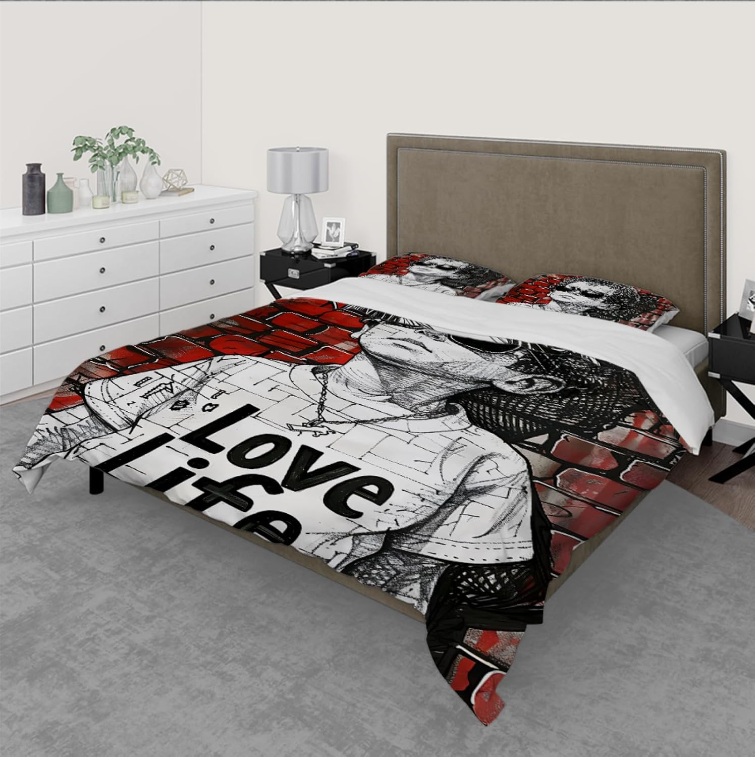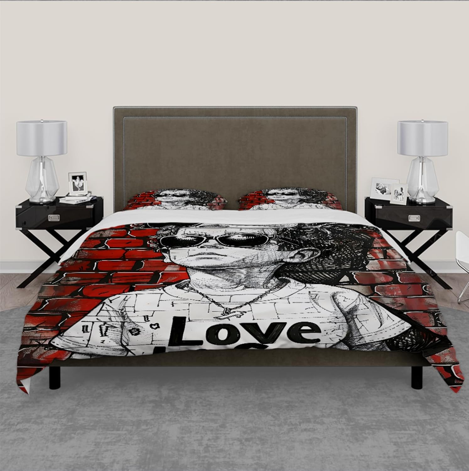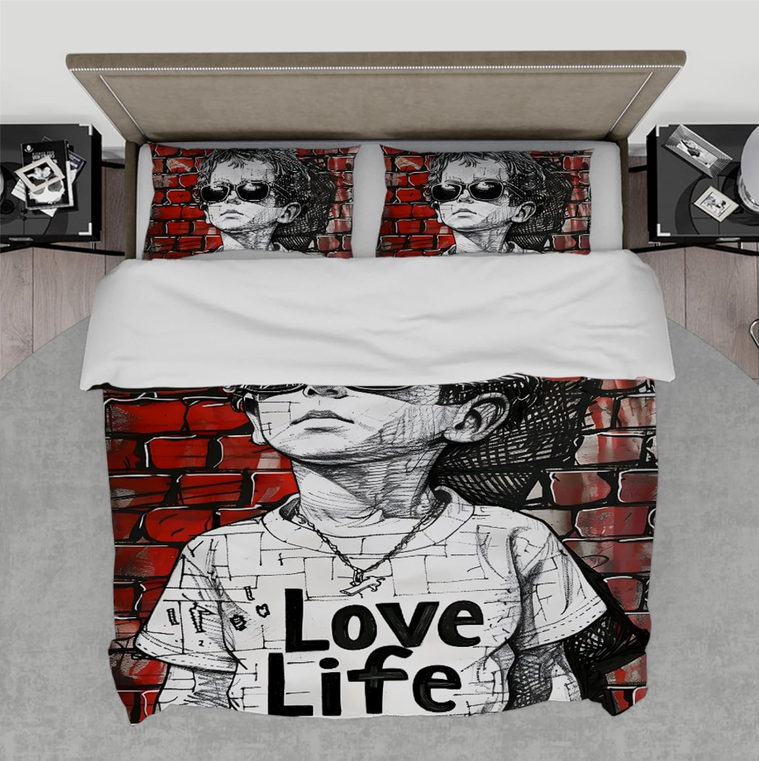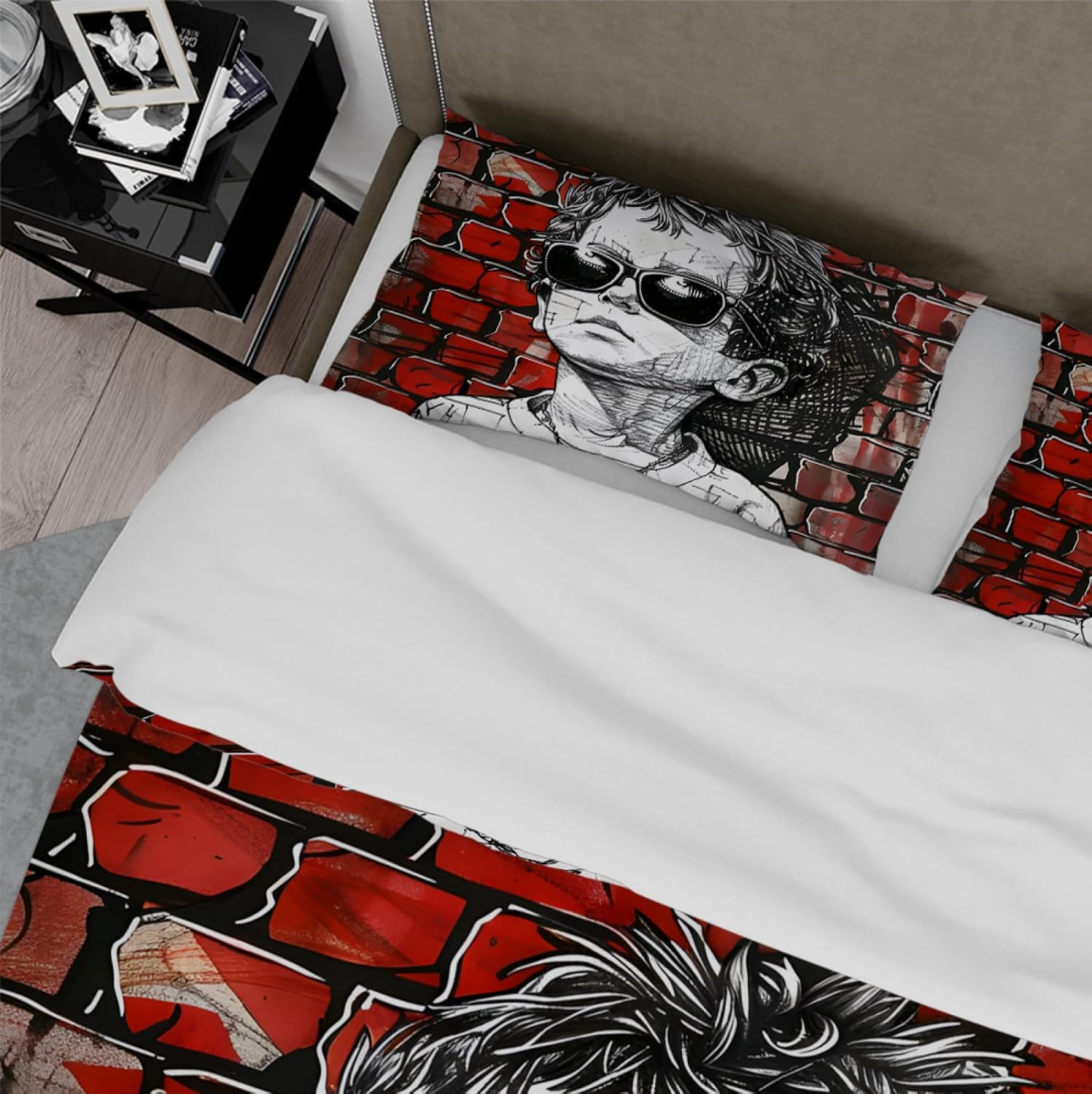 Featuring a bold red wall pattern, this duvet cover set adds a touch of playfulness and artistry to any bedroom. Its modern look complements all decor styles, making it an ideal choice for themed rooms or holiday setups.
