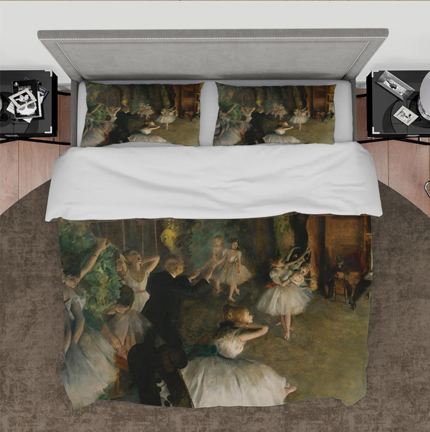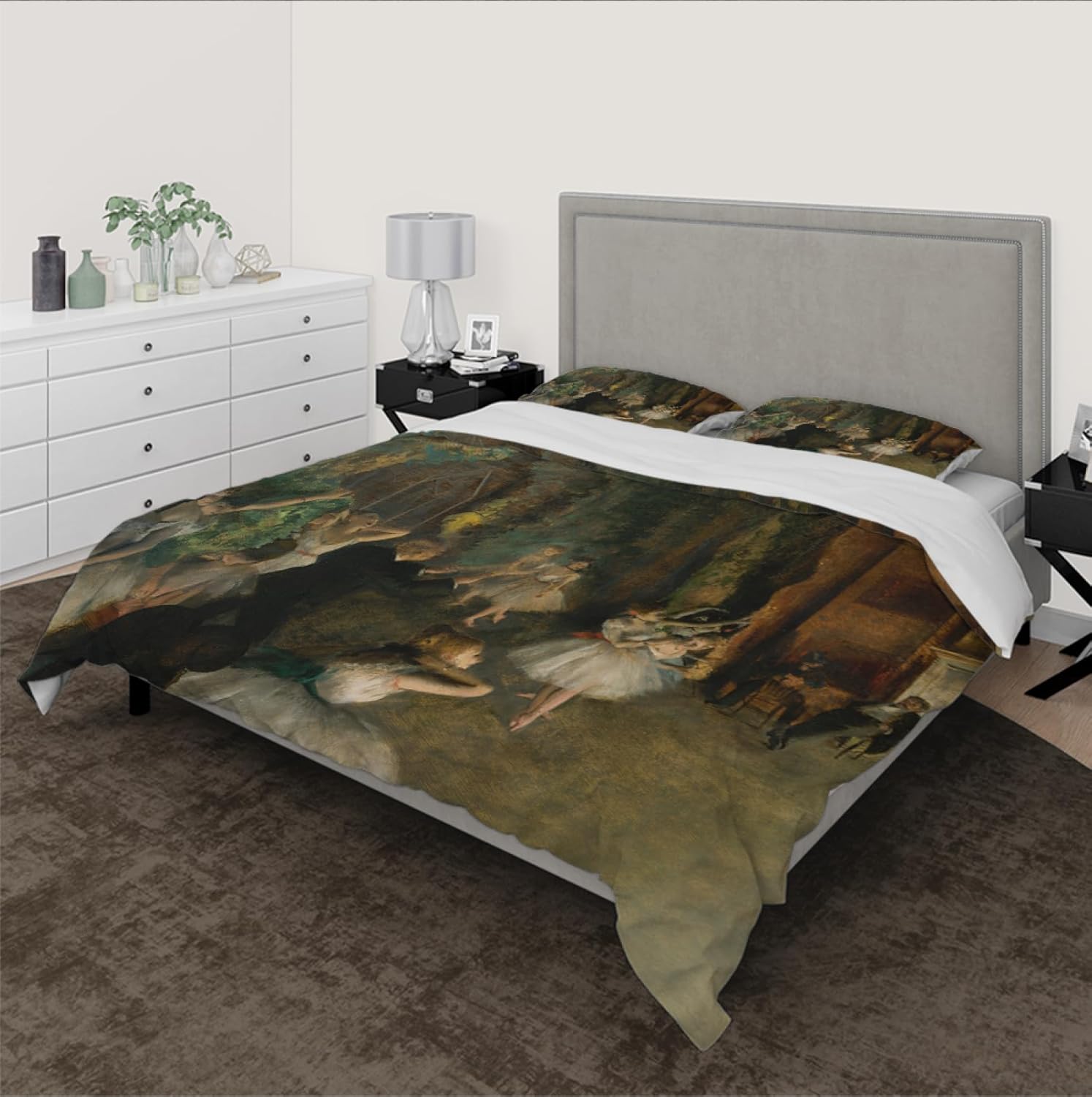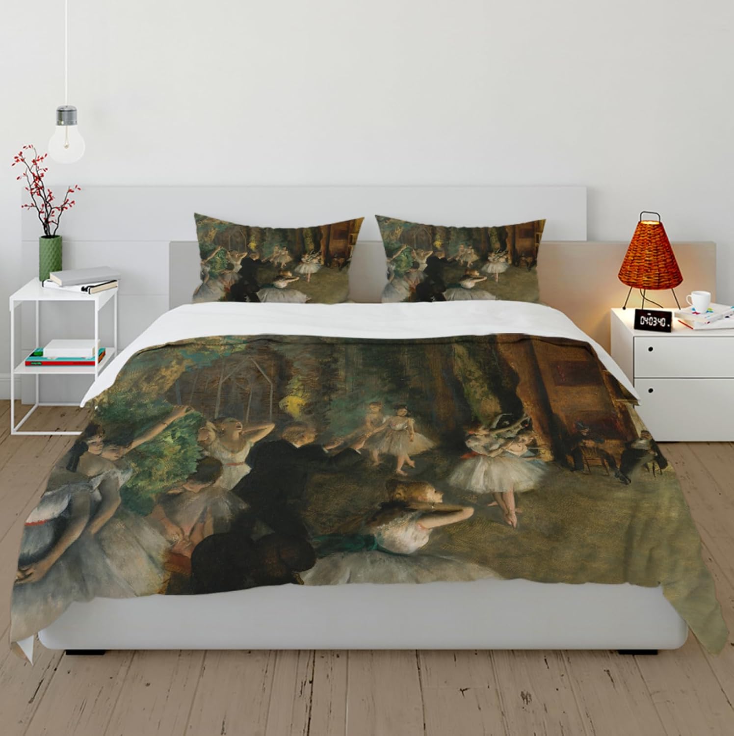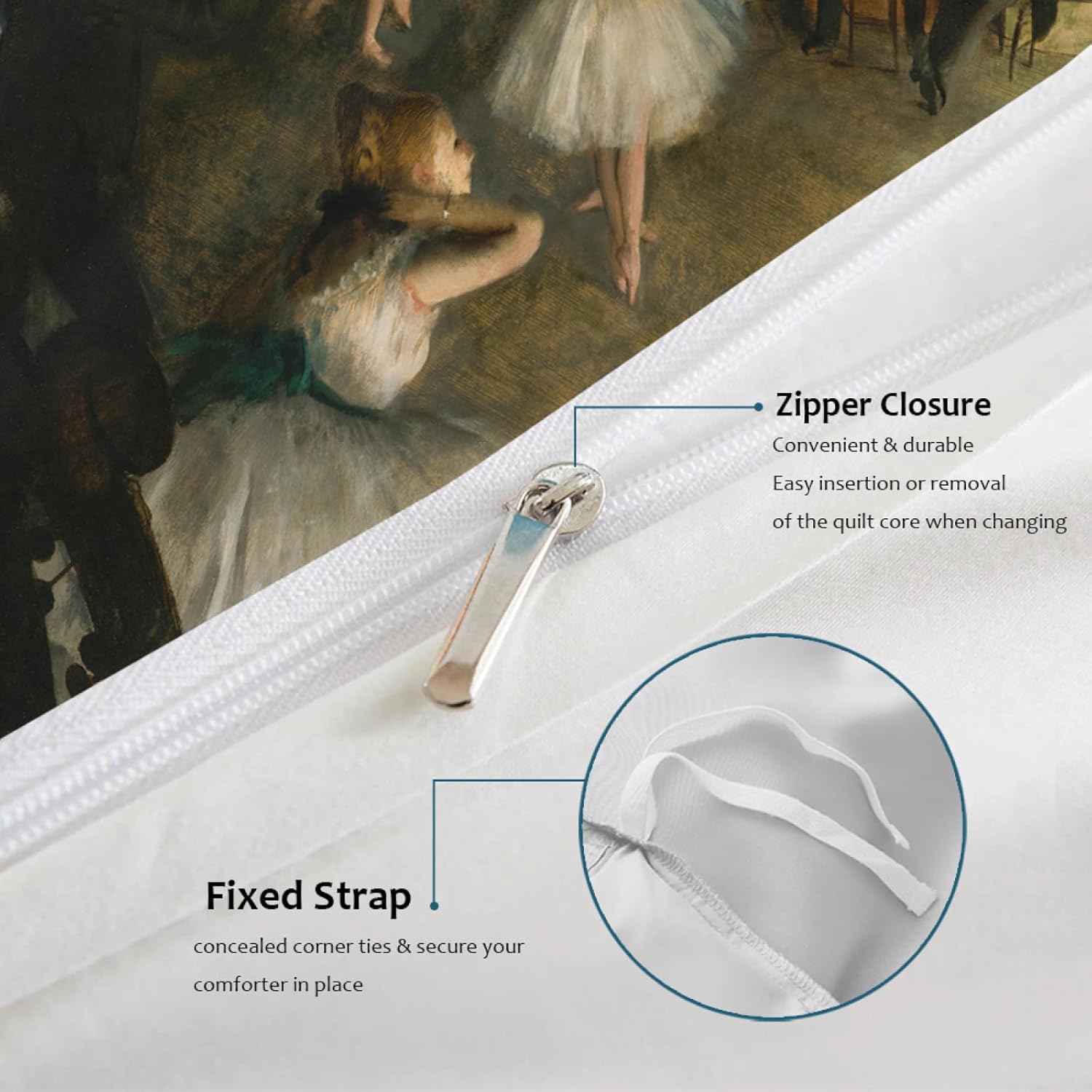 Elegant and comfortable duvet cover set featuring Edgar Degas-inspired art. Made from premium microfiber for softness and durability. Includes hidden zipper and 4 corner ties for secure fit. Perfect for all seasons and any bedroom decor.