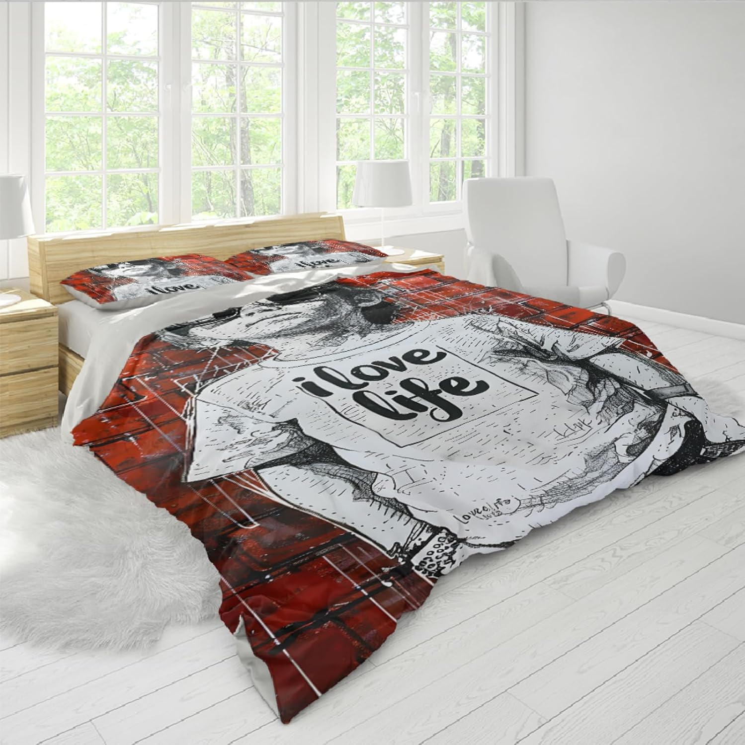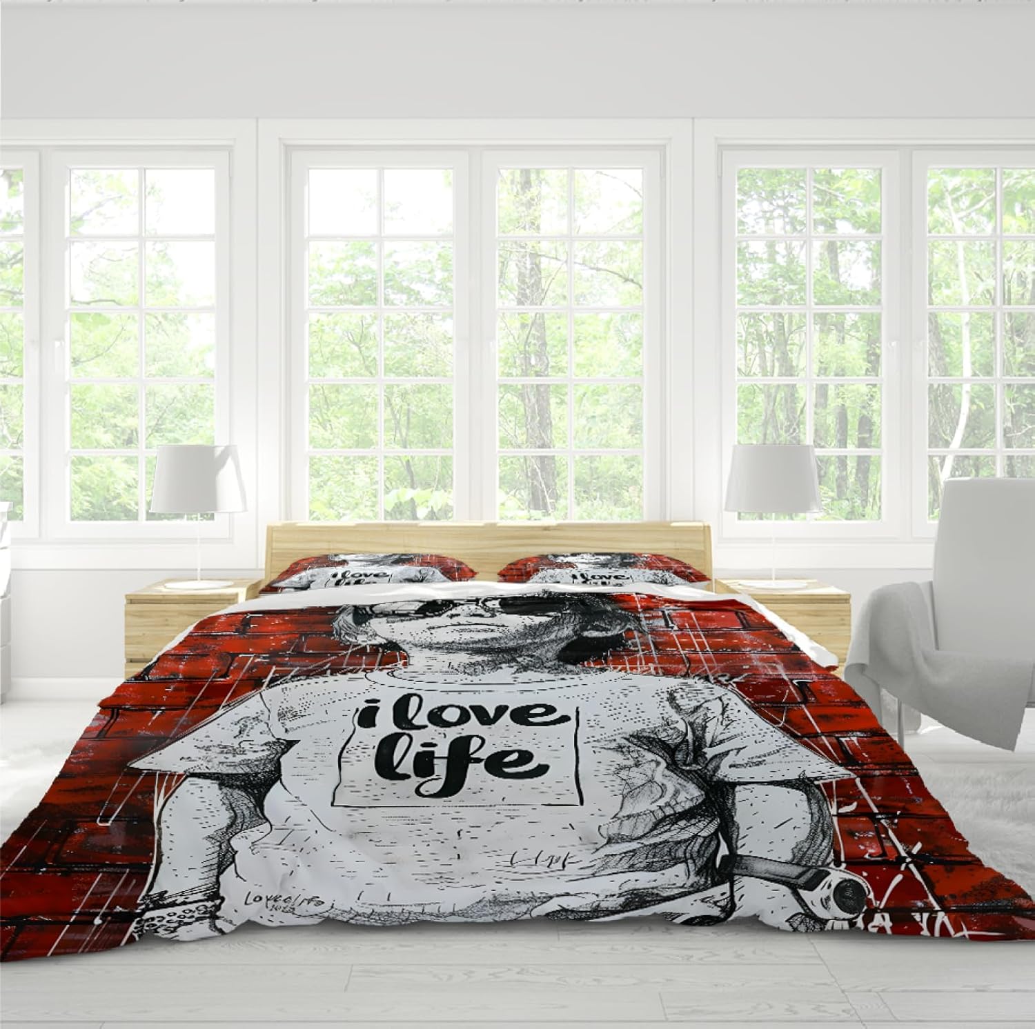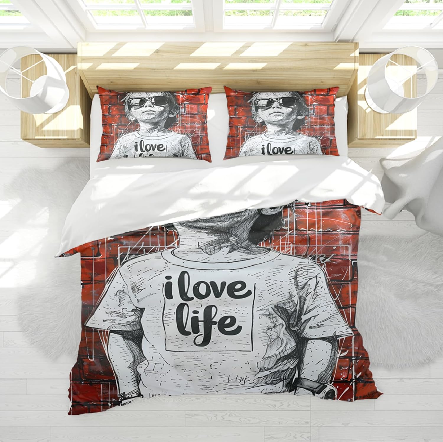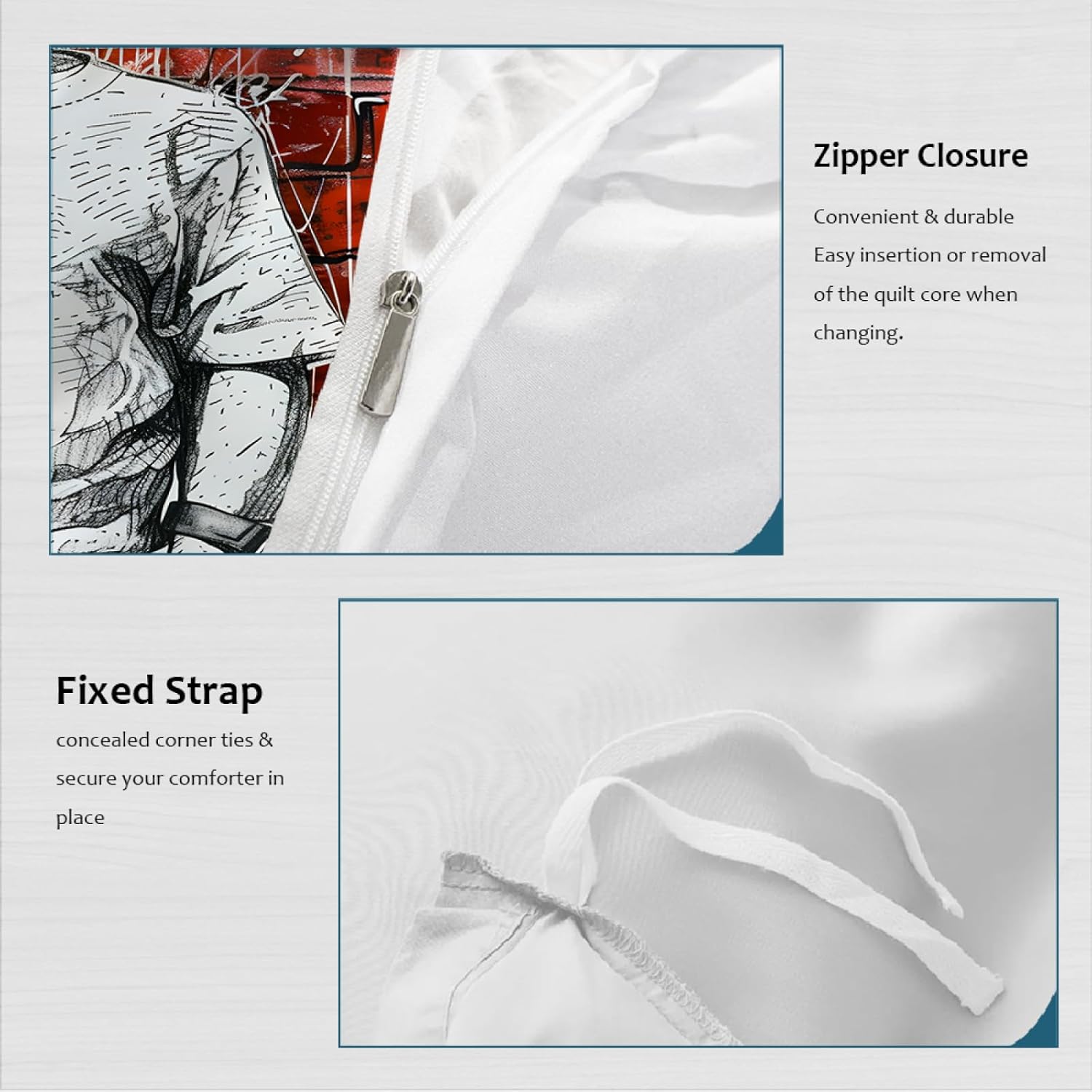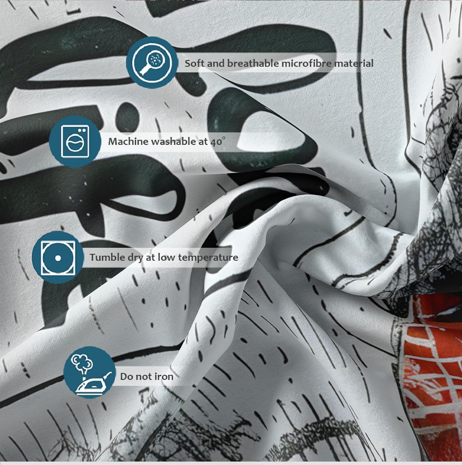 This 3-piece bedding set is versatile enough for home, guest rooms, or even used on vacation. Whether youâre looking to refresh your space or give a unique gift for Halloween or birthday, the HOBBOY Street Graffiti Duvet Cover Set is both stylish and practical. With its premium polyester construction, itâs durable and easy to care for, ensuring lasting comfort and freshness for your little ones.