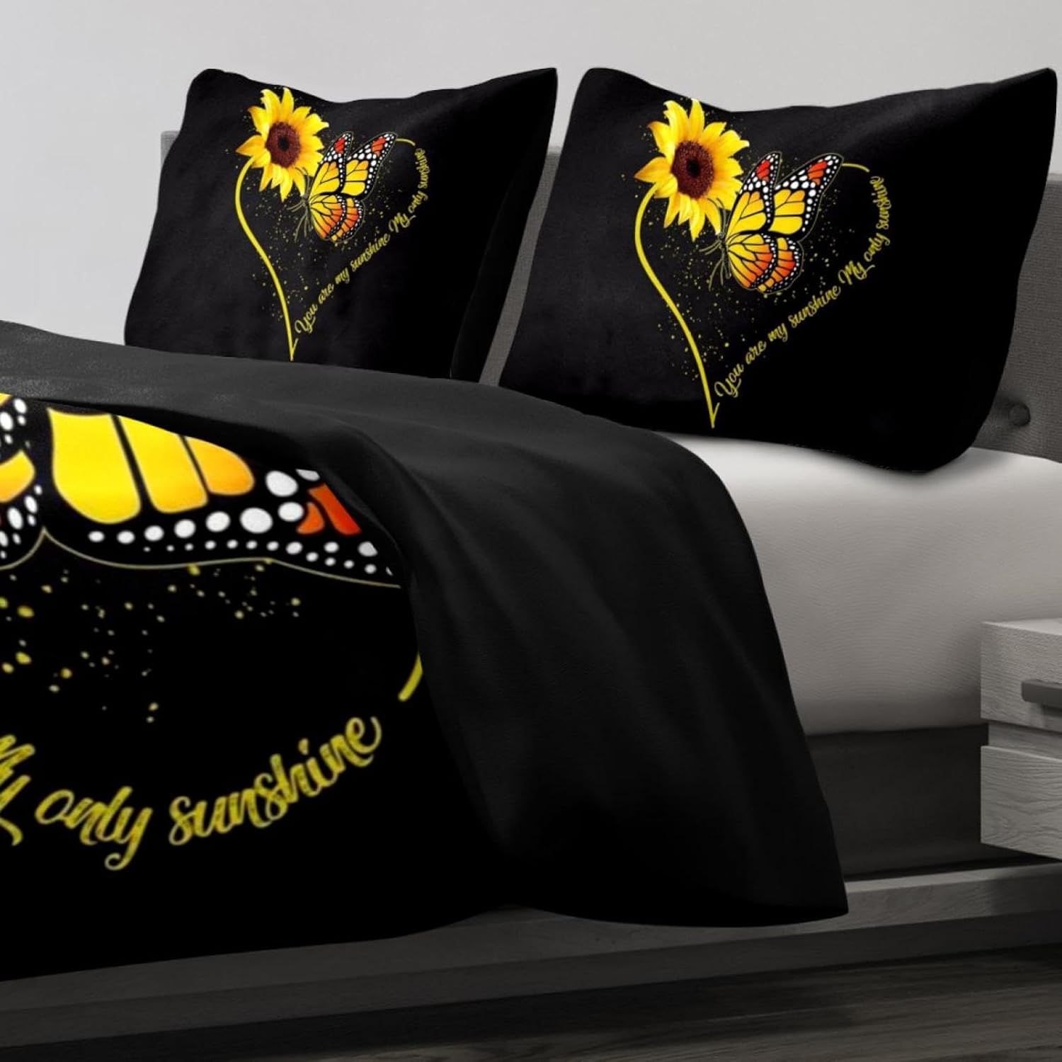 This 3-piece set is the perfect way to add a touch of whimsy and style to your child’s bedroom. Crafted from 100% washed microfiber, it's ultra-soft, lightweight, and built to last. The heart-shaped sunflower design brings a unique and eye-catching look to one side, while the solid color on the reverse offers a sleek, versatile alternative.