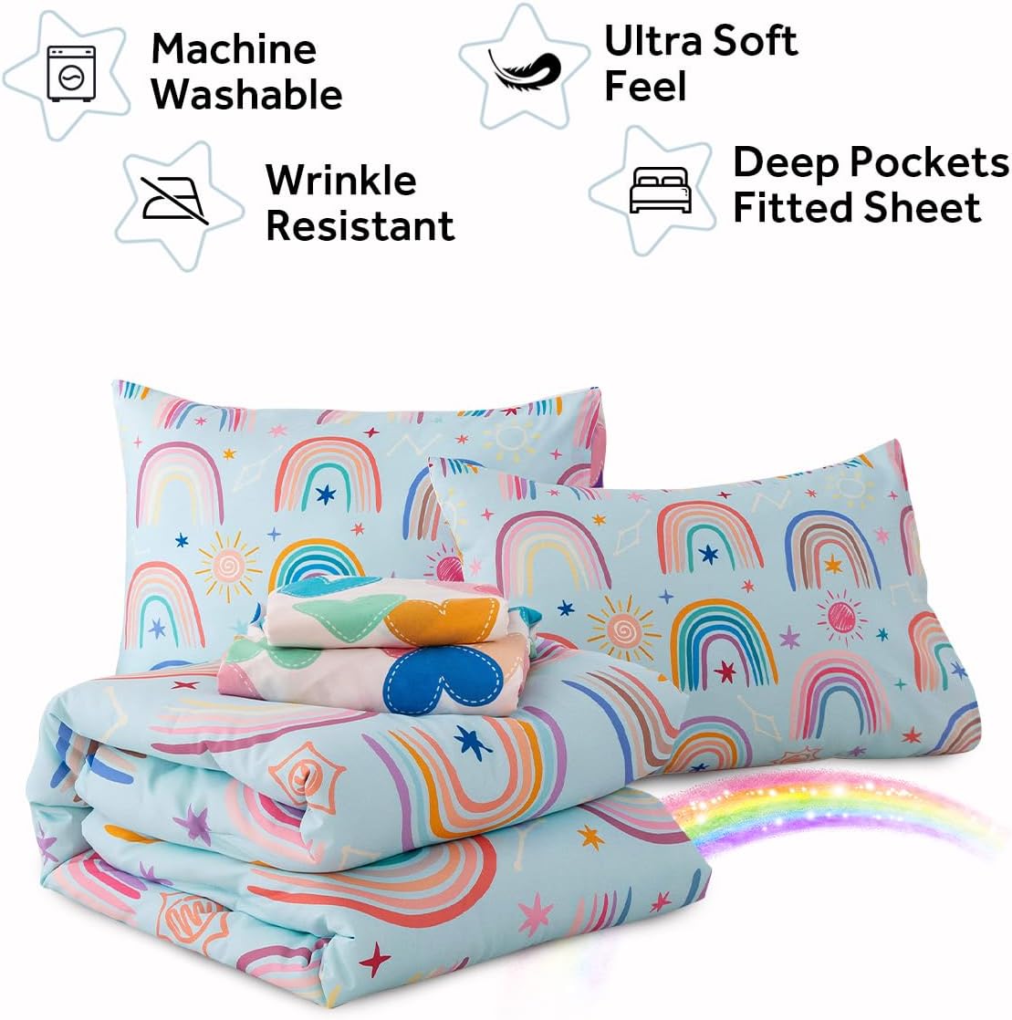 Bring a touch of vibrant color and whimsical charm to your girl's bedroom with this stunning boho rainbow bedding set. Perfect for a cozy sleep environment, it combines a dreamy bohemian-inspired rainbow design with playful sun, stars, and constellation patterns to create a unique and eye-catching look. Whether it's for a room update, a birthday gift, or a special holiday, this comforter set adds a magical feel to any space.
