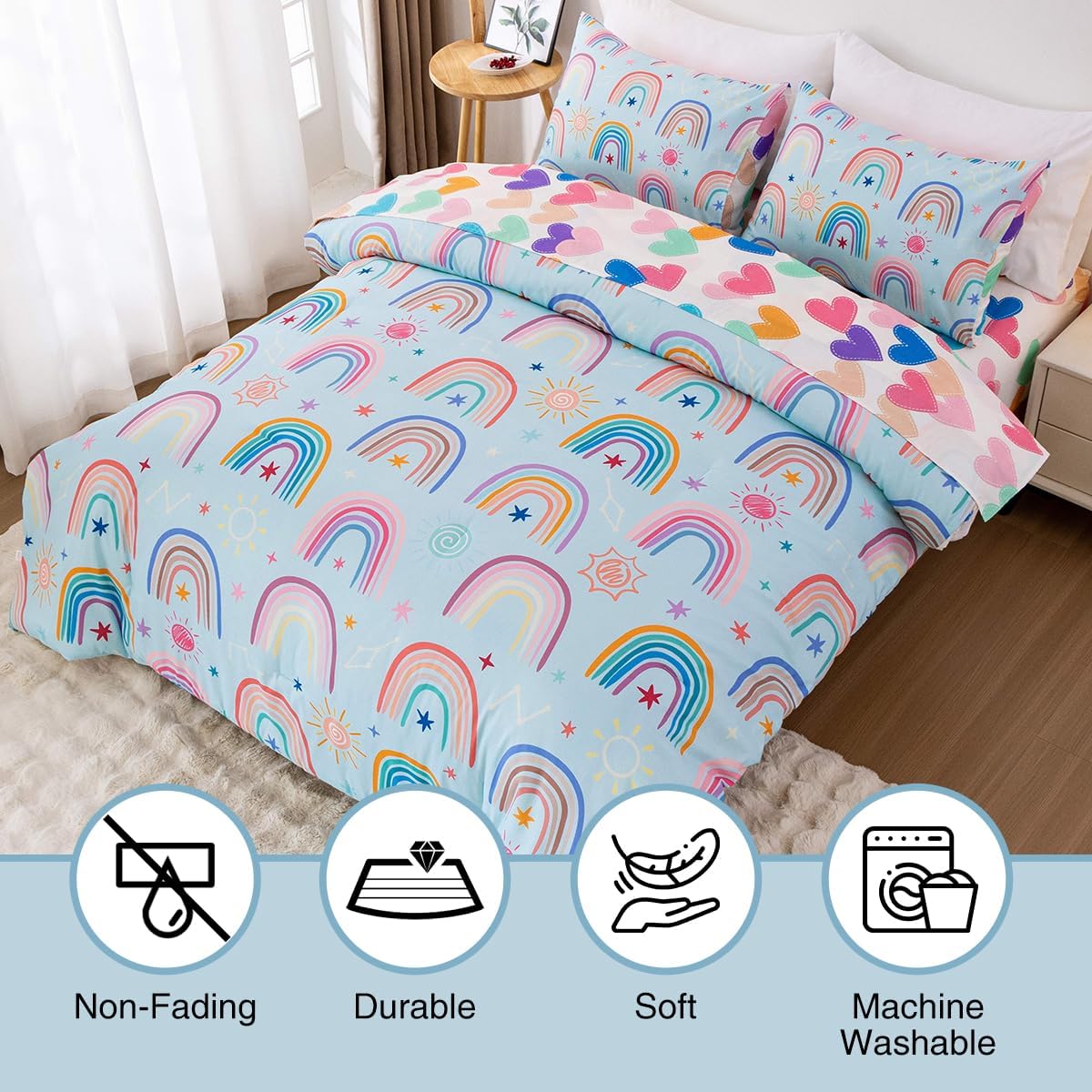 This Holawakaka comforter set is more than just beddingâit's a statement of style and comfort. The whimsical boho rainbow design brings a sense of joy and creativity, while the high-quality microfiber fabric ensures a soft and cozy sleep experience. It's the ultimate way to create a welcoming and stylish bedroom environment for your daughter or a young teen.
