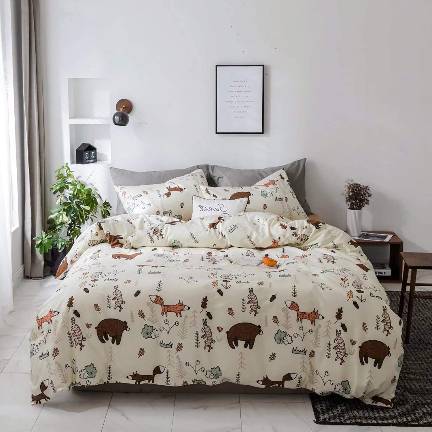 Whether you're restyling your child's room or looking for a thoughtful gift, this bear duvet cover set is a delightful addition. The cute woodland animal pattern features a bear, rabbit, and fox, making it both eye-catching and comforting for toddlers and young kids. With its modern and luxurious design, it's ideal for creating a cozy, inviting atmosphere in any bedroom or guest room.