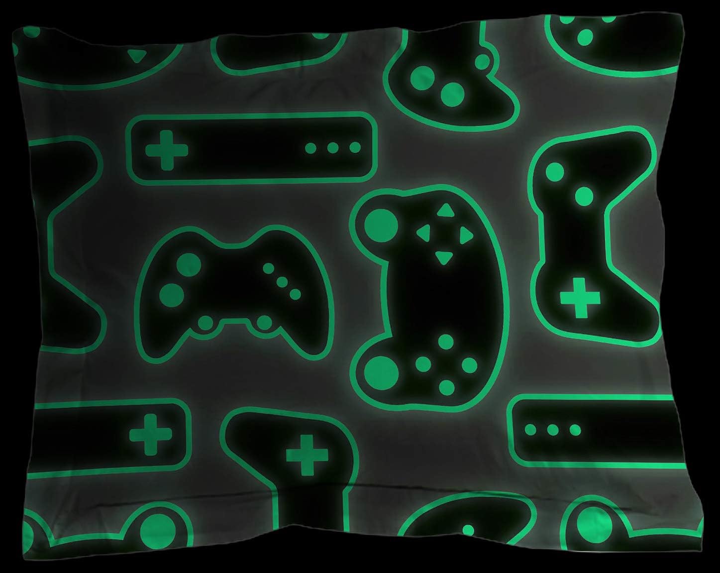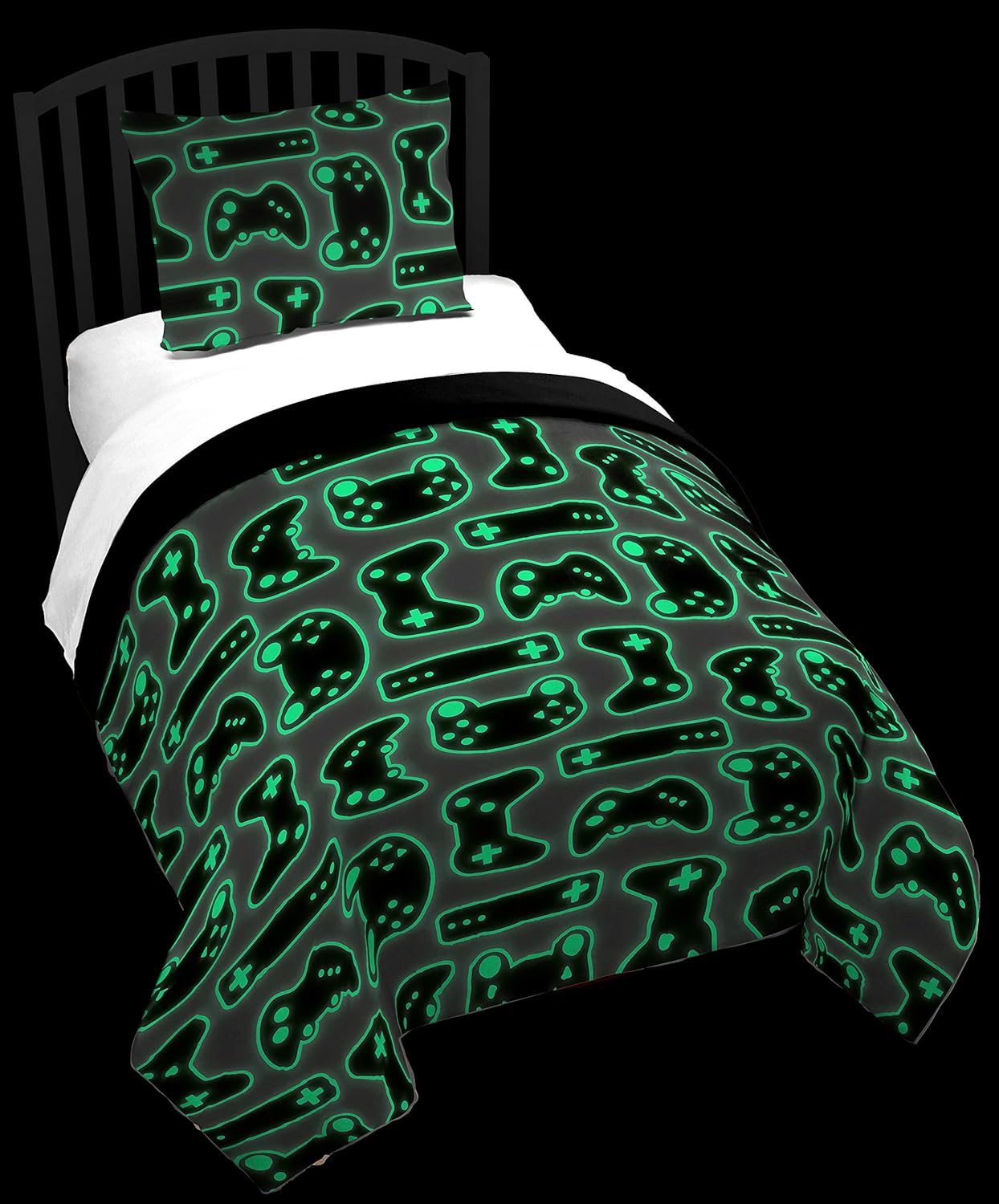 Add a touch of adventure and style to your child's room with this eye-catching glow in the dark comforter set. Designed with a playful video game controller pattern that illuminates in the dark, it brings a sense of wonder to every bedtime. The set is crafted from super soft brushed microfiber, offering exceptional comfort and a cozy feel that adapts to all seasons. With its fade-resistant fabric, the colors stay vibrant for years, ensuring long-lasting charm and quality that keeps up with your child's growing imagination.