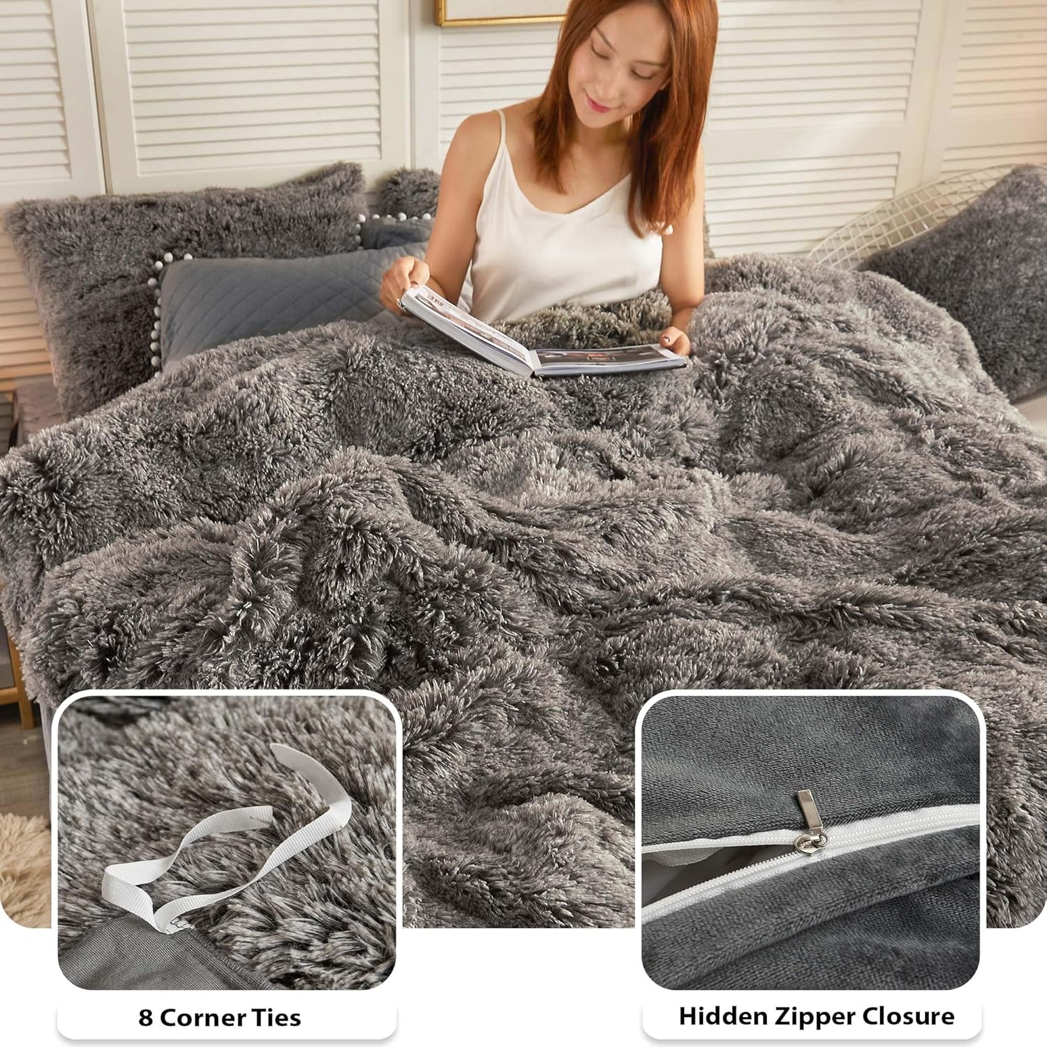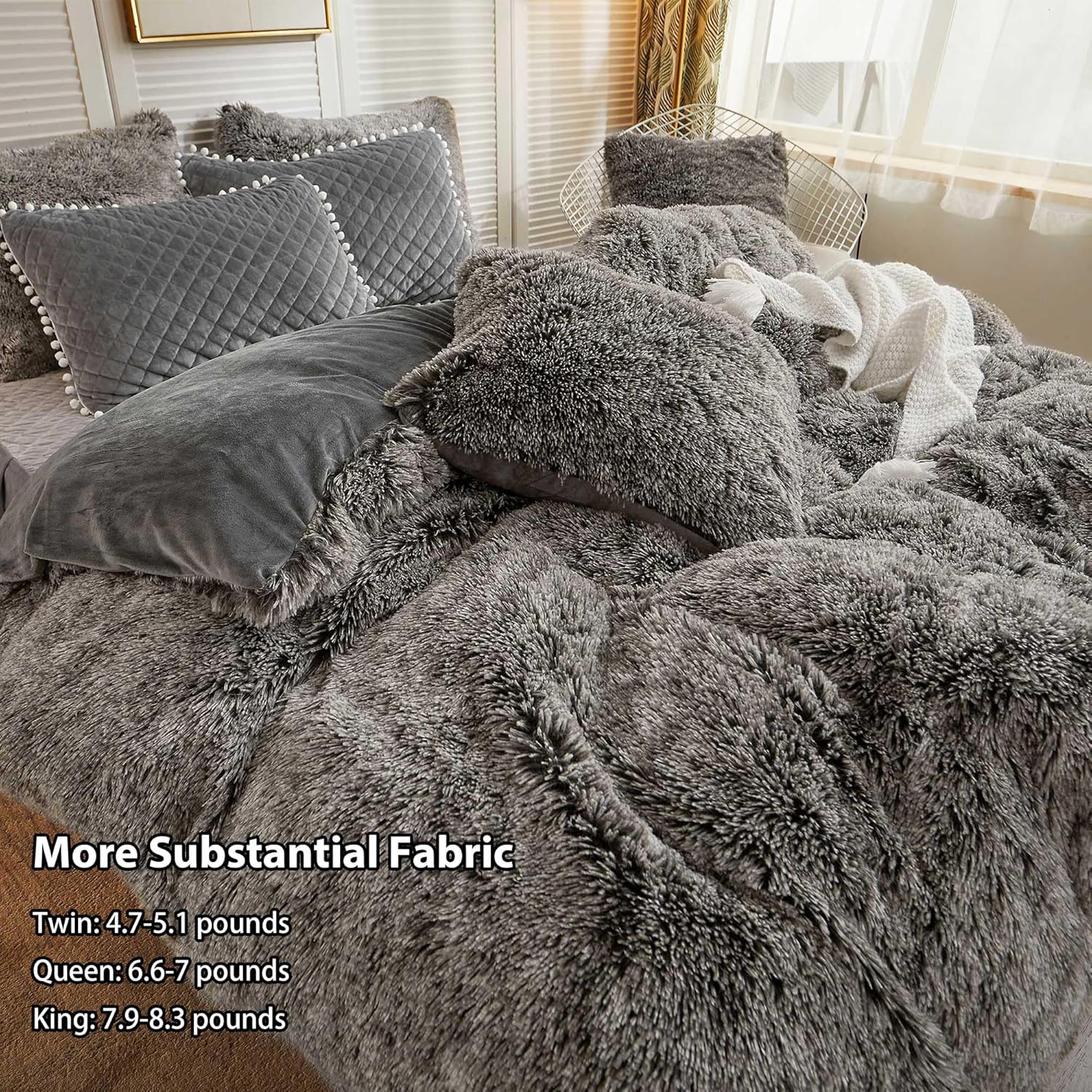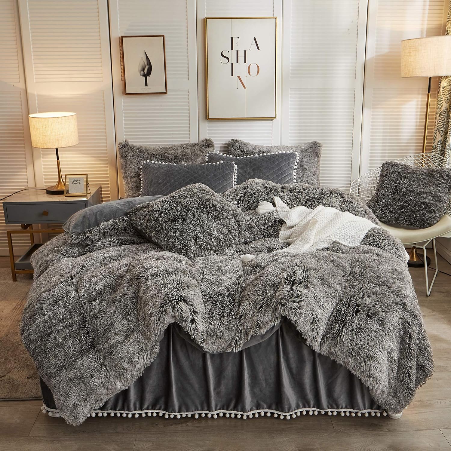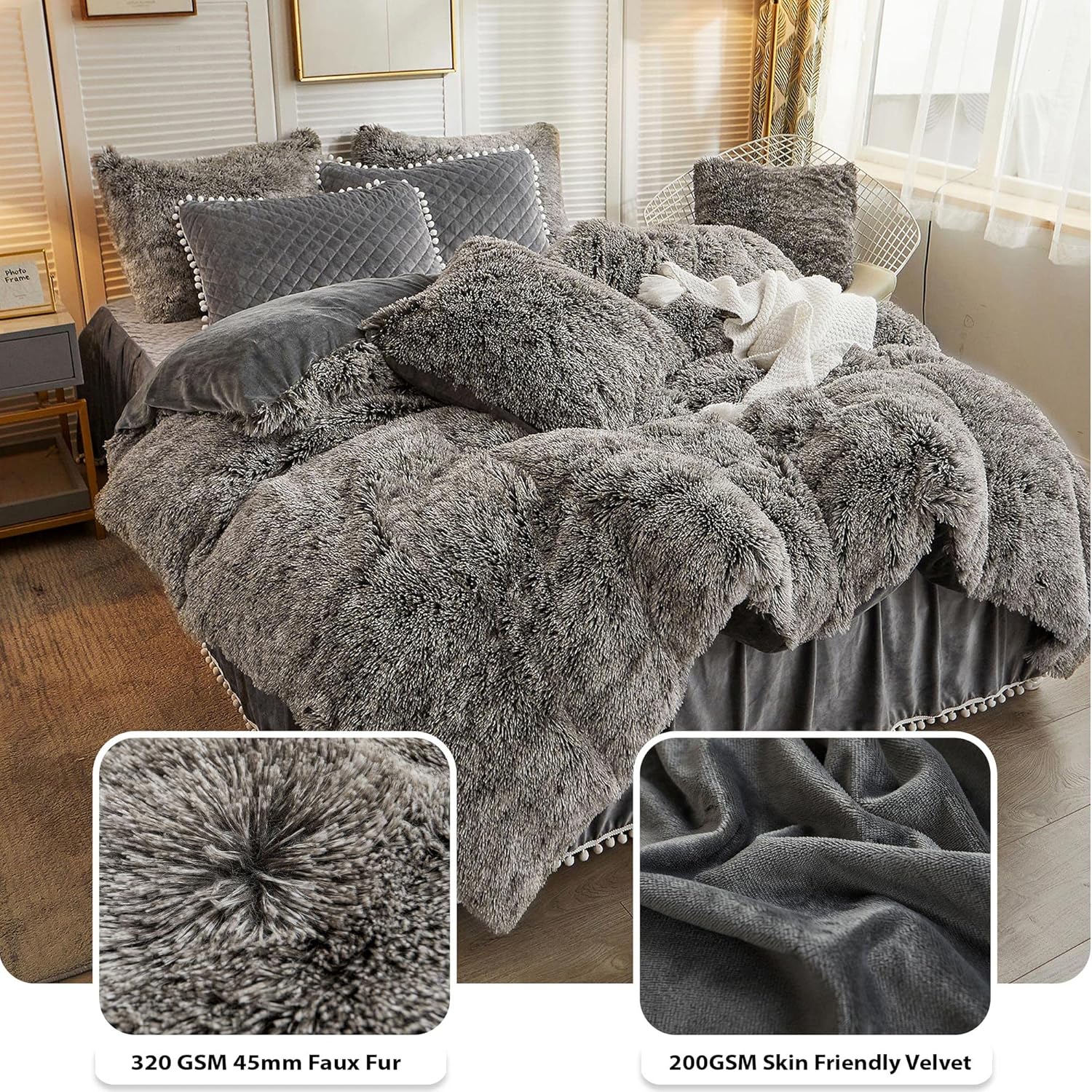 This duvet cover set combines sophistication with comfort, featuring a rich 45mm microfiber faux fur exterior that delivers a plush, soft feel. The inside is lined with a smooth velvet fabric, enhancing the overall touch and making it a dream to sleep in. Perfect for those chilly nights, this cozy bedding option keeps you warm and wrapped in style.