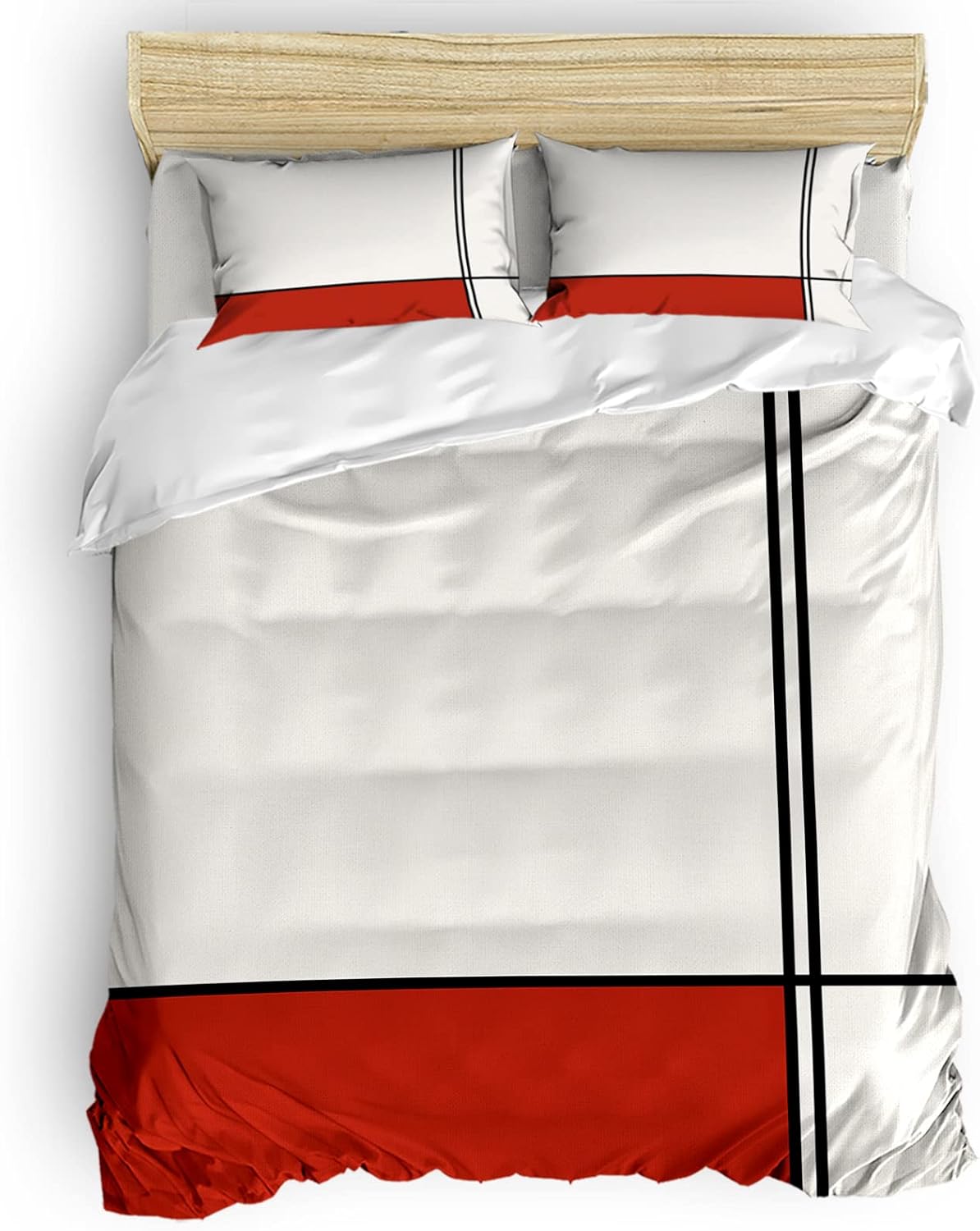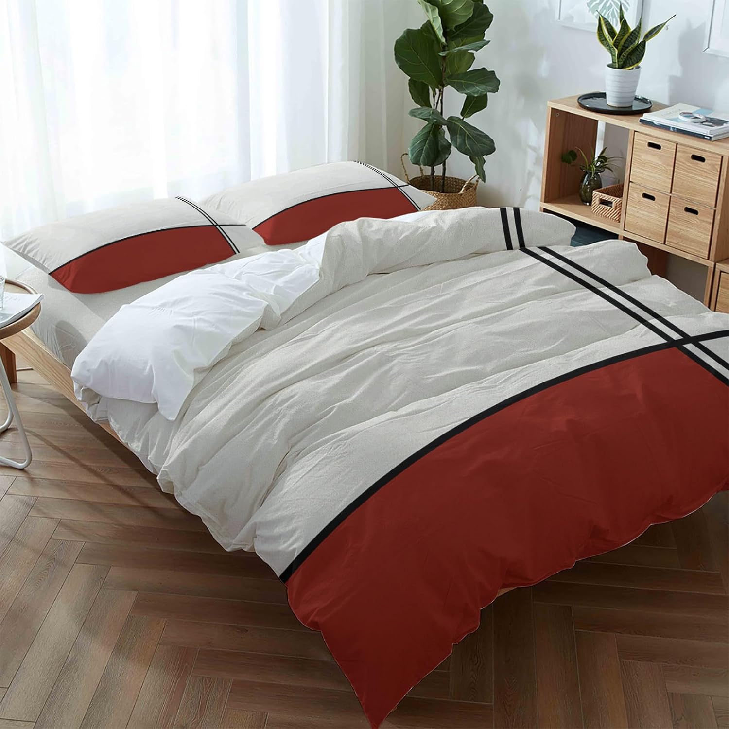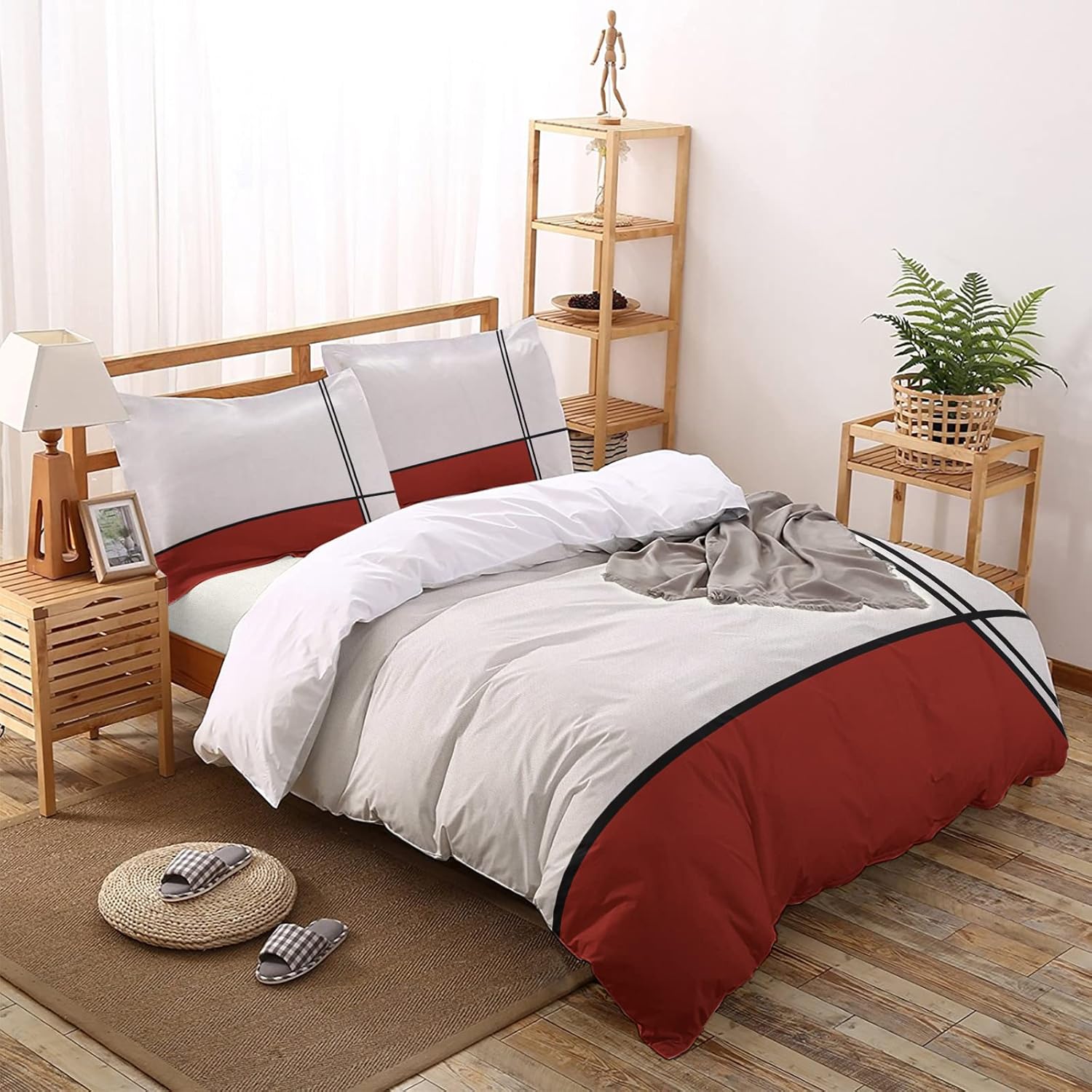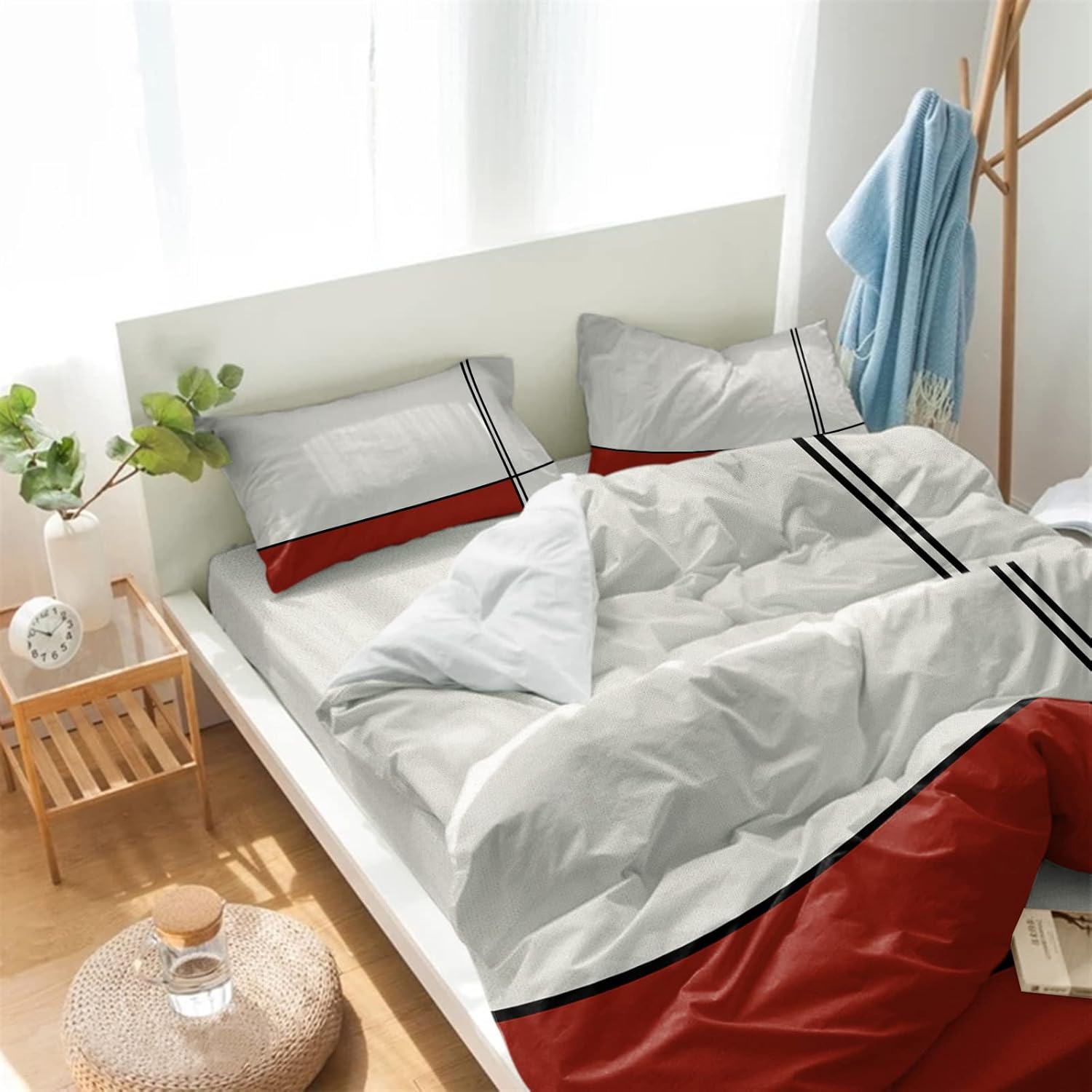 This versatile set is ideal for your master bedroom, guest room, or even a vacation rental. The striking modern red stripes and lines design blend effortlessly with various decor styles, adding a touch of sophistication. Whether you want to add a pop of color or create a calming, minimalist atmosphere, this set adapts to your needs, offering both comfort and style in one convenient package.