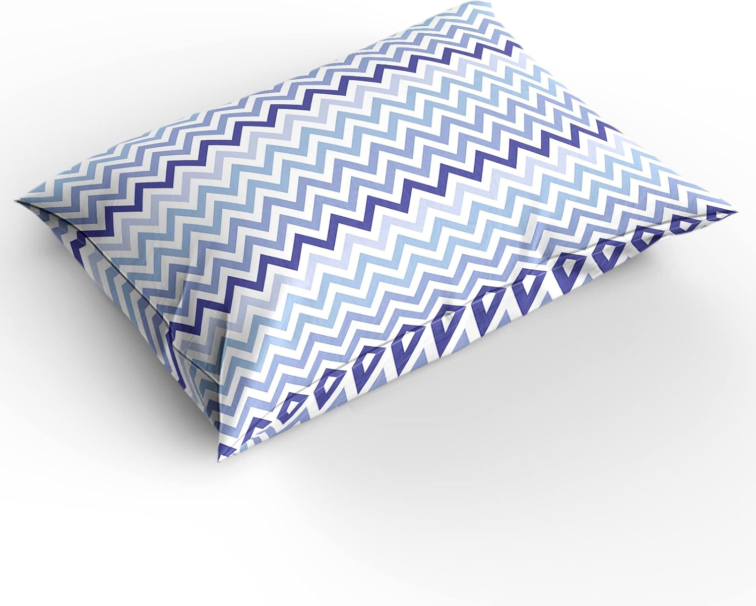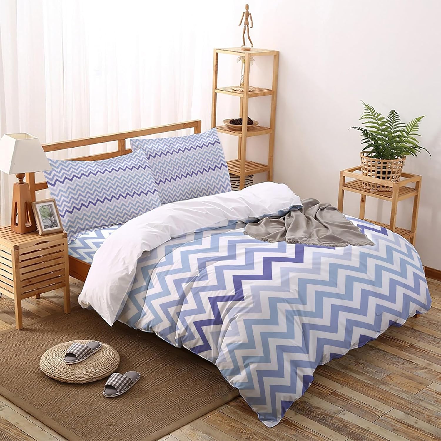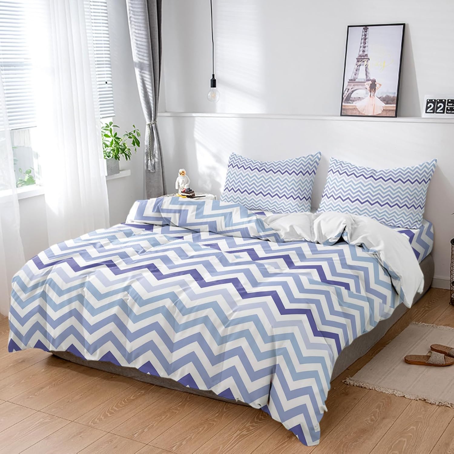 This premium bedding set is crafted to elevate your sleep experience with its elegant geometric stripe design in blue and purple. The high-quality, skin-friendly fabric offers breathability and softness for a cozy, restful night's sleep all year round. Whether it's a crisp winter morning or a warm summer evening, this set adapts effortlessly, making it ideal for any season.