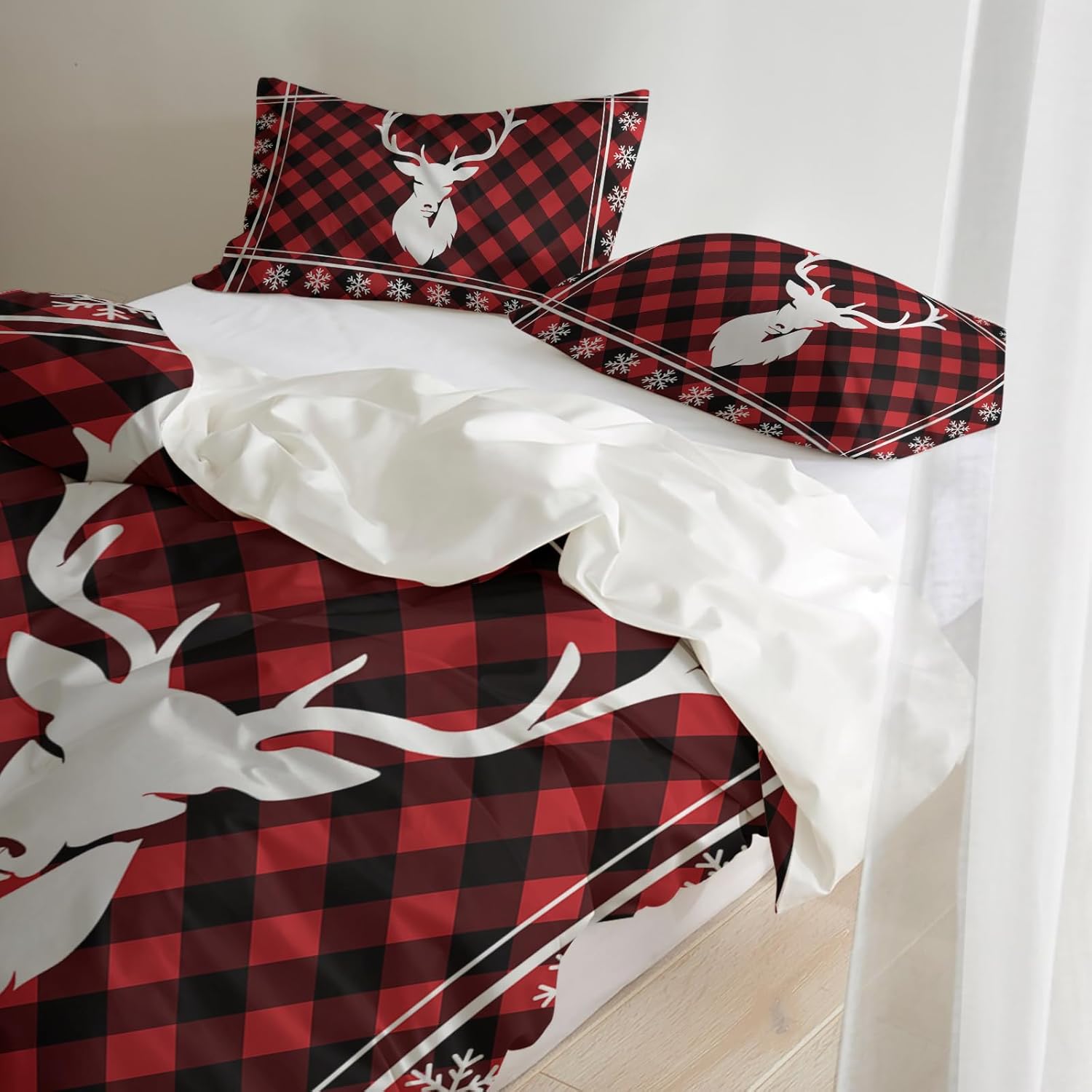 Wrap yourself in the warmth of the holidays with this elegant and inviting LooPoP Christmas Comforter Set. Designed to bring joy and comfort to your bedroom, this set features a classic Christmas theme with festive reindeer and snowflake motifs, creating the perfect festive ambiance for your home. Whether you're looking to transform your bedroom into a cozy winter retreat or simply want to enhance your sleep experience with a warm, stylish fabric, this Christmas bedding set is an excellent choice. It offers a luxurious feel with its plush microfiber material, ensuring a comfortable and restful night's sleep while preserving the vibrancy of the festive design. The hidden zipper and corner ties make it easy to remove and secure, perfect for everyone who values convenience and functionality. Manufactured with care, this LooPoP set is ideal for everyday use, even as a layered addition to your bed or as a standalone coverlet for guest rooms and vacation homes. With its soft and breathable fabric, itâs great for those who tend to overheat at night. Let the holiday spirit wrap around you with this festive, durable, and easy-care comforter set. Creating a warm and cozy holiday atmosphere has never been easier. The LooPoP Christmas Comforter Set is the ultimate addition to your winter bedding lineup. With its elegant design and premium materials, itâs the perfect way to enhance your sleep quality, offer a charming look, and elevate your home decor for the entire holiday season.LooPoP Christmas Comforter Set - Cozy Up Your Space This Holiday Season
