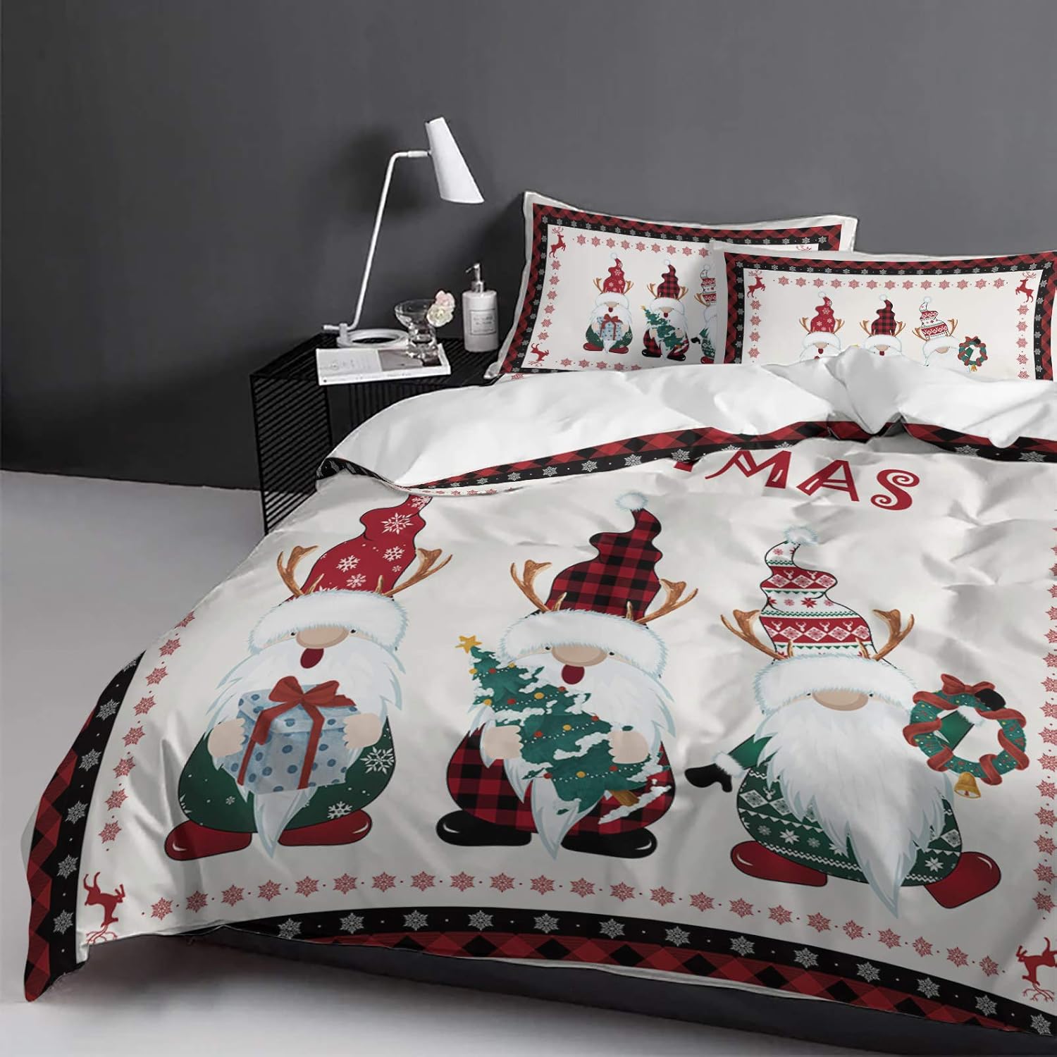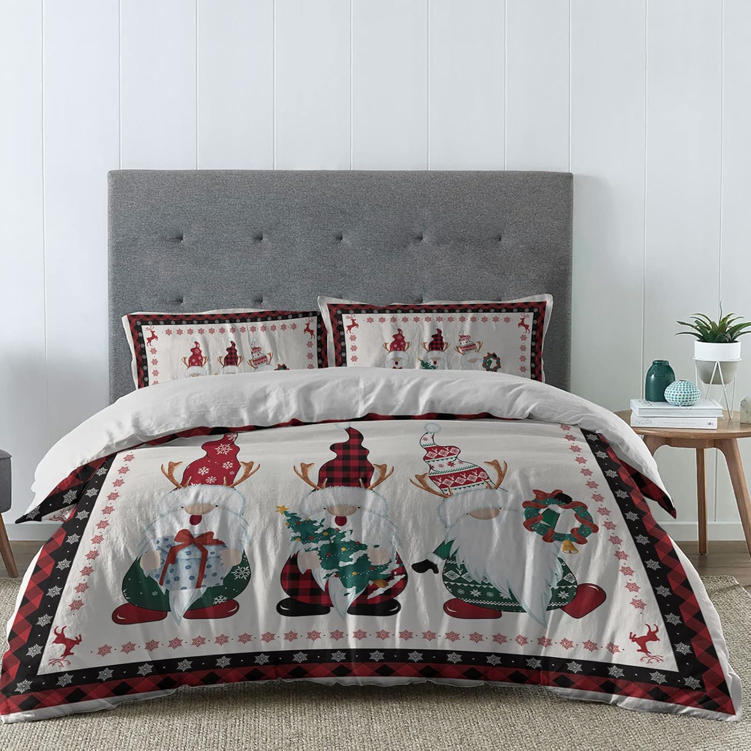 Featuring a charming Christmas theme with snowflake and gnome motifs, this comforter set brings cheer and elegance to any room. Whether it's your main bedroom, guest room, or a holiday getaway, its festive aesthetic transforms the space into a warm and inviting winter wonderland.