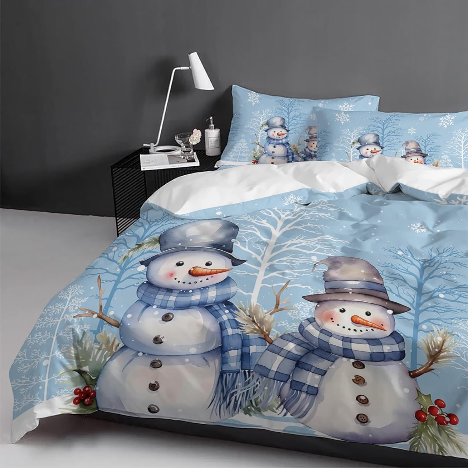 With a wide zipper closure and corner ties, this comforter set ensures easy use and keeps your bedding secure throughout the night. The festive snowman and snowflake prints add a delightful holiday aesthetic to your room, making it a great choice for holiday decor or as a thoughtful gift for someone special.