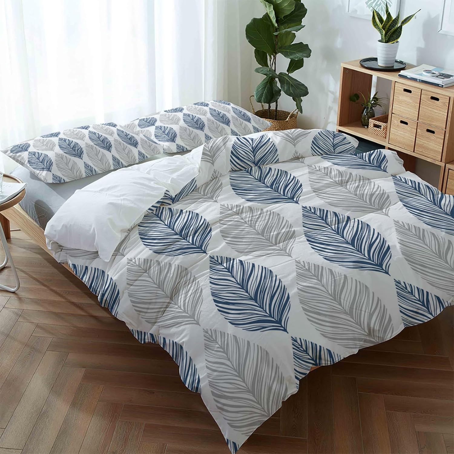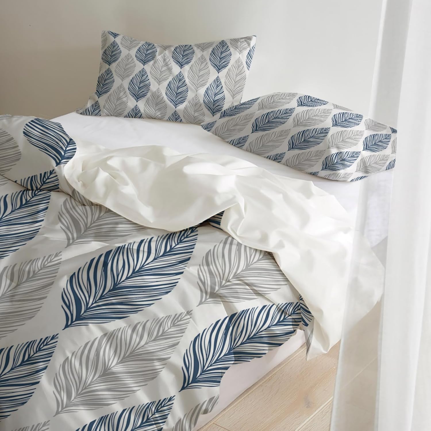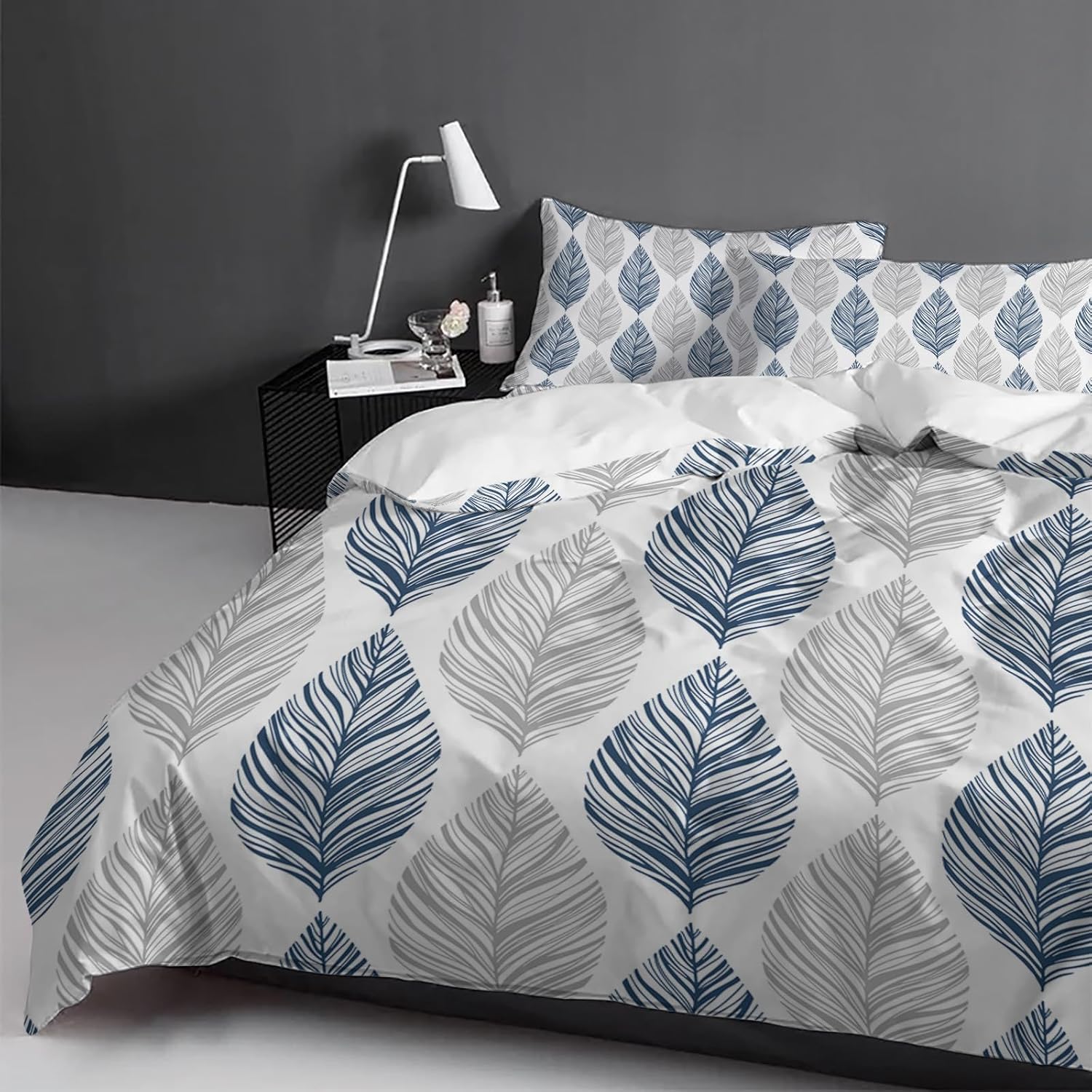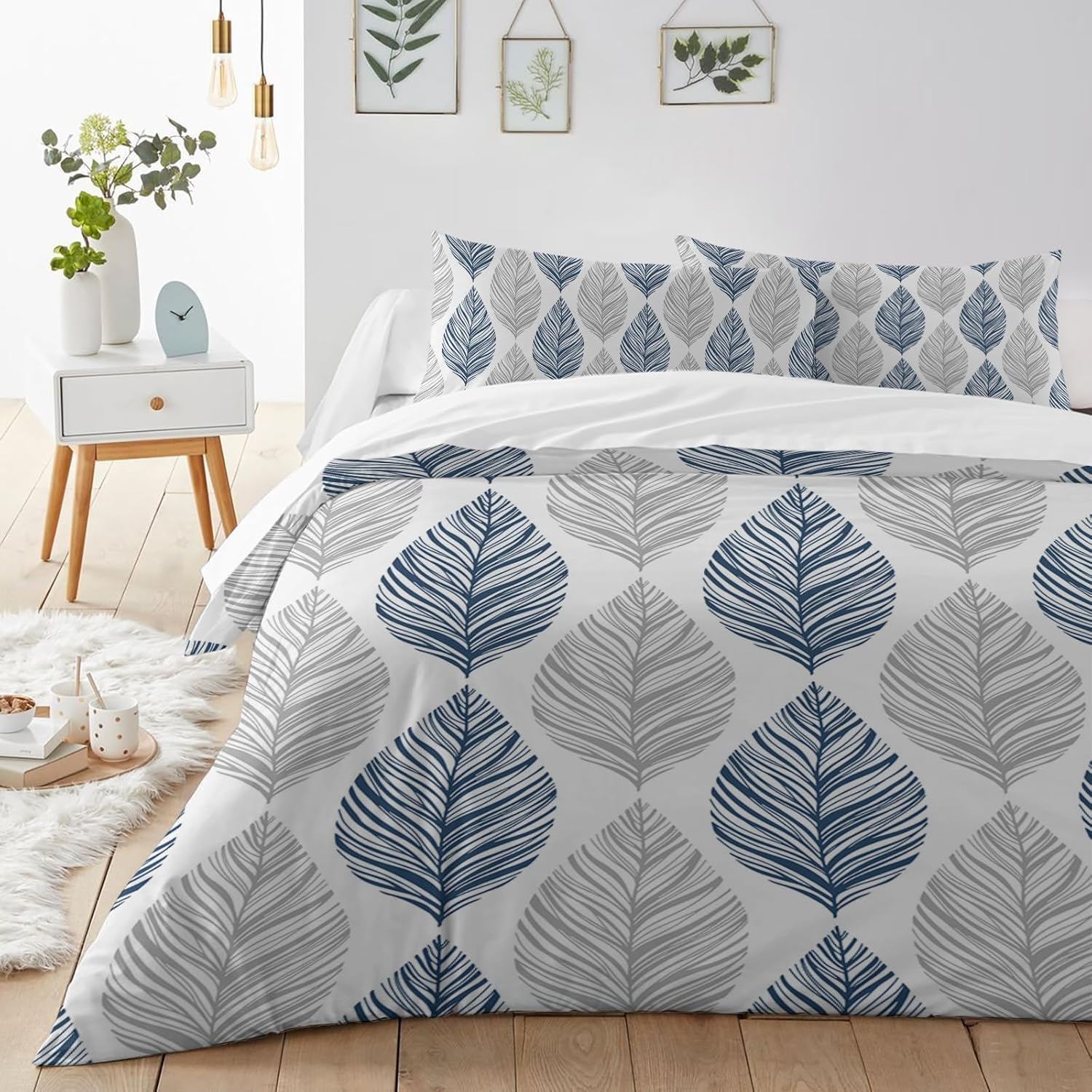 The botanical plant blue gery leaf geometric design adds a touch of elegance and modern style to your bedroom decor. Itâs a versatile addition that complements any room aesthetic and brings a fresh, peaceful vibe to your sleep space.
