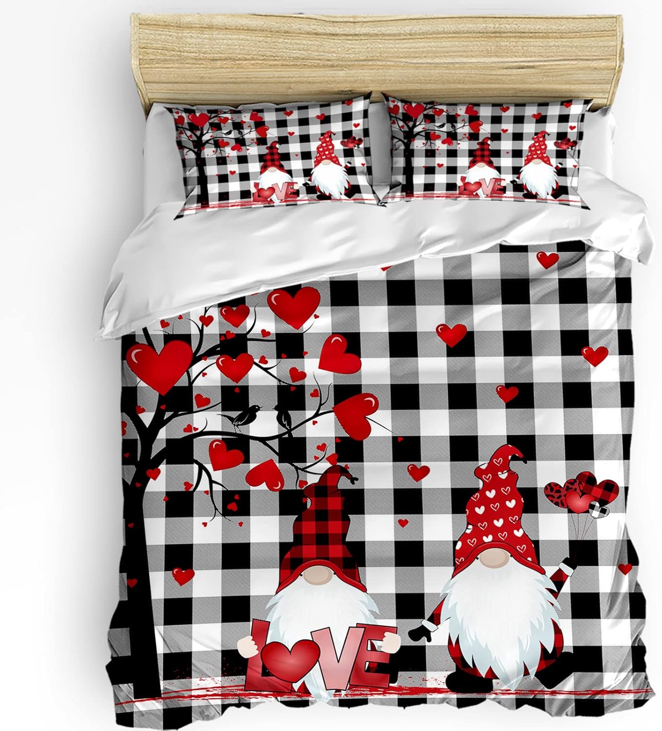 Transform your bedroom with this elegant 3-piece Valentine-themed bedding set from LooPoP. Designed to add a touch of warmth and charm, it features a bold black buffalo plaid pattern thatâs both stylish and inviting. Whether you're looking to update your master bedroom, guest room, or add some festive flair to your vacation setup, this set is the perfect choice.