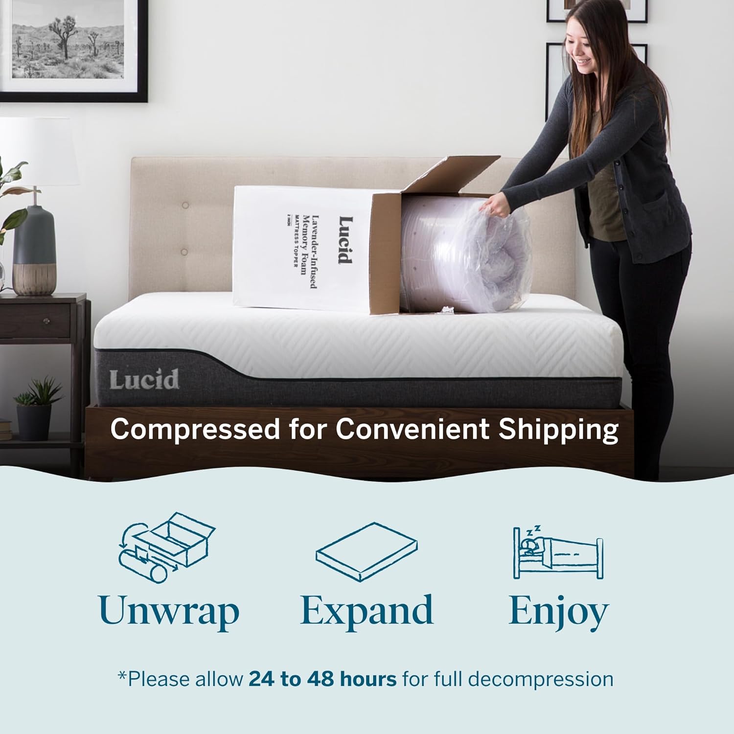 Transform your sleep with the Lucid 3-inch lavender memory foam mattress topper â a blend of comfort, style, and natural wellness.