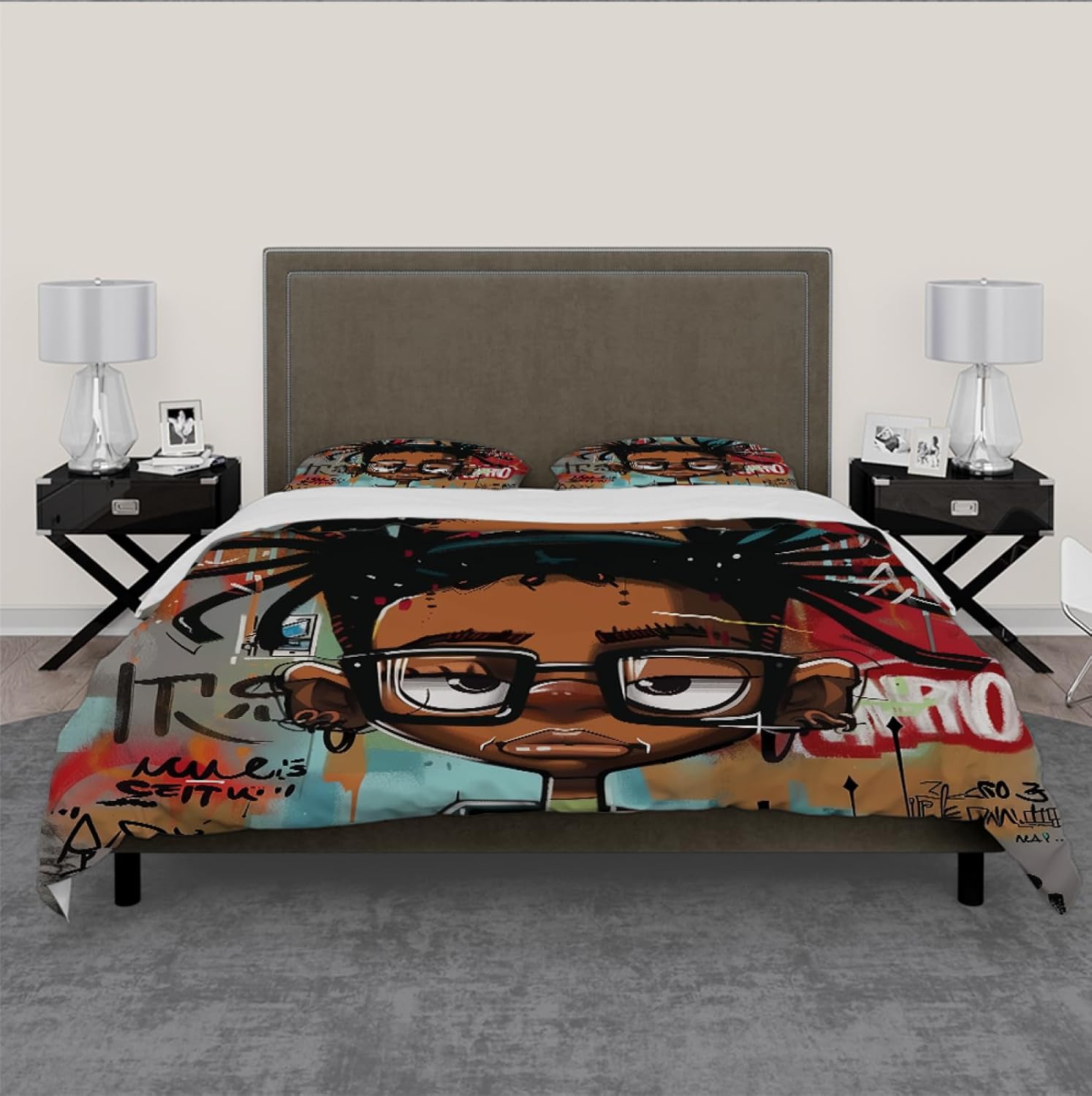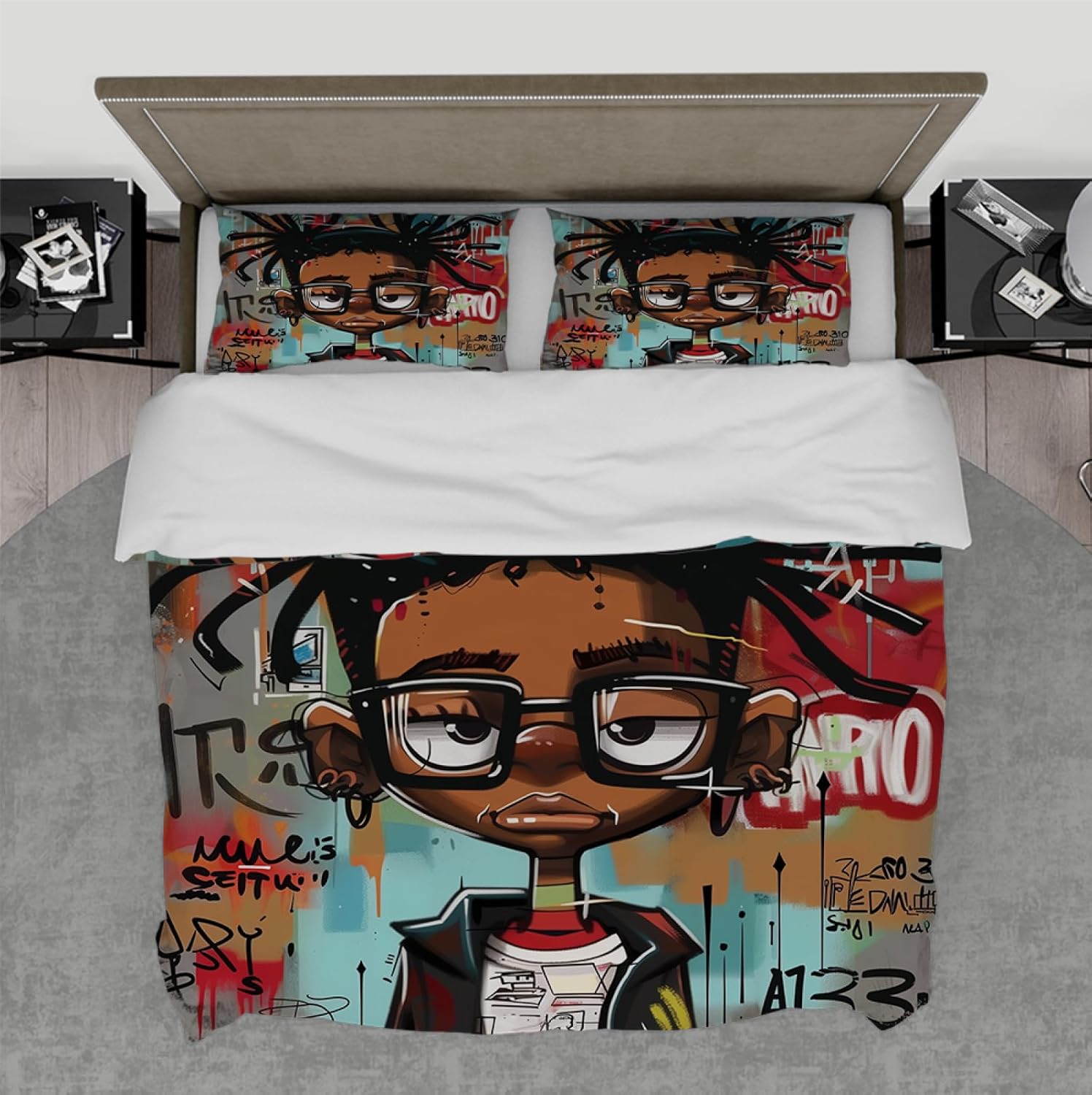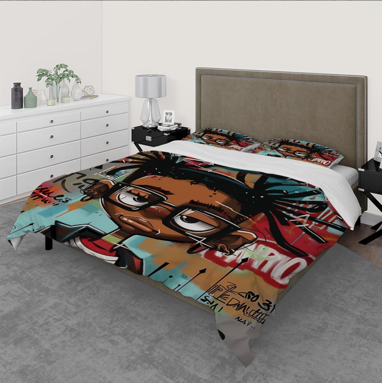 This graffiti cartoon bedding set is more than just a decorative addition to your child's bedding â it's a statement of individuality. Whether you're a parent seeking to create a warm, inviting sleep space or a decorator aiming to infuse your room with creativity, the unique design and quality construction make it an ideal choice. The breathable fabric ensures your child sleeps comfortably, while the durable construction means it will last for years with regular use.