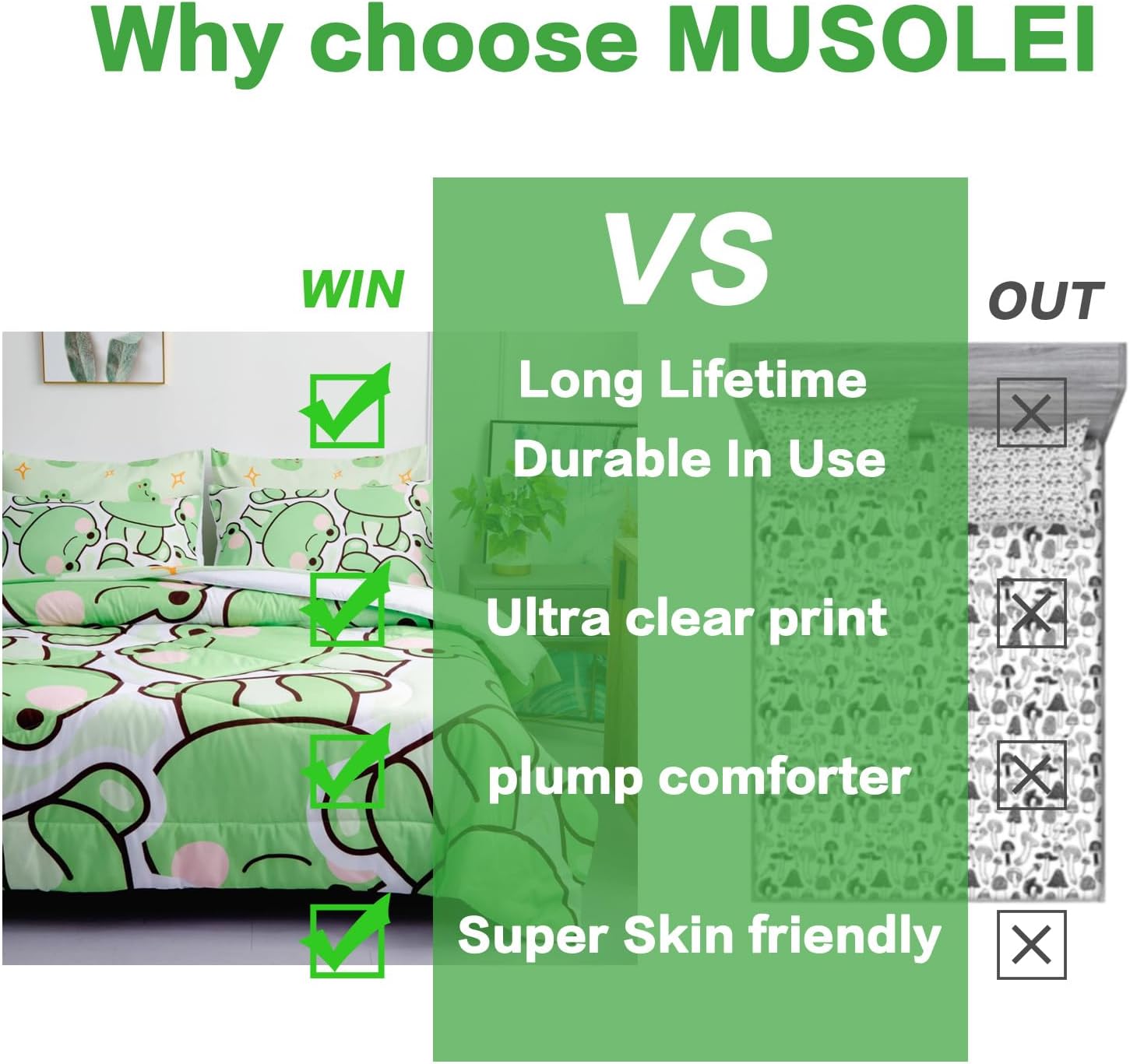Create a cozy and magical sleep space for your little one with the MUSOLEI 7 Piece Frog Comforter Set. Crafted for kids, this twin-sized bedding set delivers the perfect mix of comfort, style, and durability. The soft microfiber fabric ensures breathability and warmth throughout the year, making it ideal for all-season use. Each piece in the set is designed with care, including a queen-sized comforter, a flat sheet, a fitted sheet, and four standard pillowcases, offering a complete bedtime solution for any room.