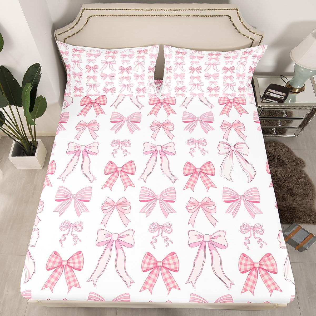 Enhance your child's bedroom with this adorable kawaii pink bow tie bedding set. Designed to make bedtime a magical experience, this twin size set includes a fitted sheet and a matching pillowcase that bring a whimsical charm to any room.