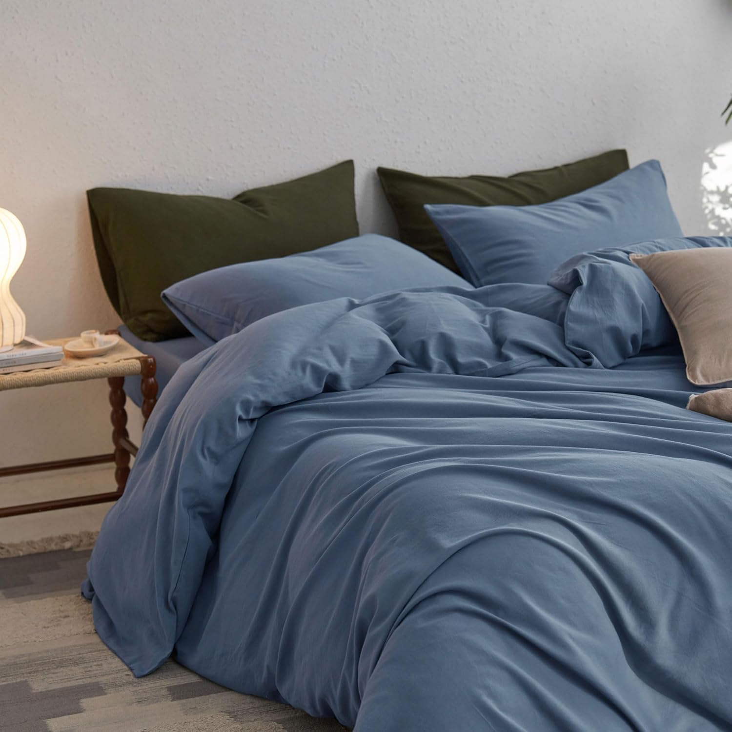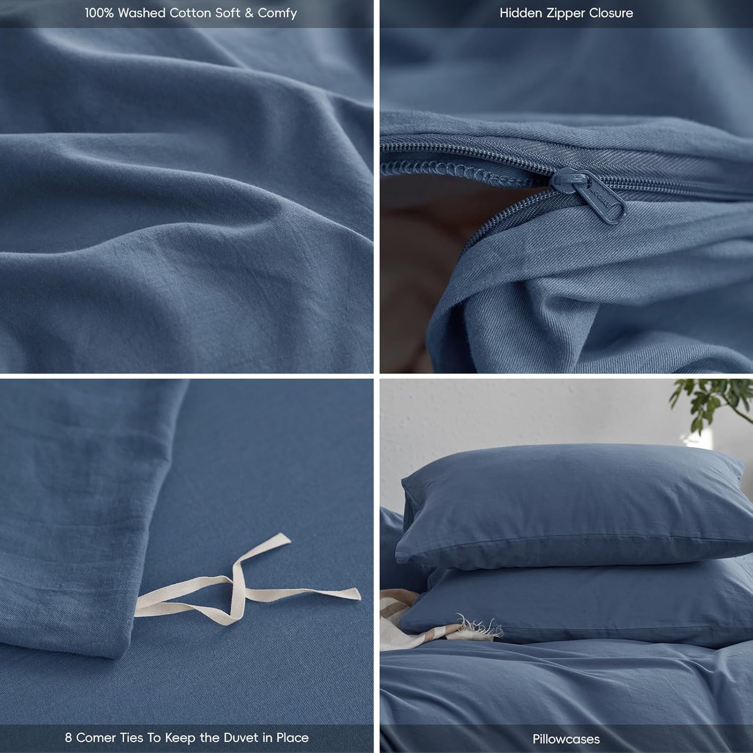 Elevate your bedroom with the MooMee Queen Duvet Cover Set, crafted from premium 100% washed cotton linen twill. This soft yet durable fabric ensures long-lasting comfort while providing a breathable feel, making it perfect for use throughout the yearâwhether you're cozying up for winter or staying cool in summer.